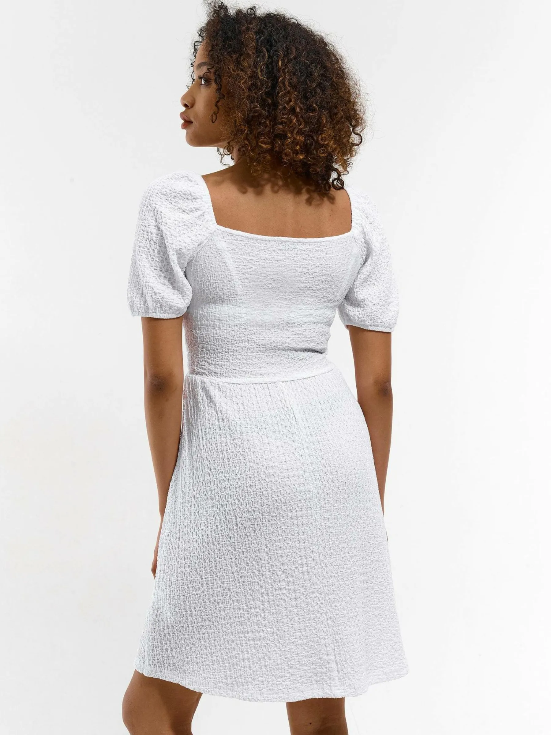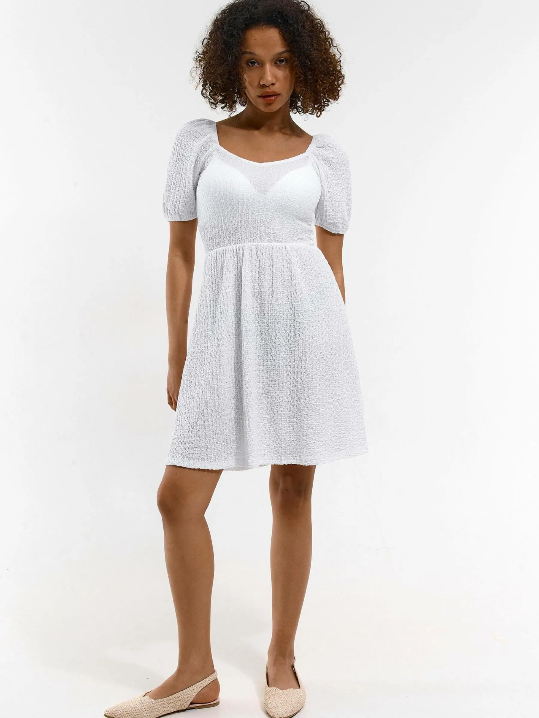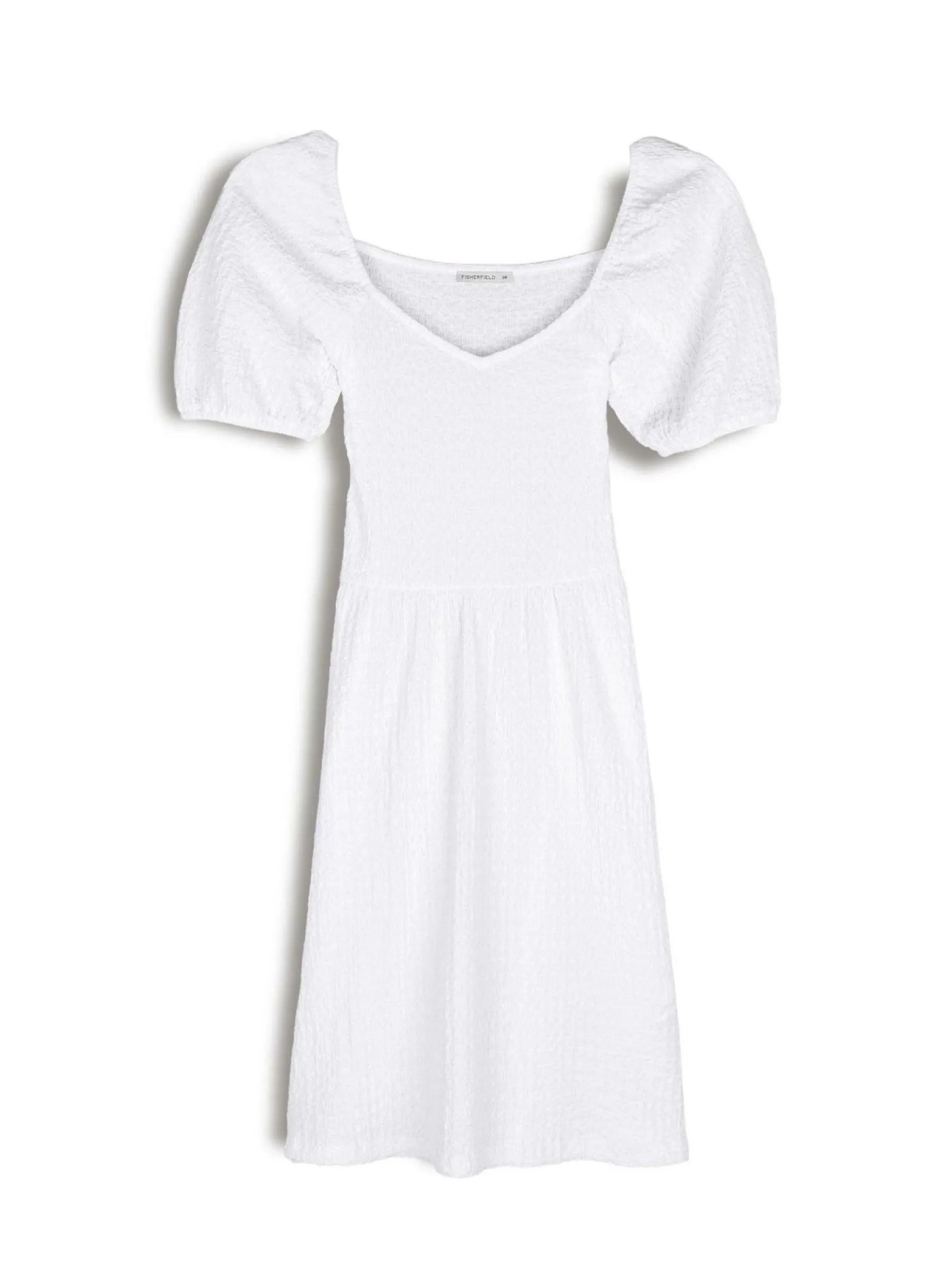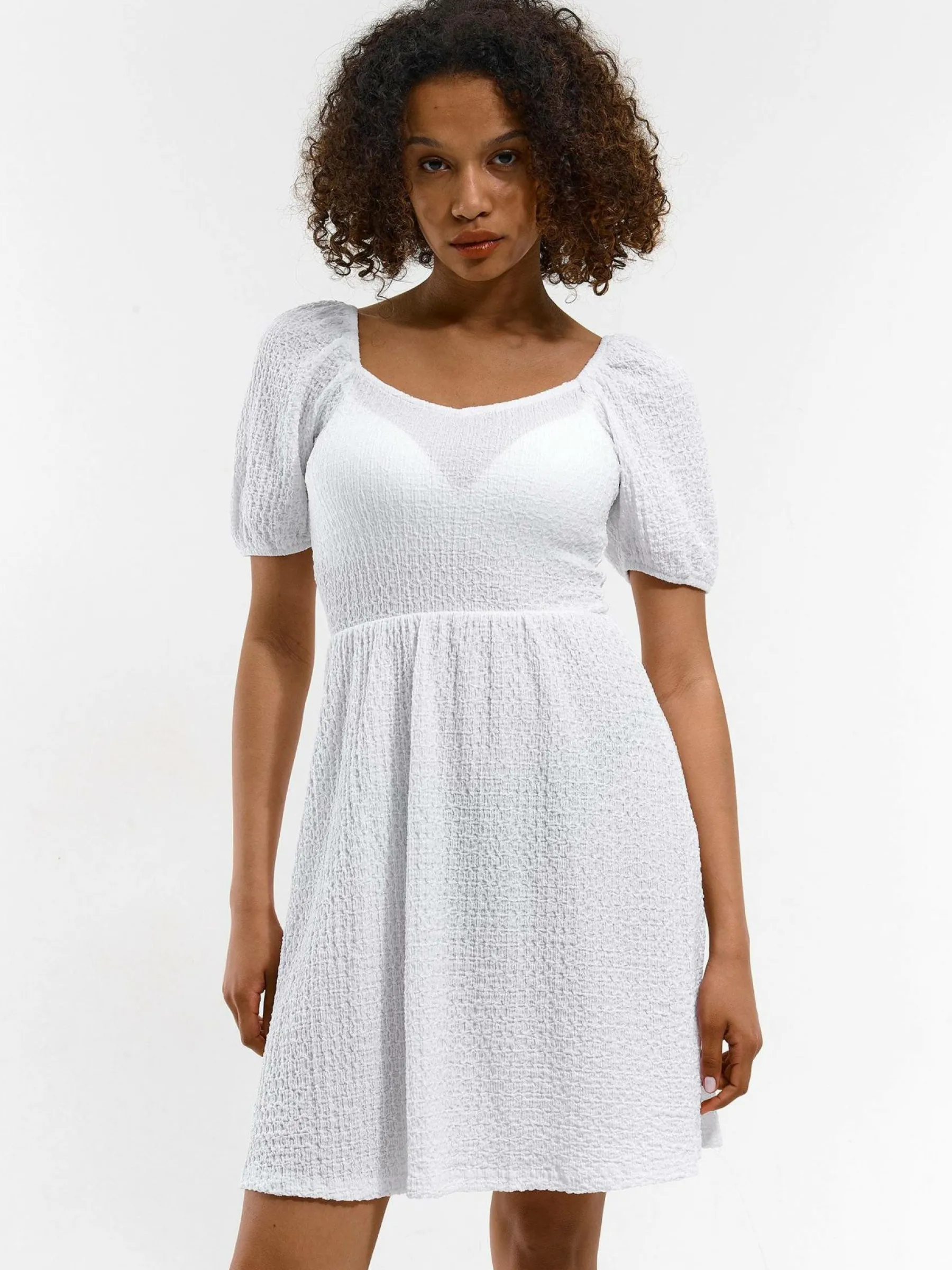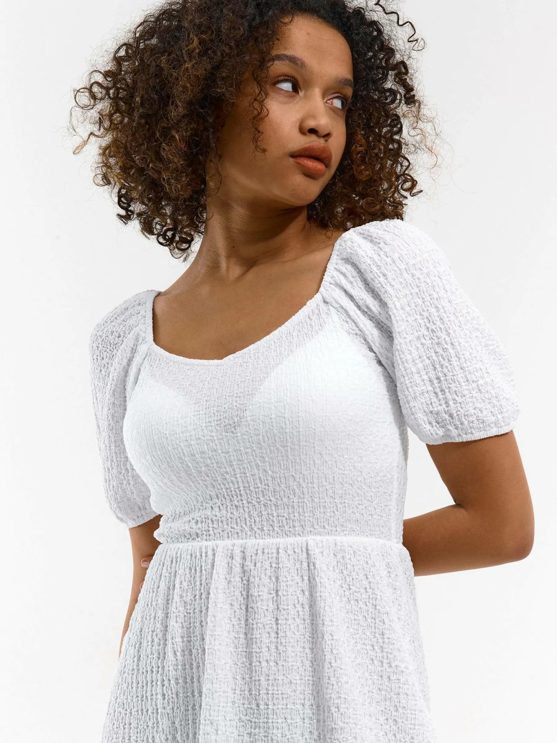 Kolor: białyKrój: asyTyp: sukienkaRekaw: krótki rękawDługość: miniPattern style: pojedynczy kolor, strukturowaneD…