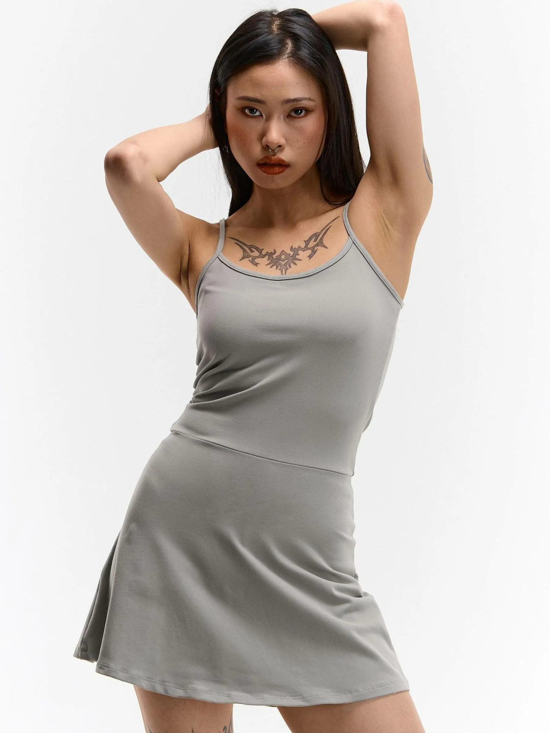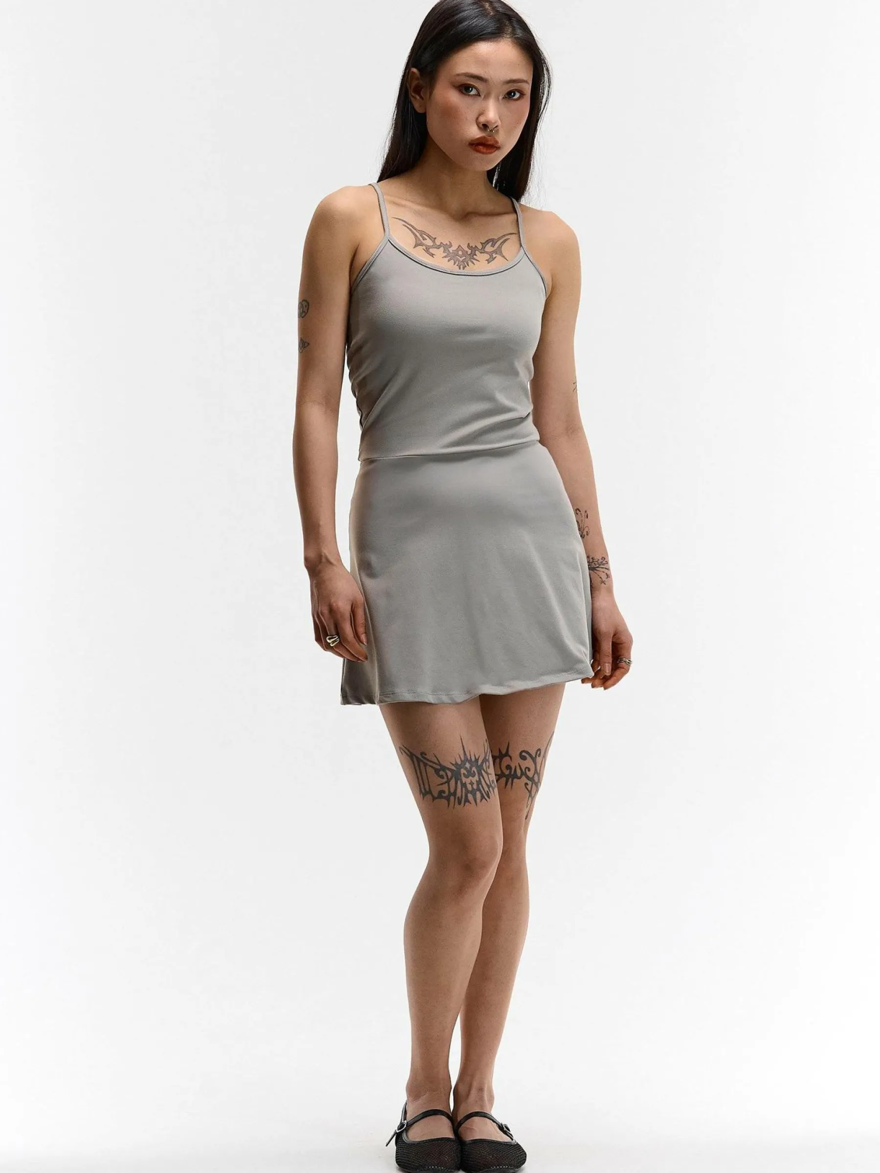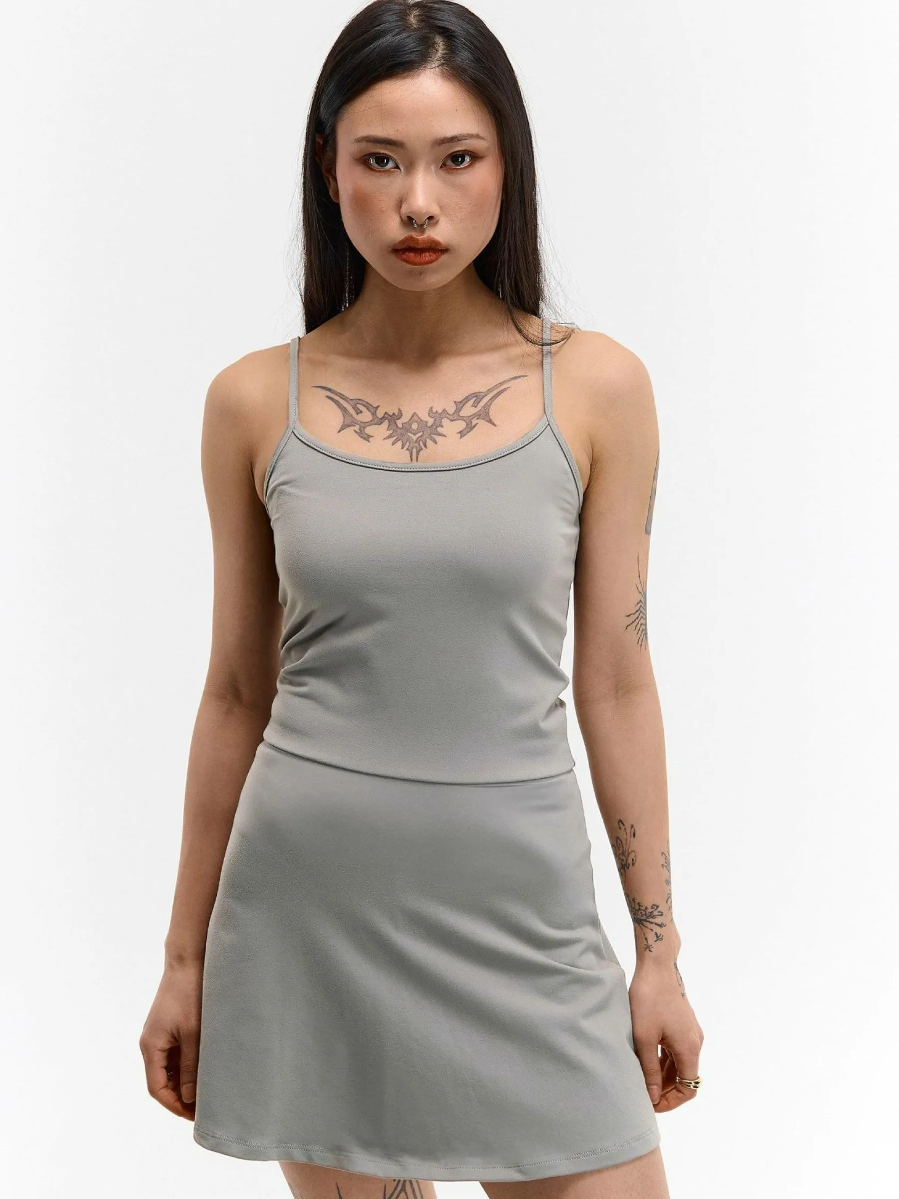 Kolor: szaryKrój: asyTyp: sukienkaRekaw: bez rękawówDługość: miniPattern style: pojedynczy kolorDetal: nad głową…