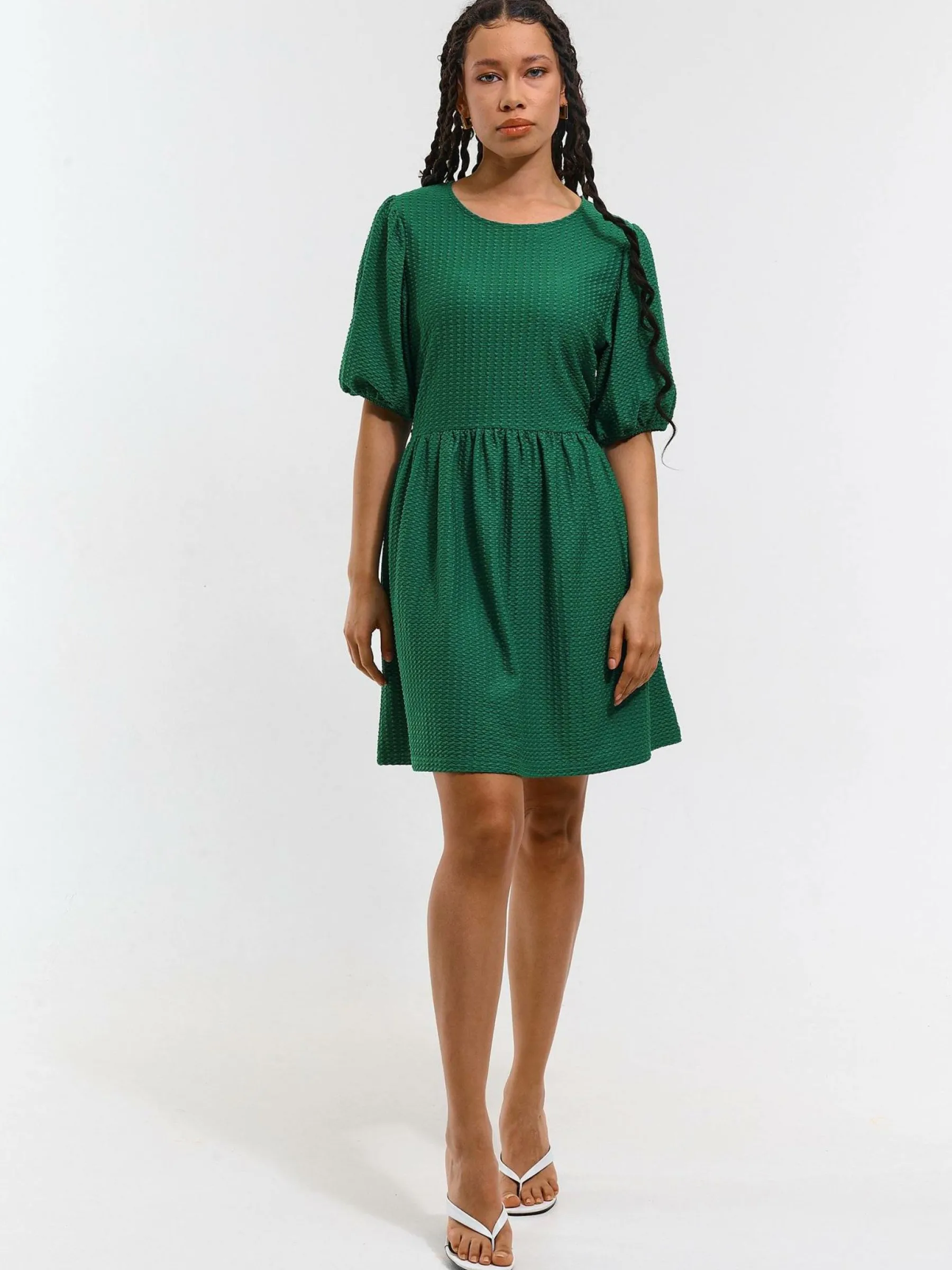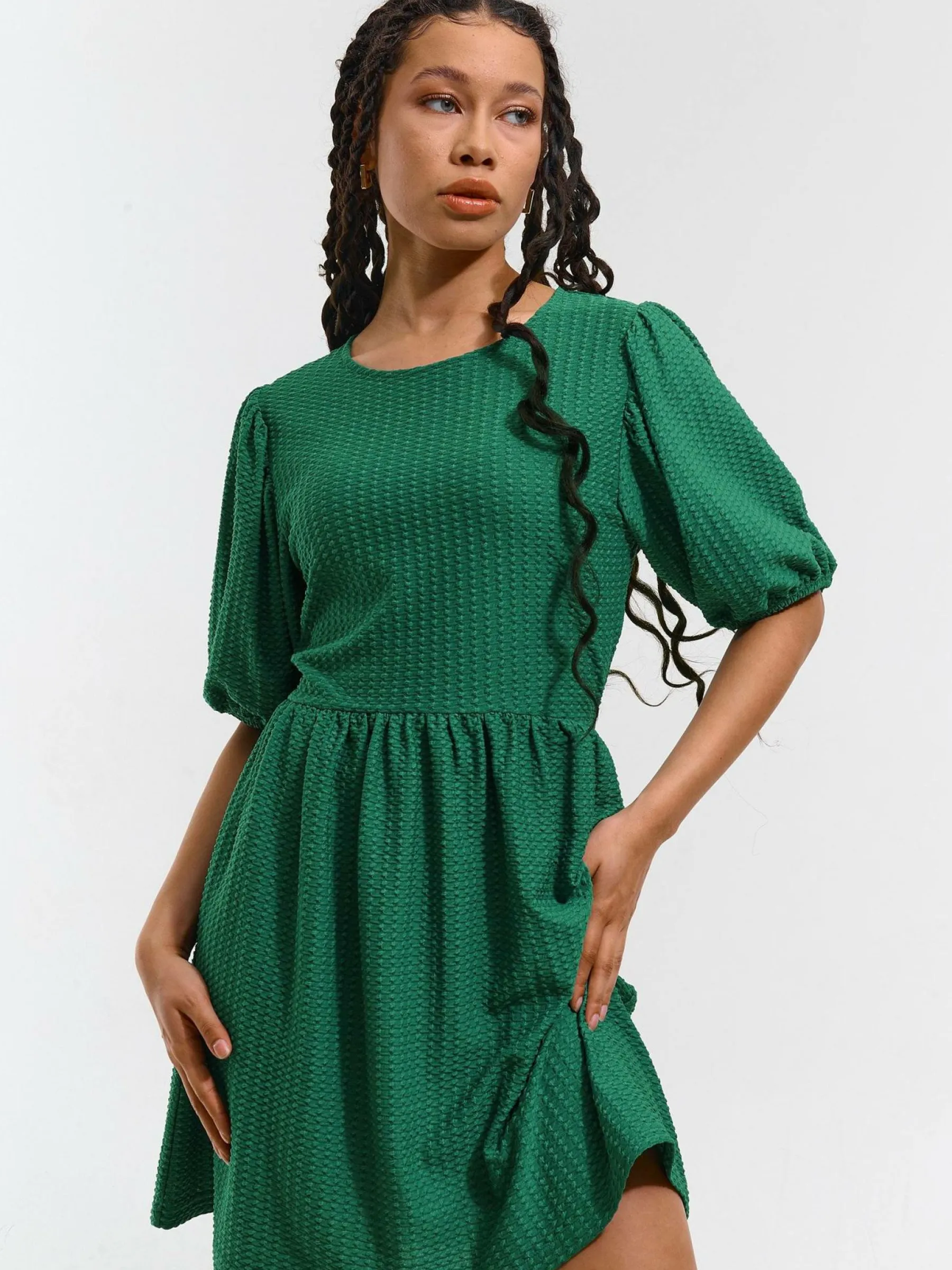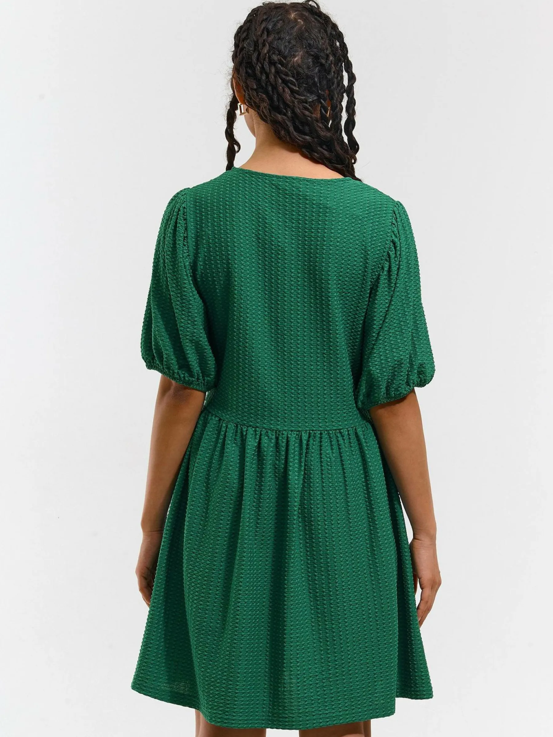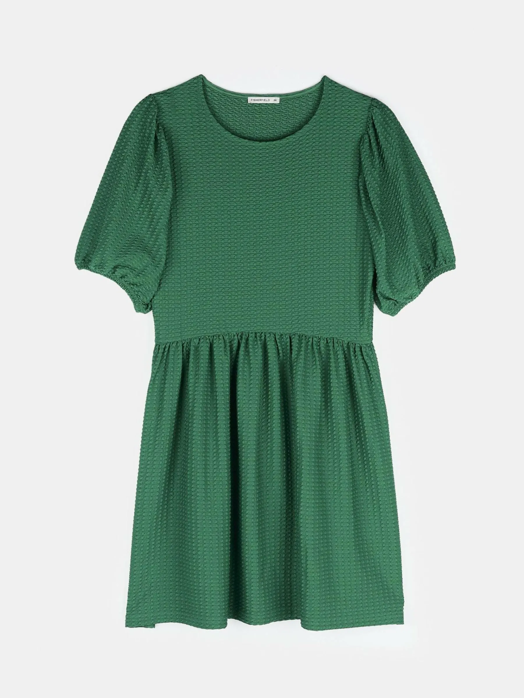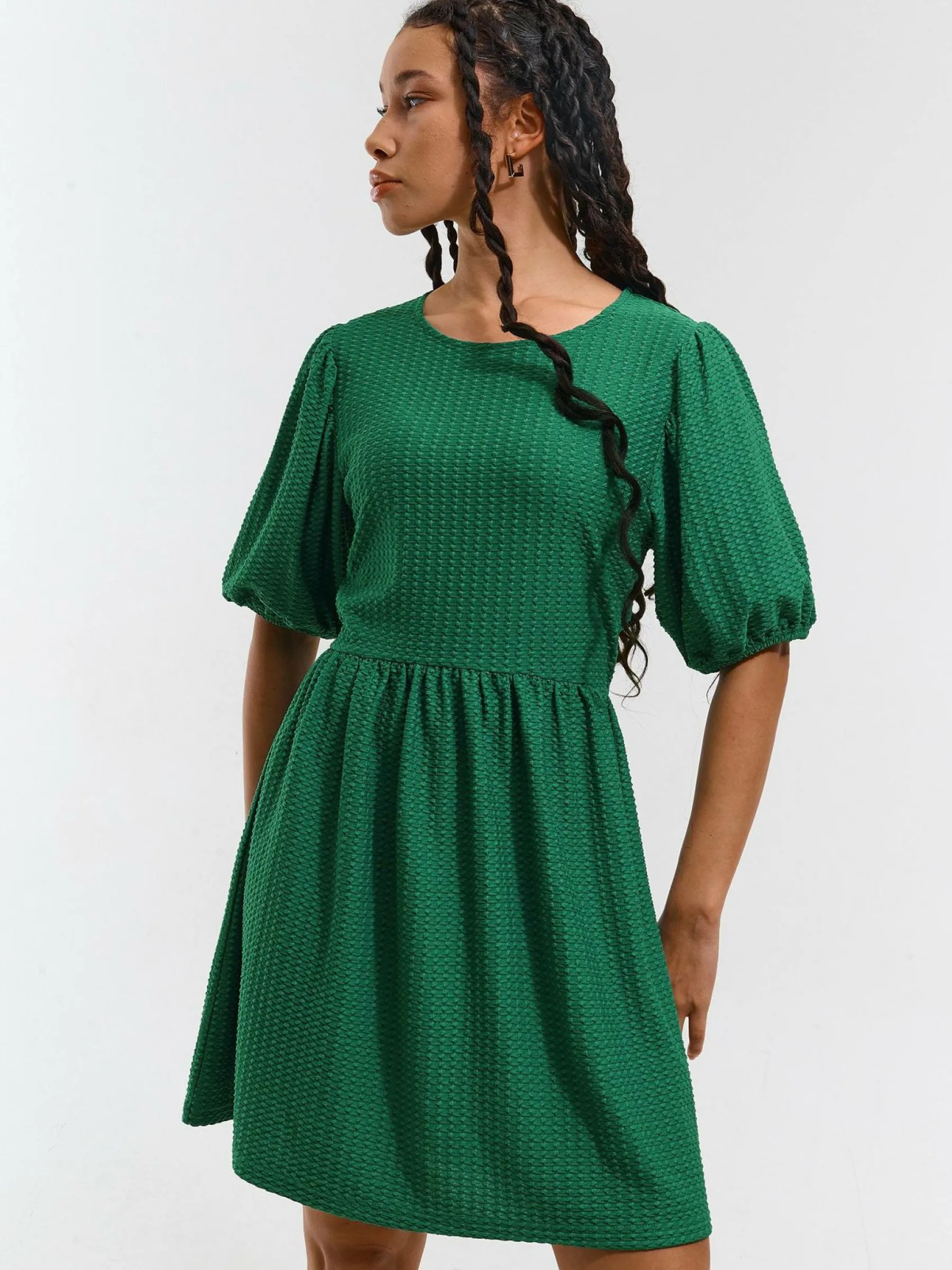 Kolor: zielonyKrój: asyTyp: sukienkaRekaw: krótki rękawDługość: miniPattern style: pojedynczy kolor, strukturowane…