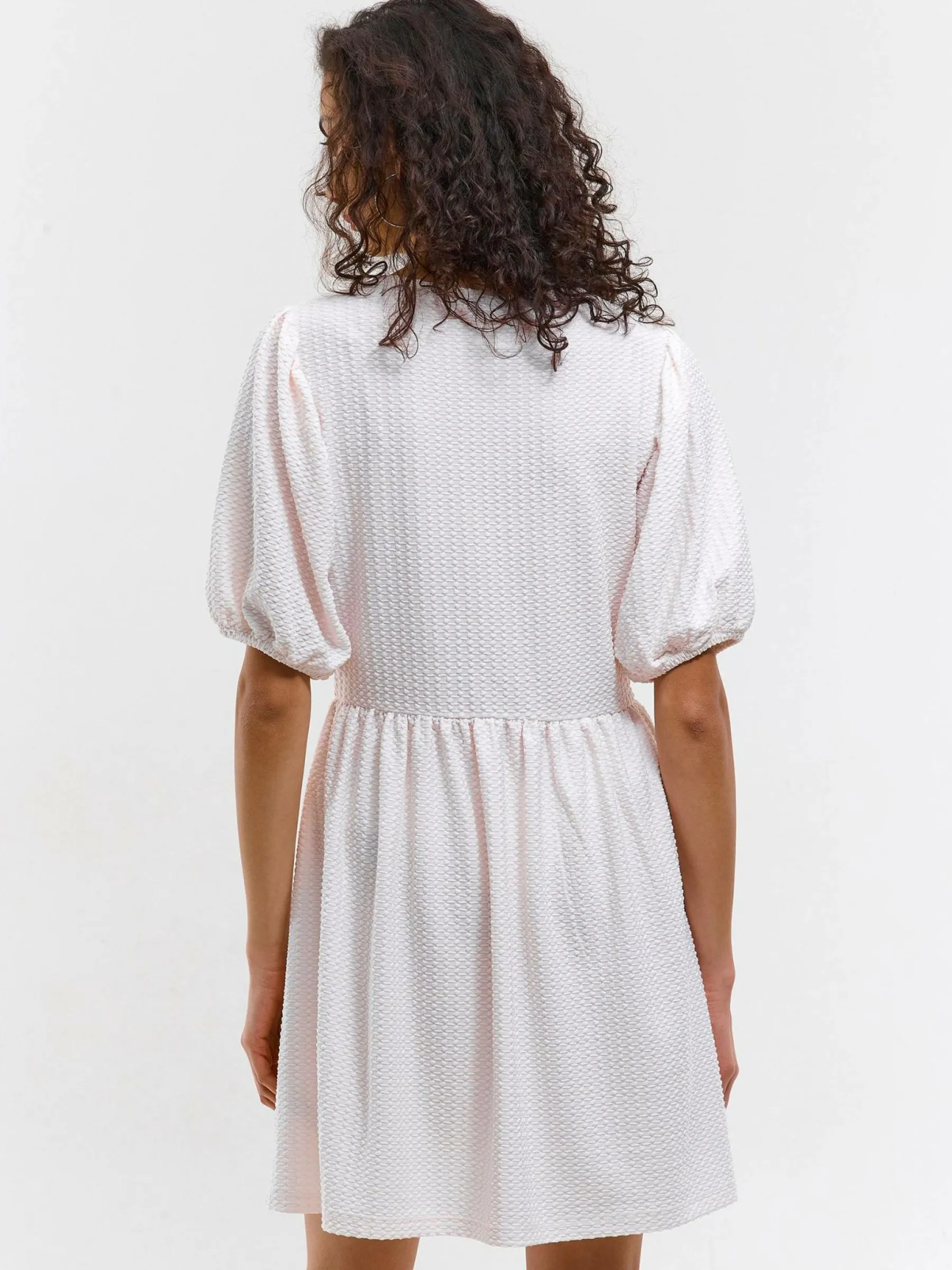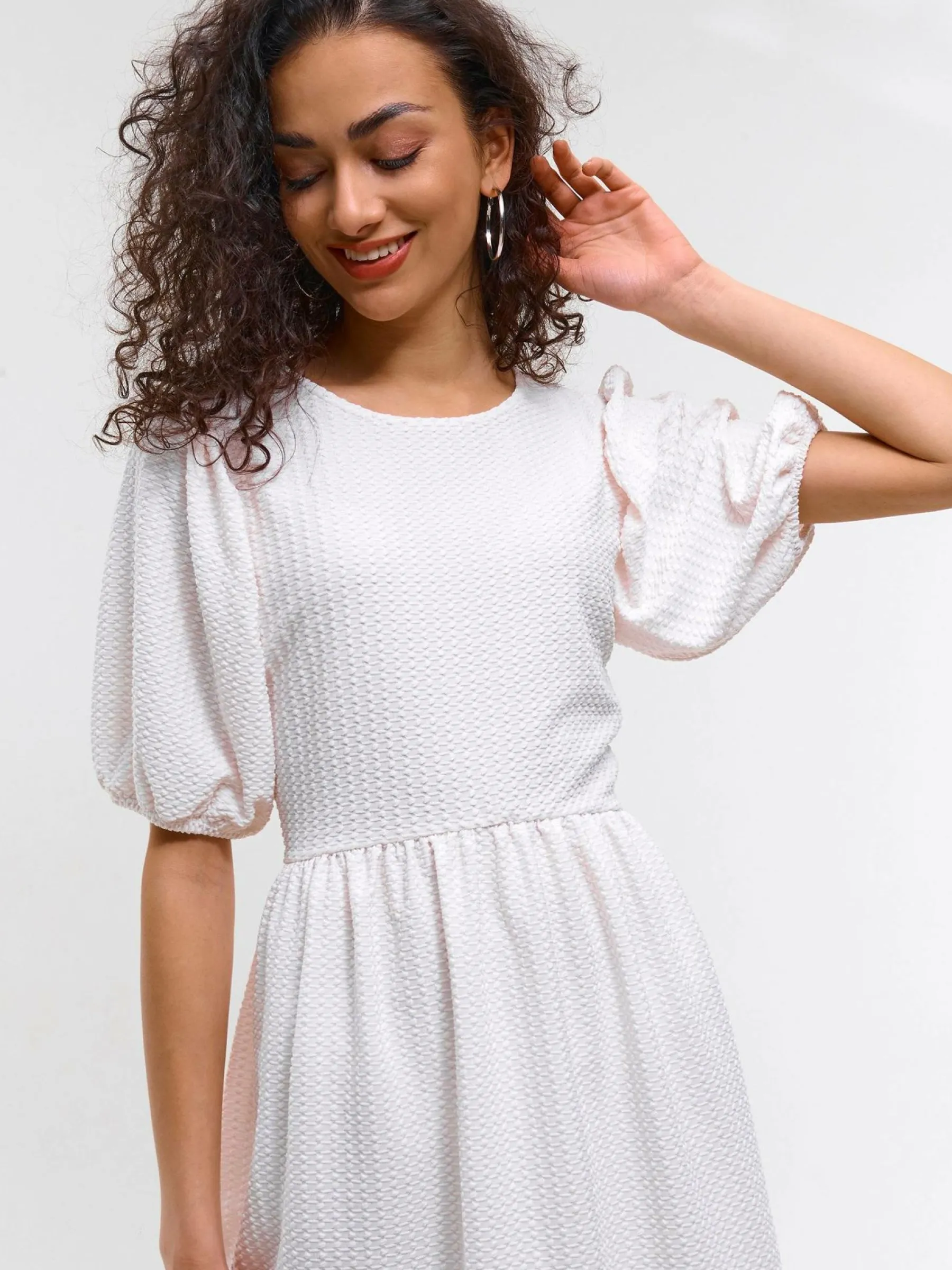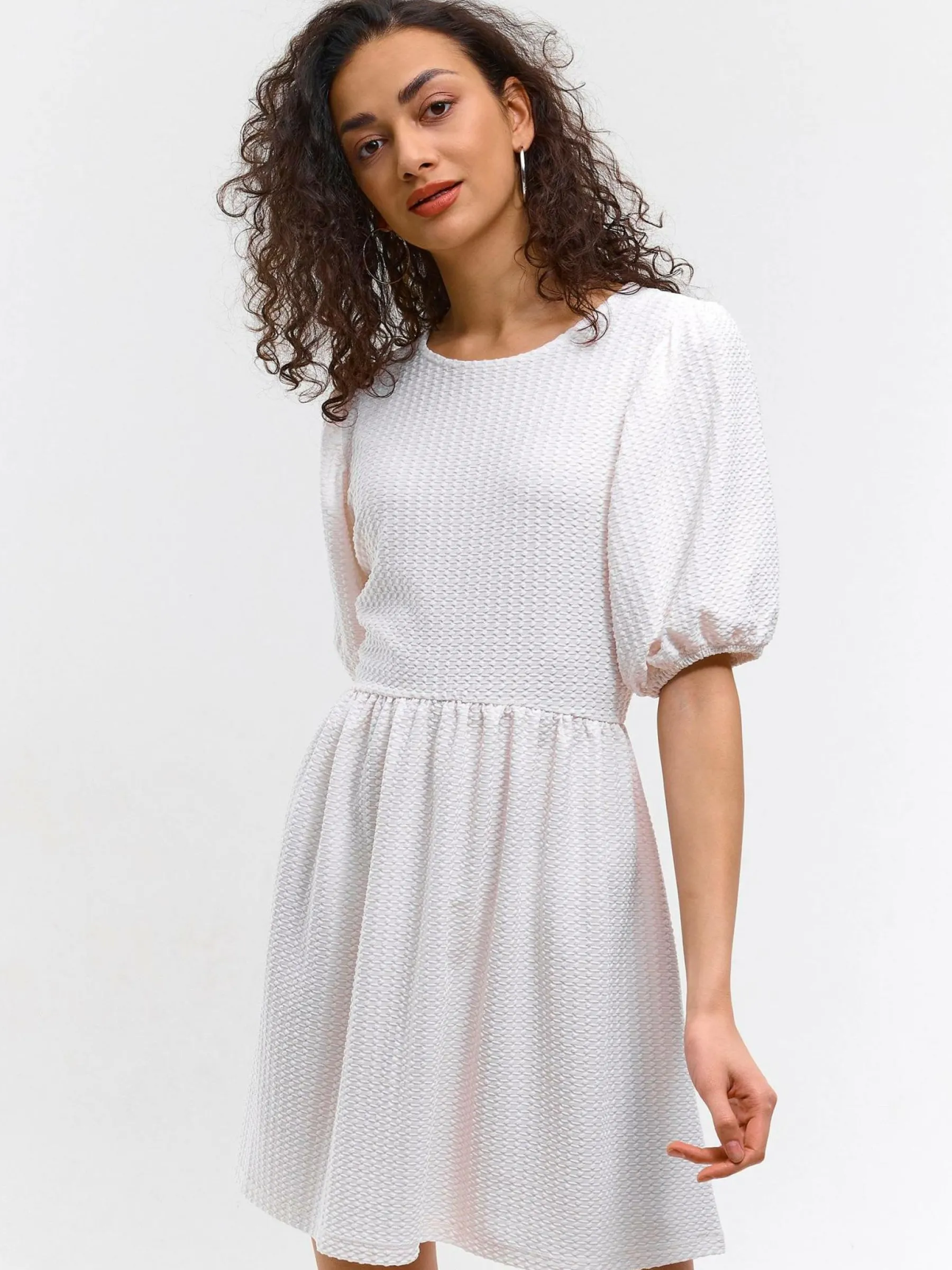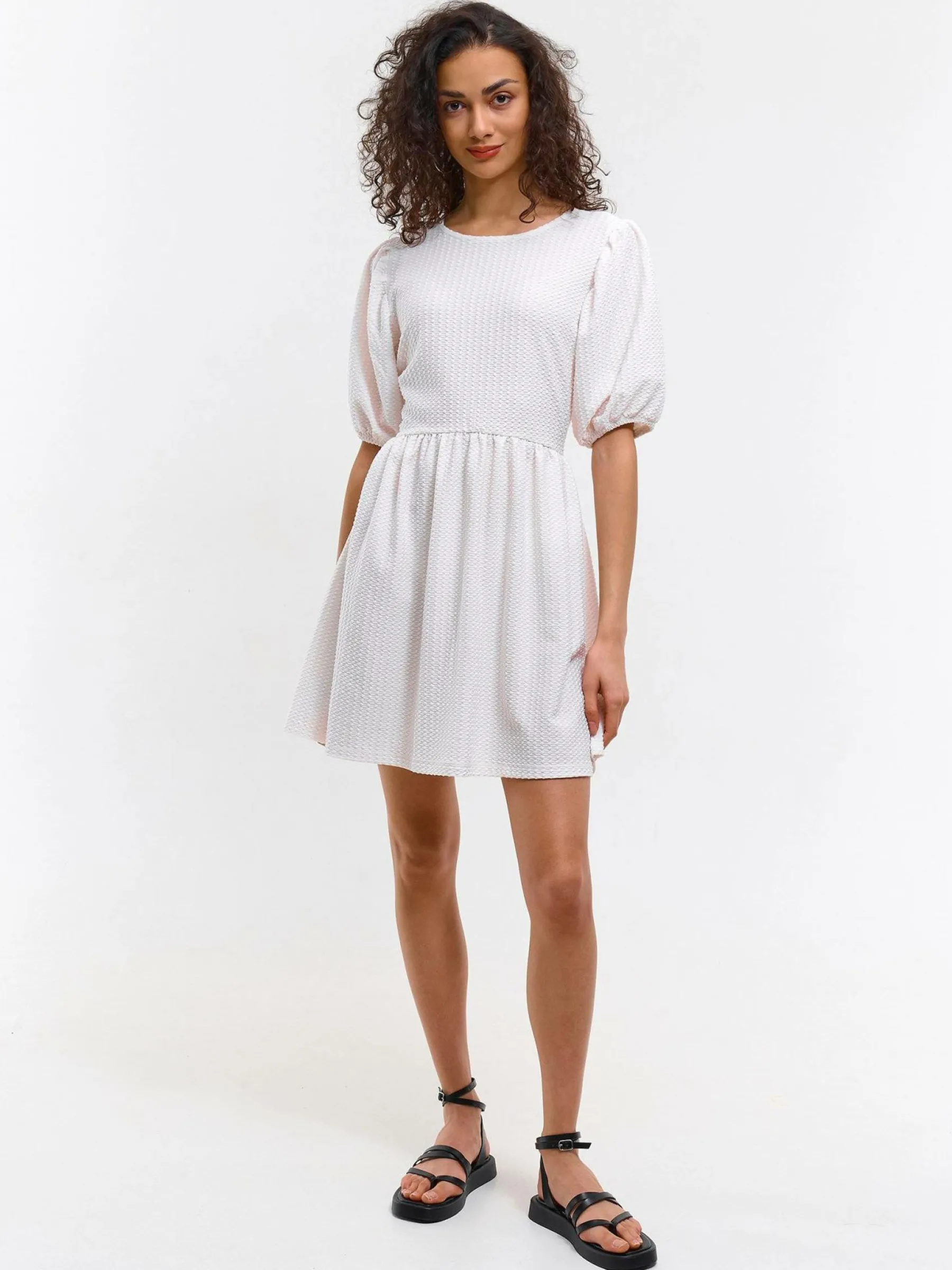 Kolor: białyKrój: asyTyp: sukienkaRekaw: krótki rękawDługość: miniPattern style: pojedynczy kolor, strukturowaneD…