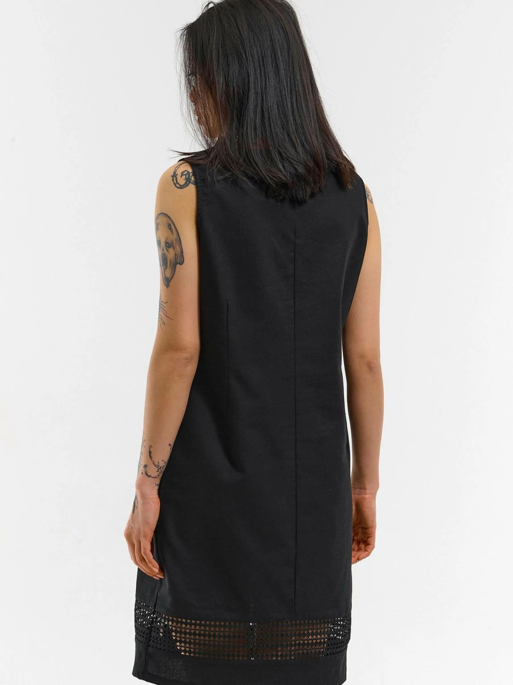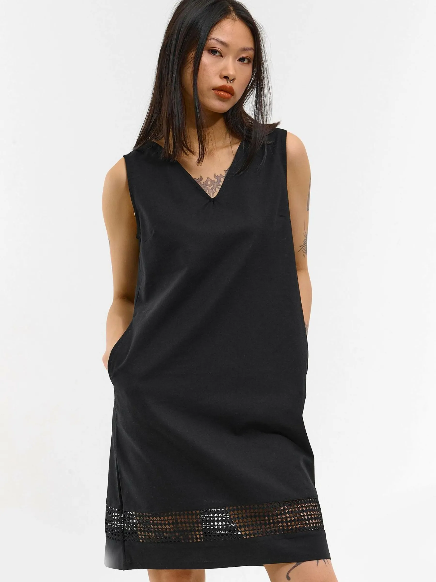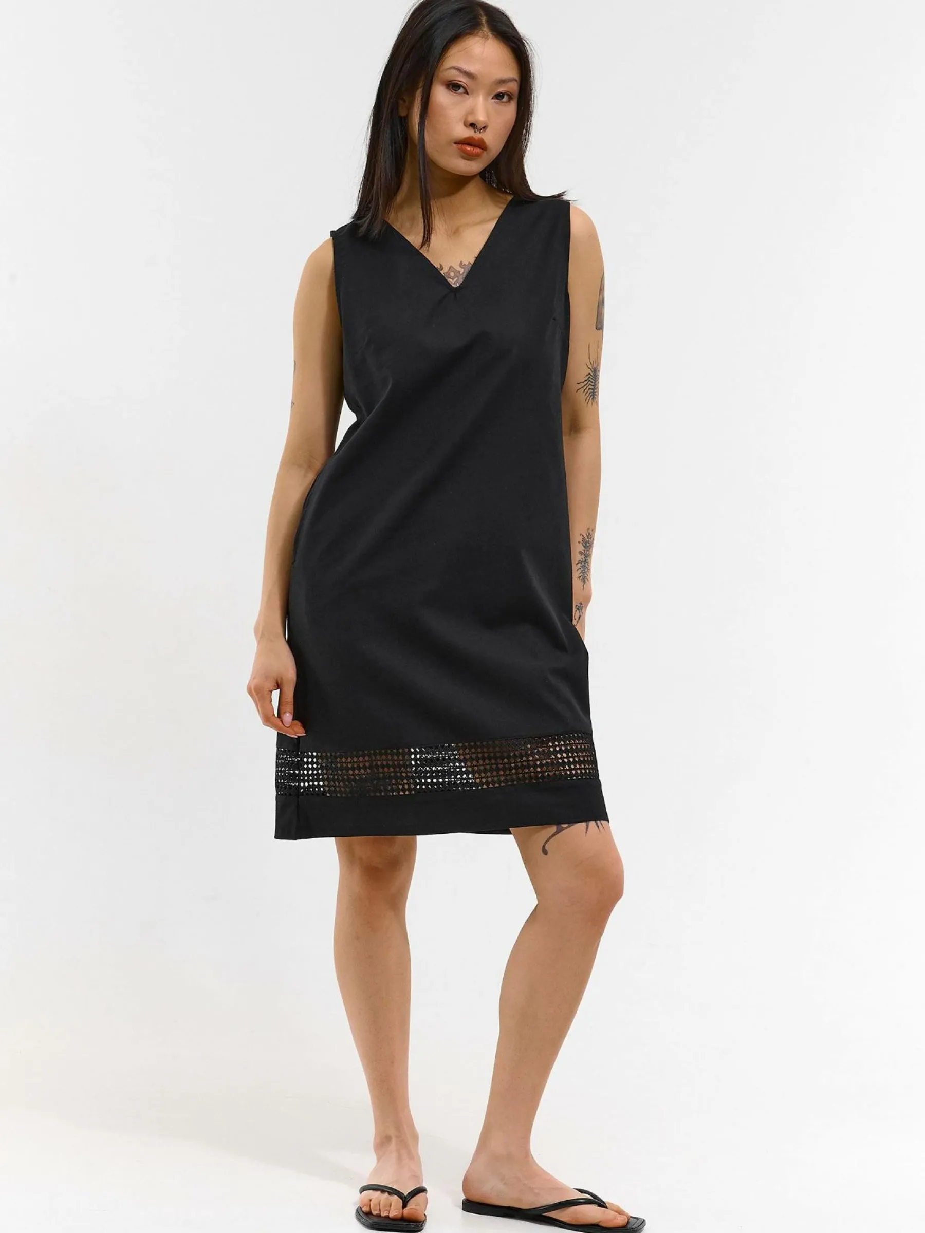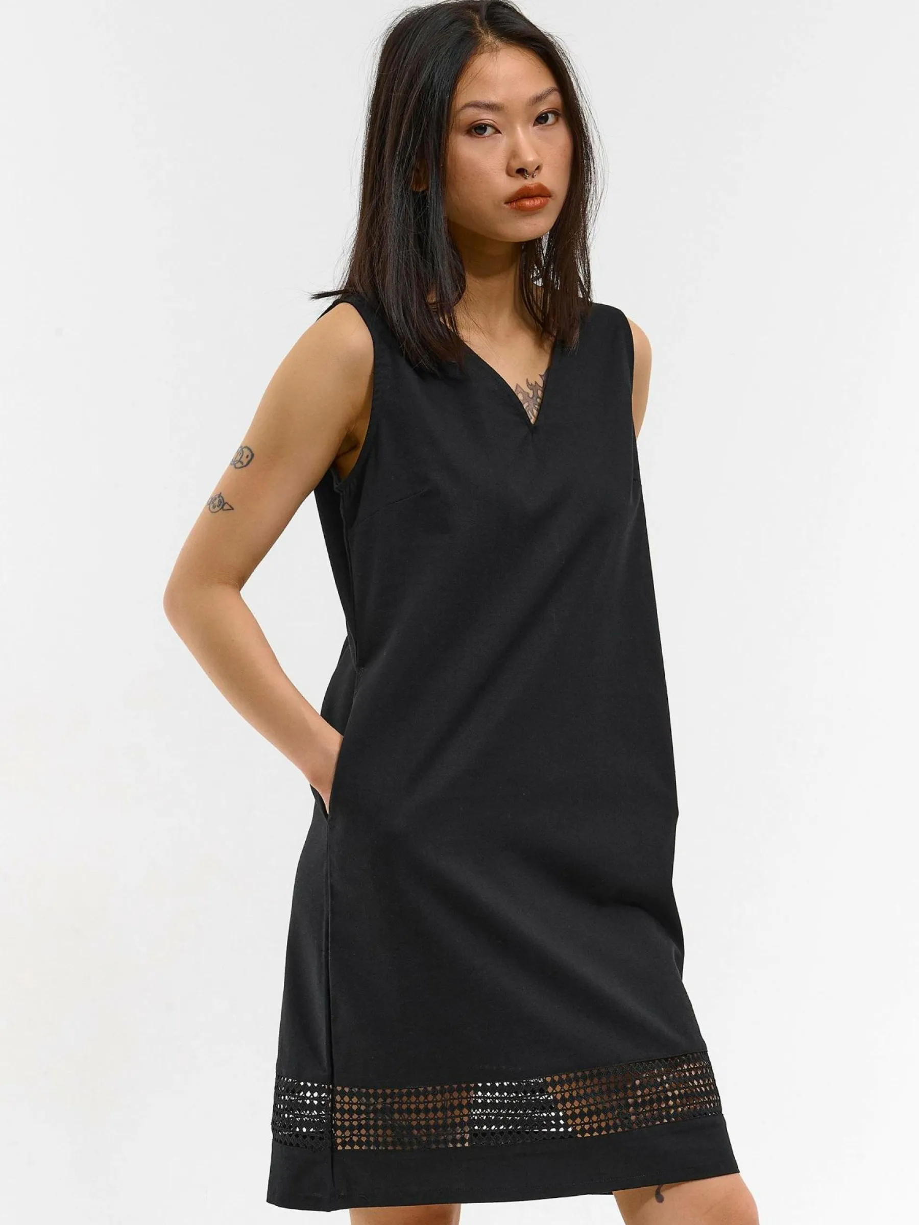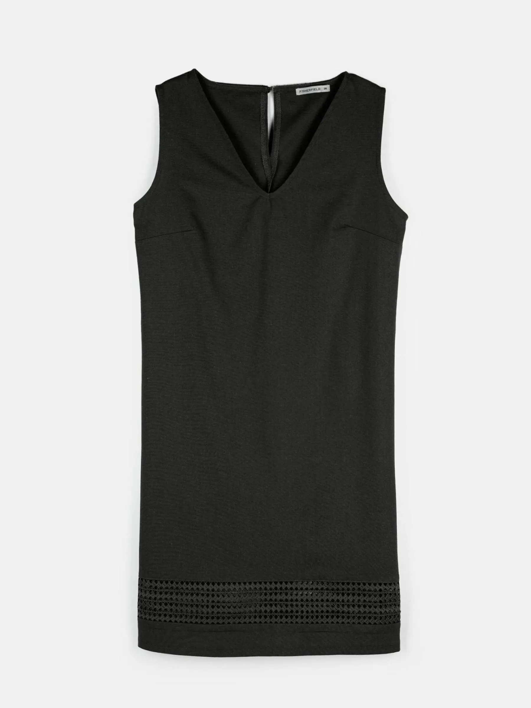 Kolor: czarnyKrój: regularTyp: sukienkaRekaw: bez rękawówDługość: miniPattern style: pojedynczy kolorDetal: v-neck…