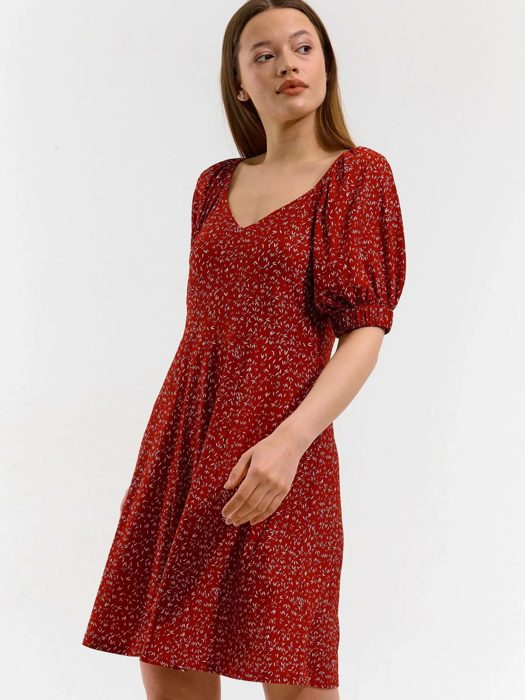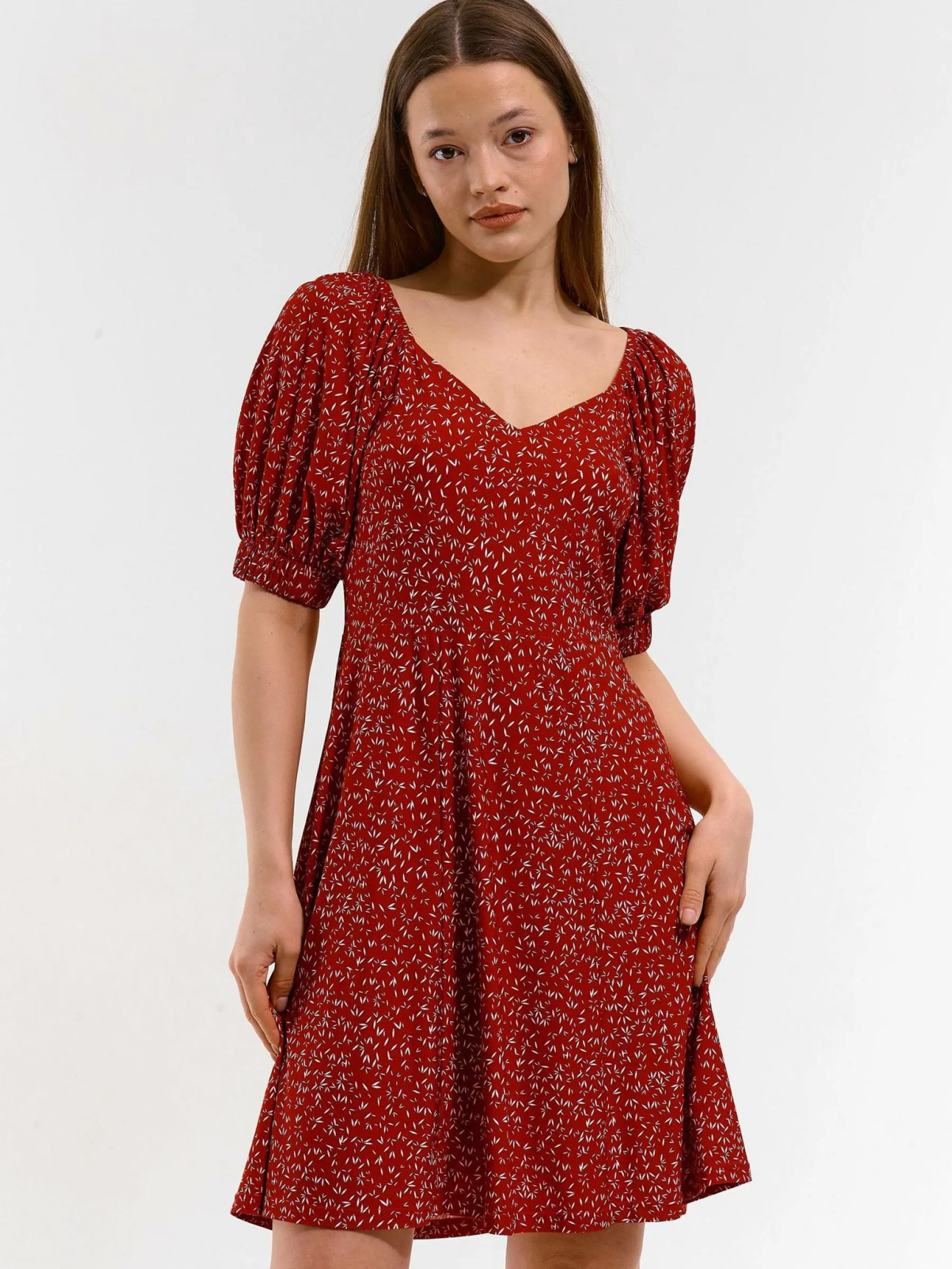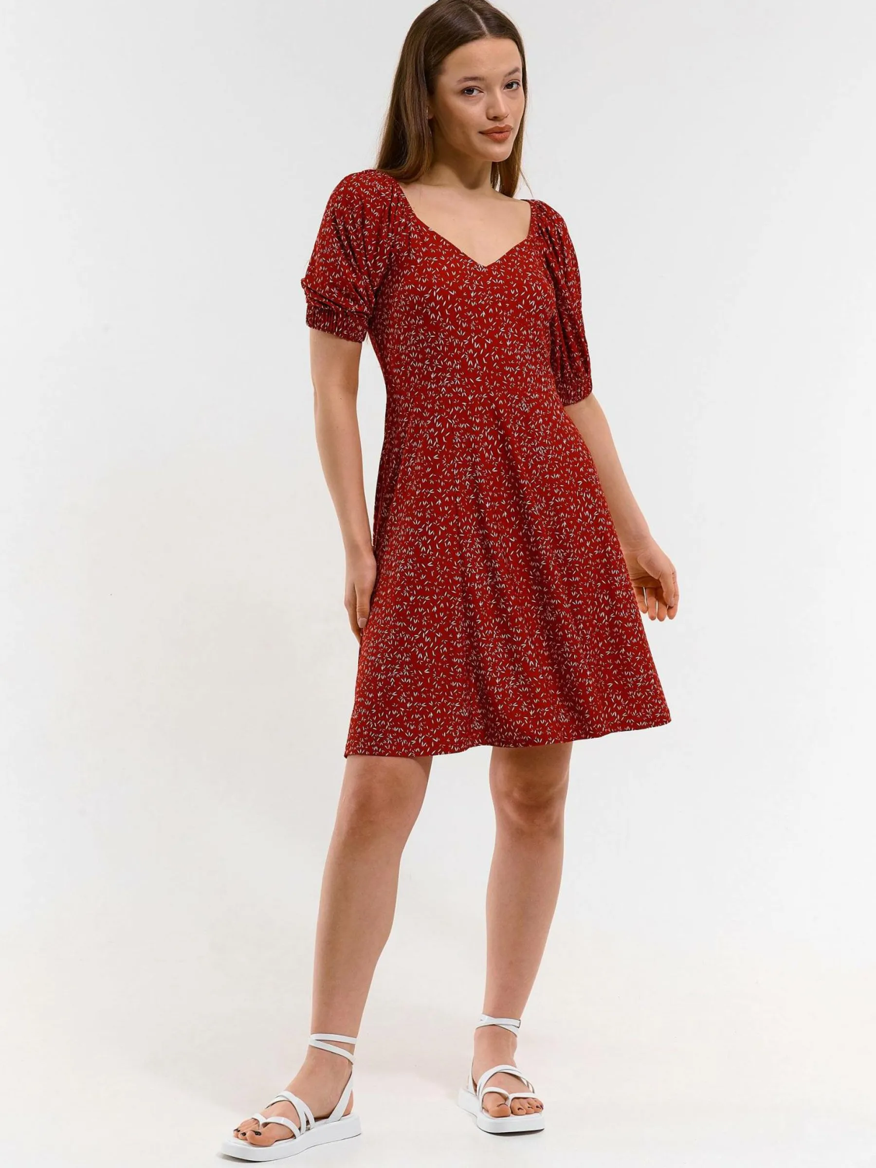 Kolor: czerwonyKrój: asyTyp: sukienkaRekaw: krótki rękawDługość: miniPattern style: z nadrukiemDetal: v-neckMateri…