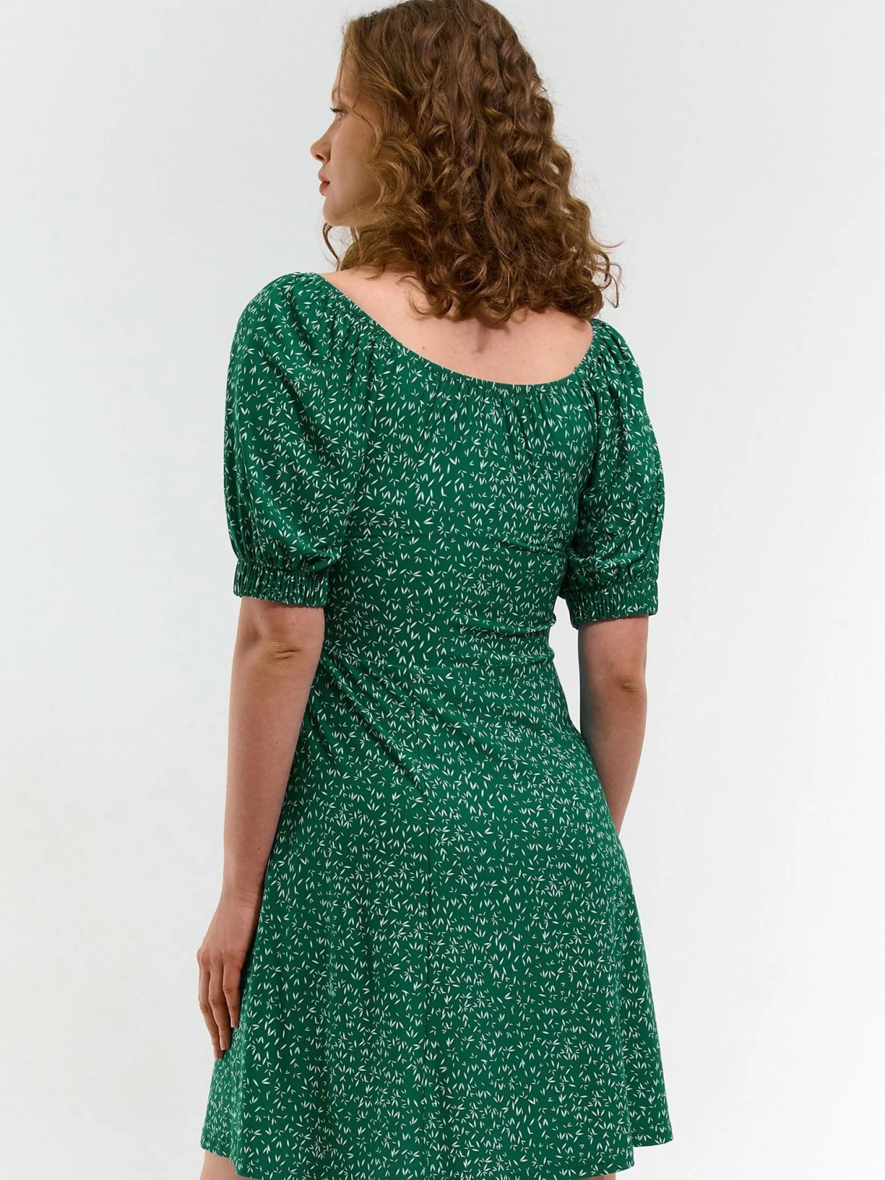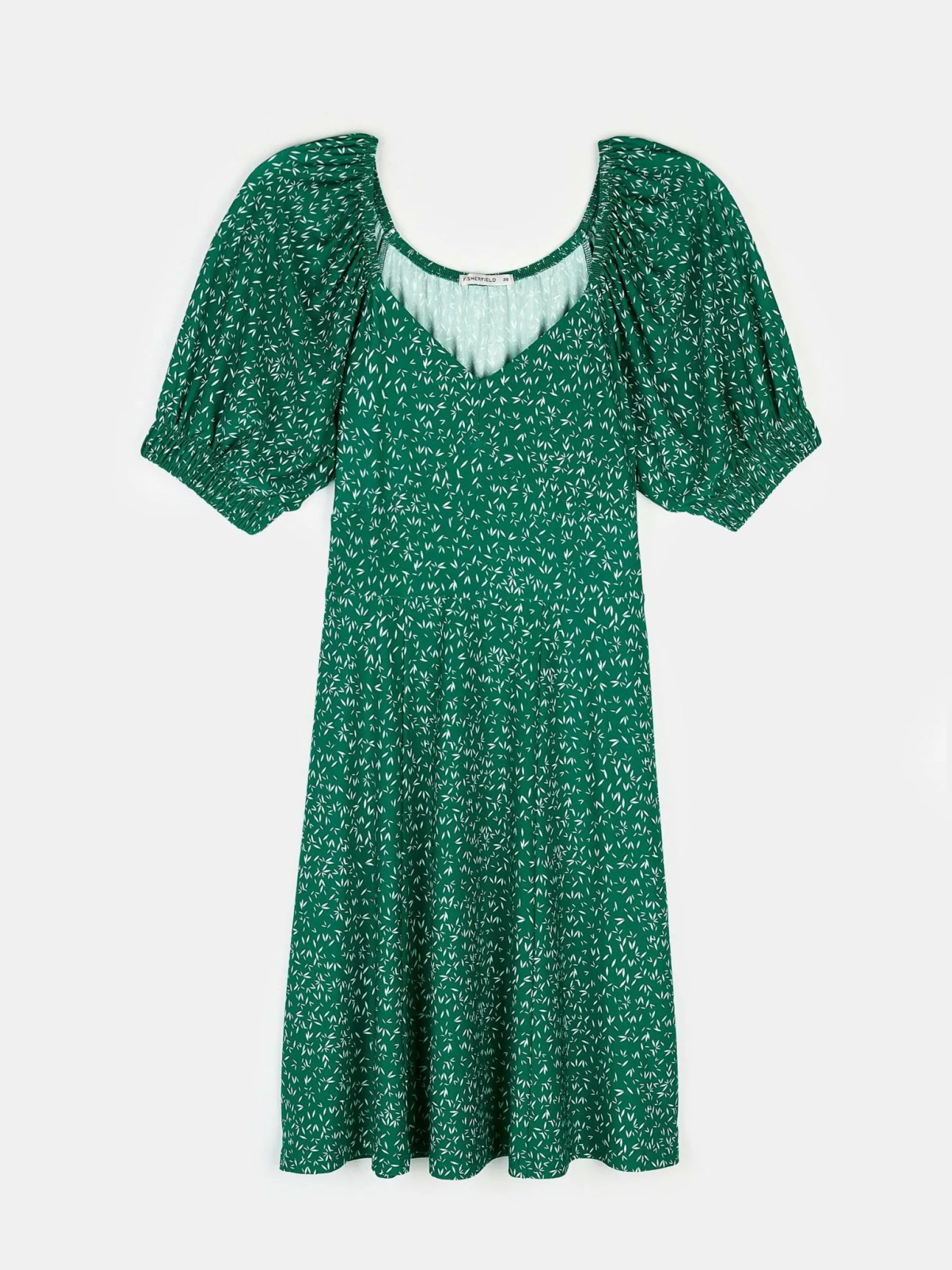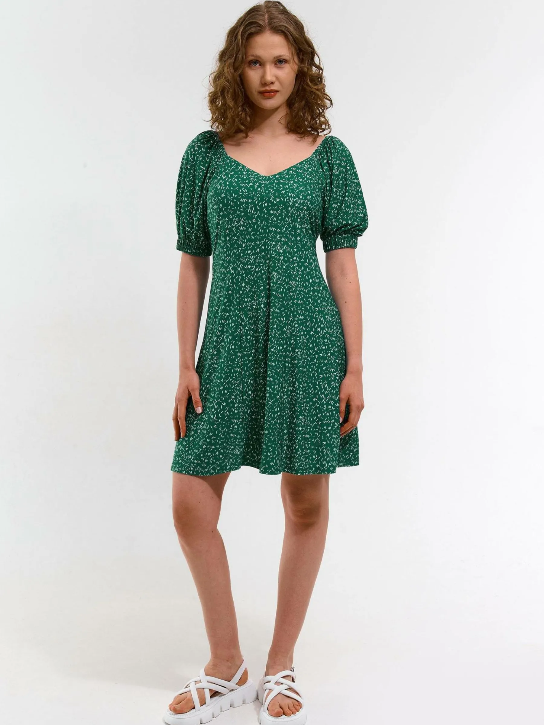 Kolor: zielonyKrój: asyTyp: sukienkaRekaw: krótki rękawDługość: miniPattern style: z nadrukiemDetal: v-neckMateria…