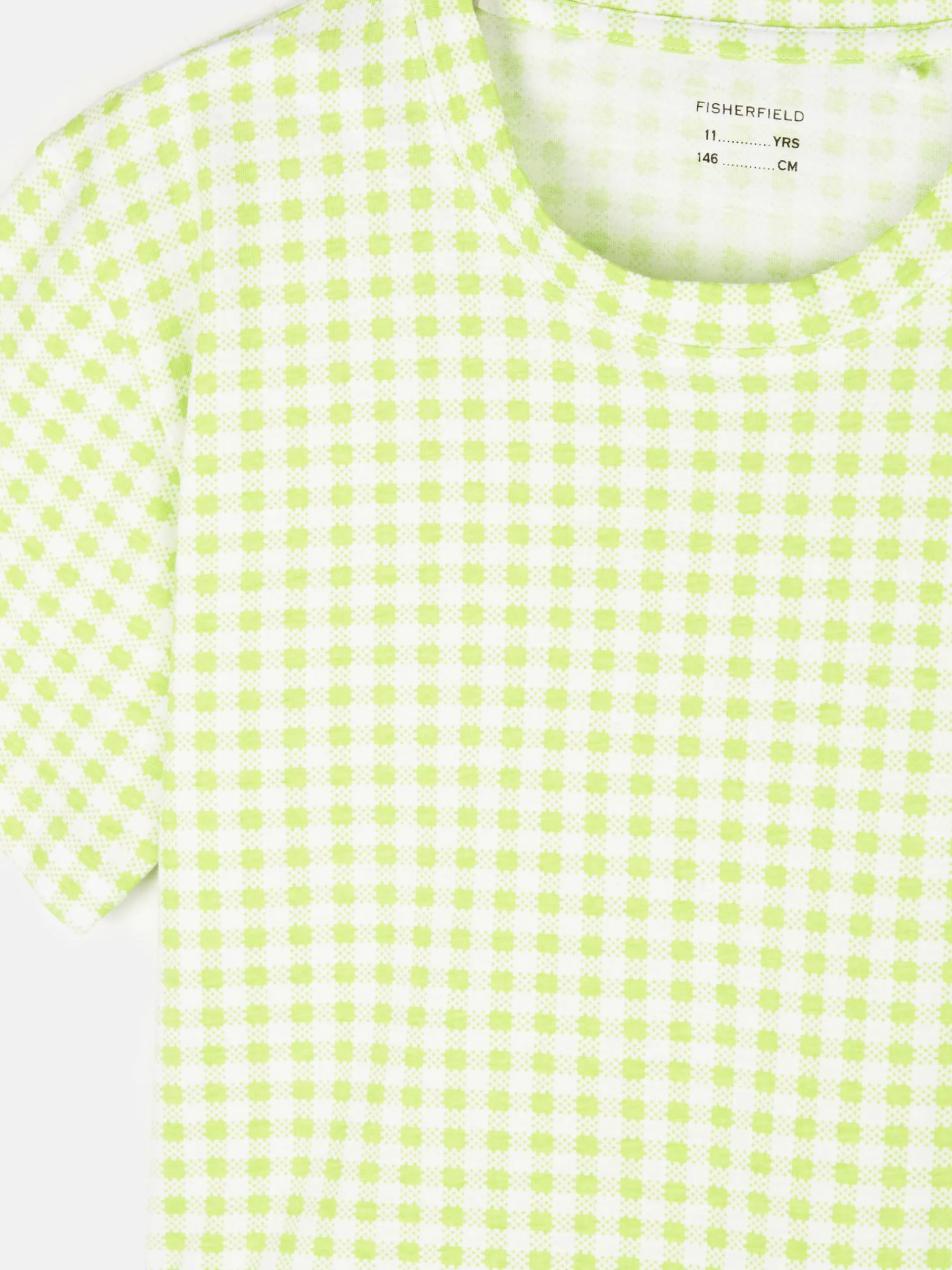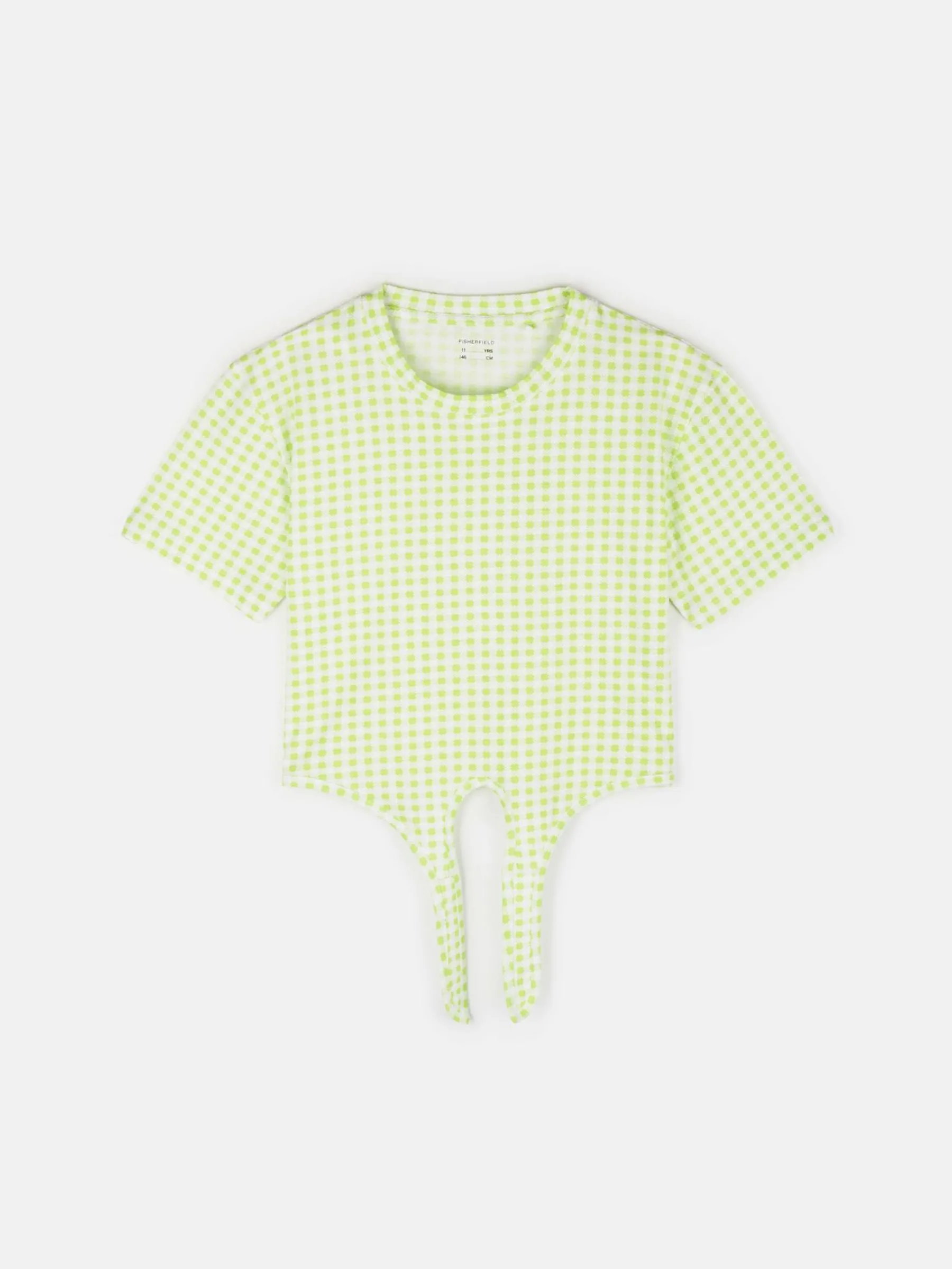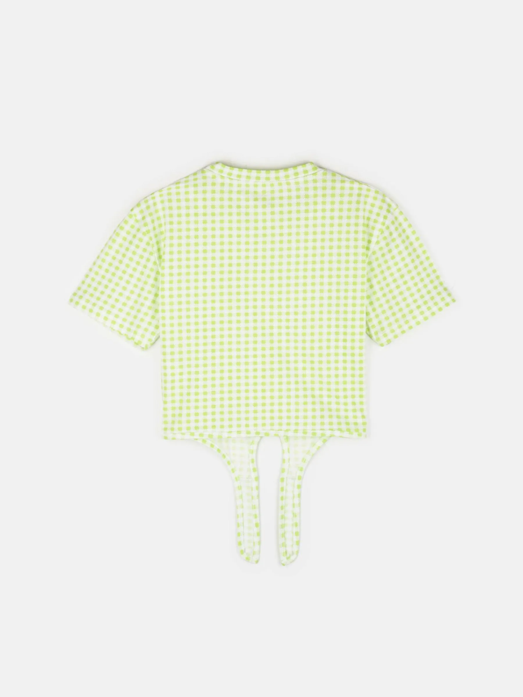Kolor: zielonyKrój: regularTyp: koszulkaRekaw: krótki rękawDługość: krótki topPattern style: w kratkęDetal: nad …