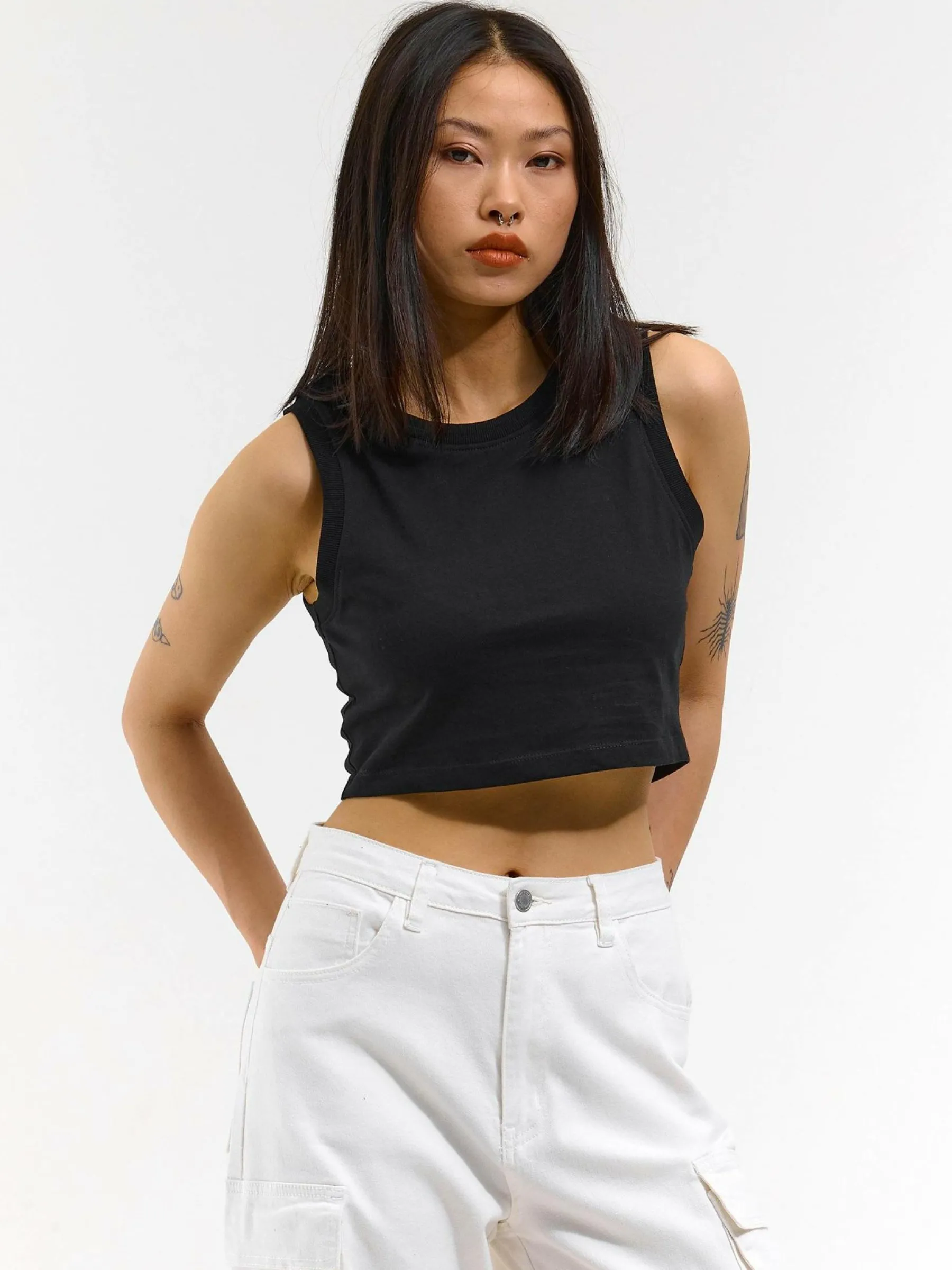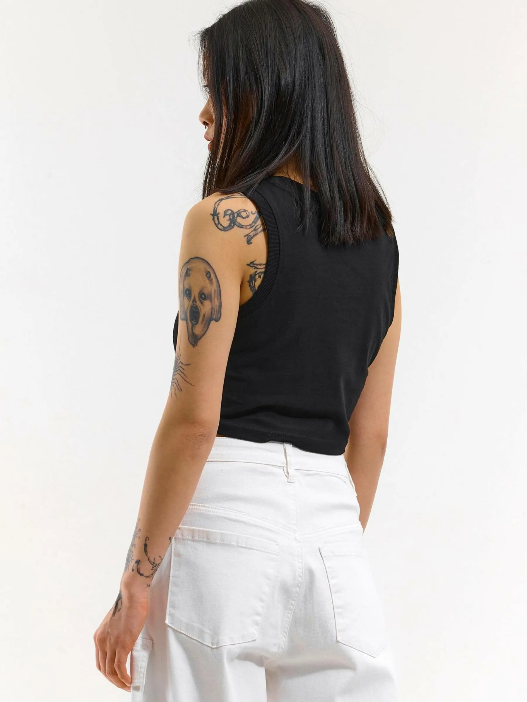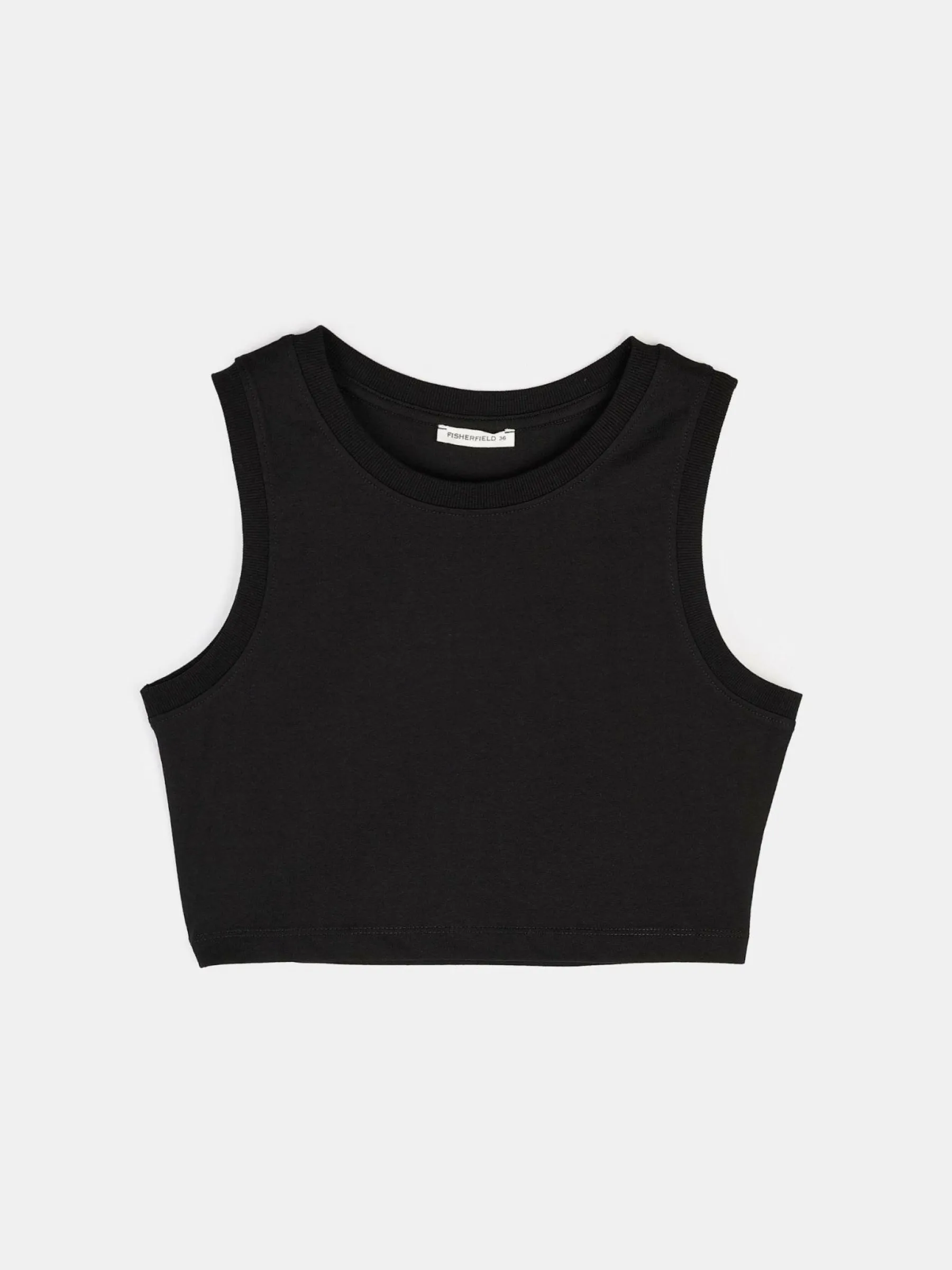 Kolor: czarnyKrój: regularTyp: podkoszulekRekaw: bez rękawówDługość: krótki topPattern style: pojedynczy kolorDet…