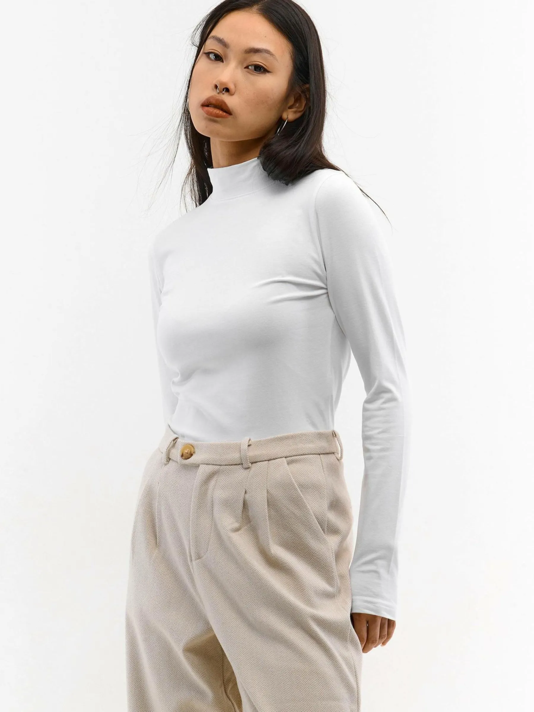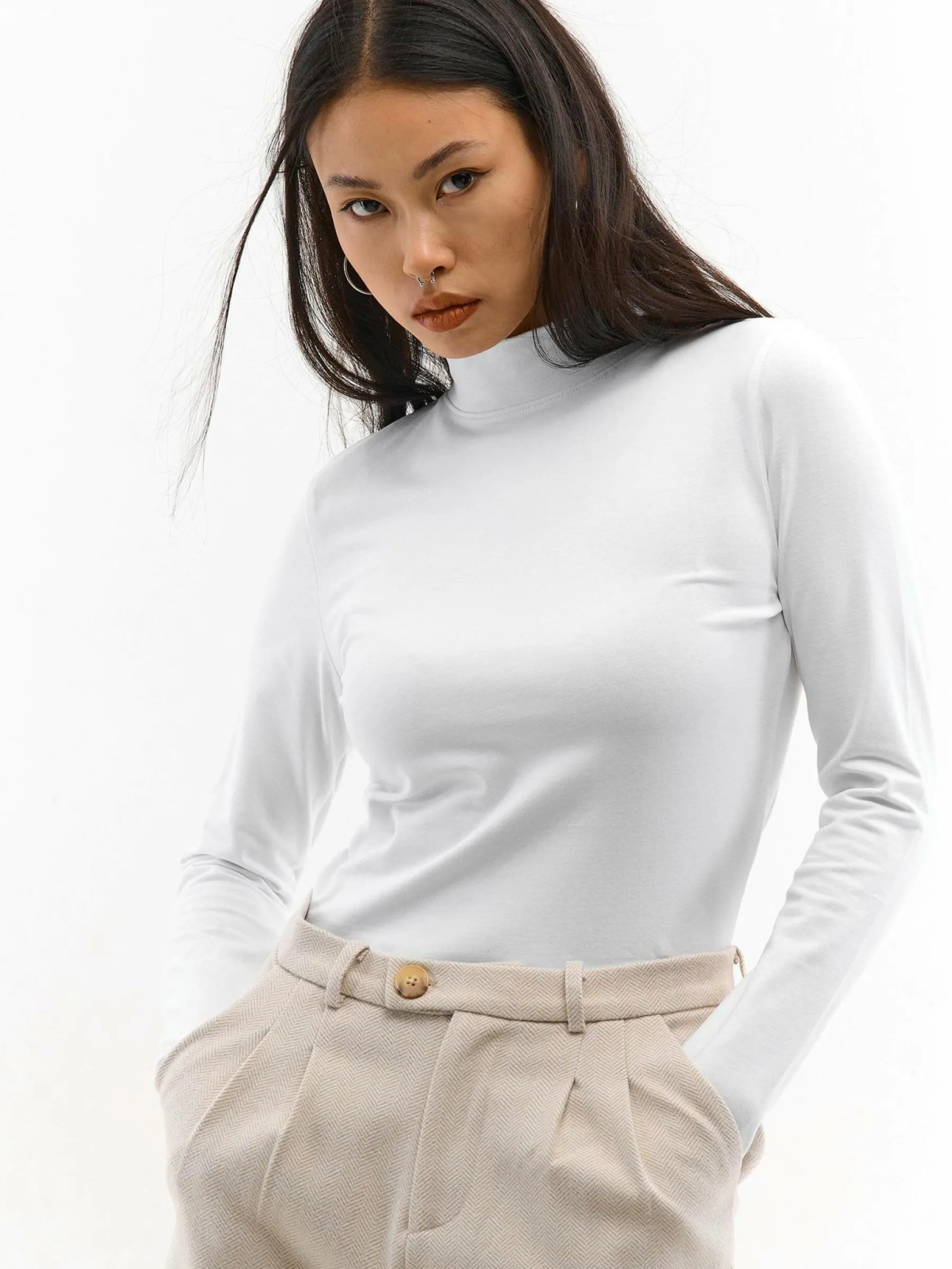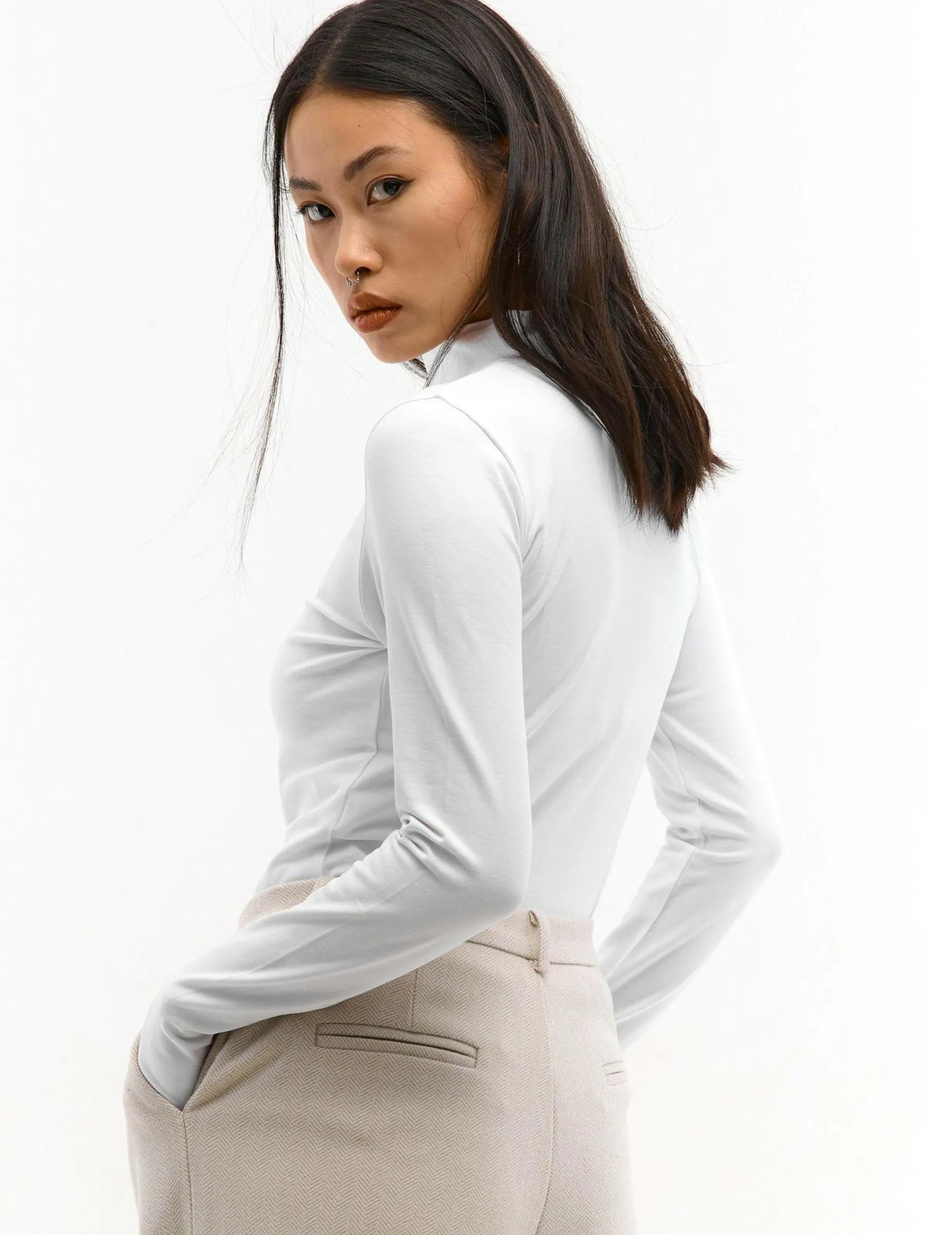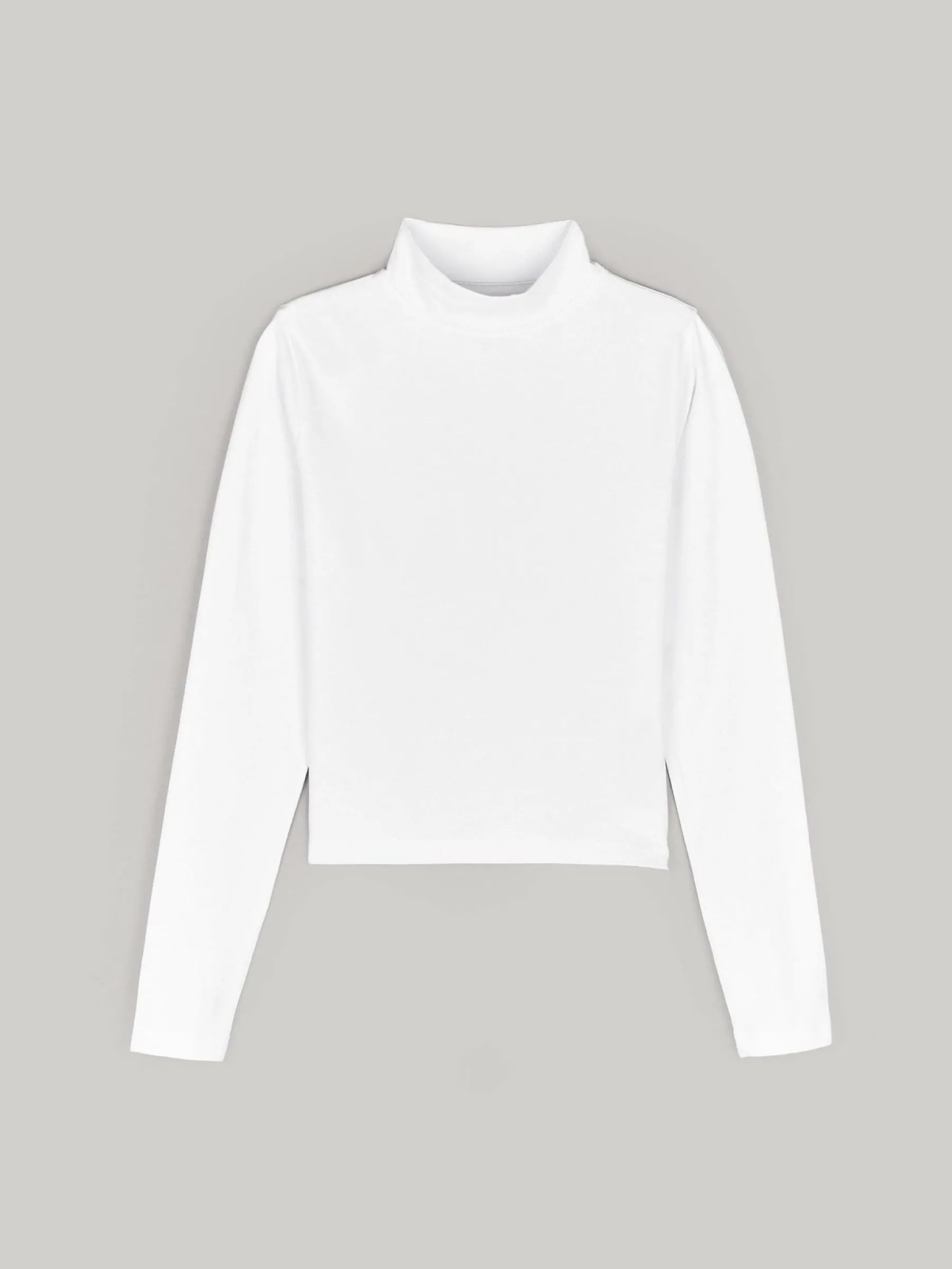 Kolor: białyKrój: regularTyp: golfRekaw: długi rękawDługość: krótki topPattern style: pojedynczy kolorDetal: nad…