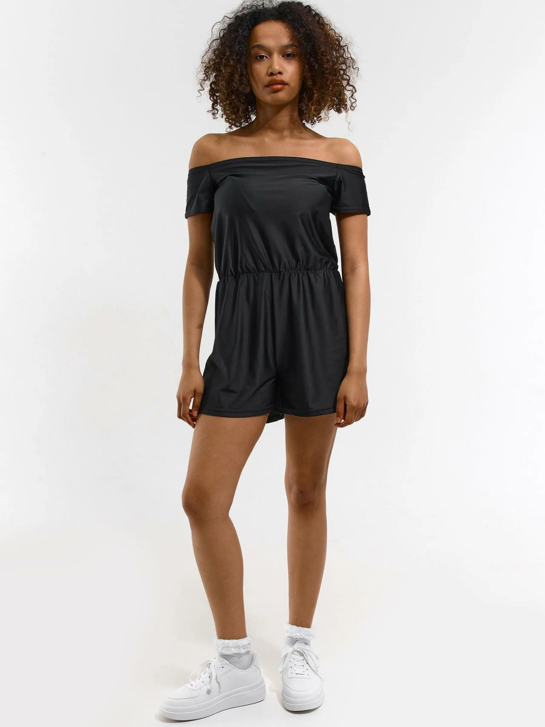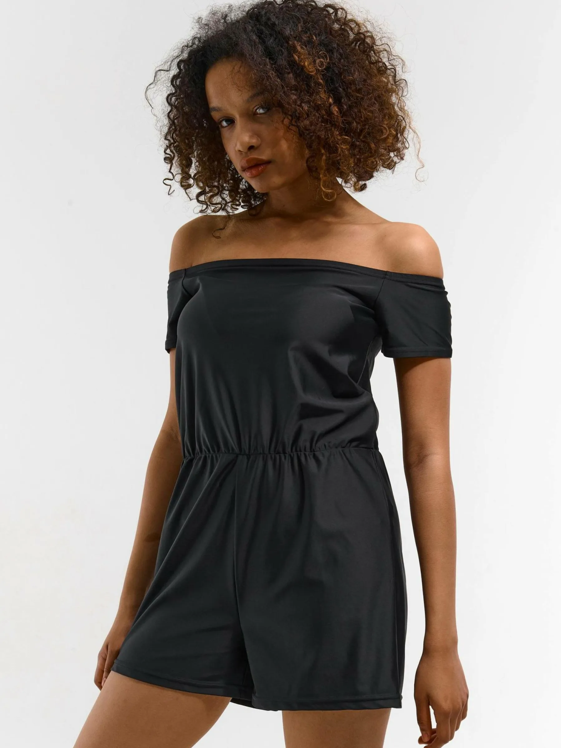 Kolor: czarnyKrój: z marszczeniemTyp: kombinezonRekaw: krótki rękawDługość: krótkiPattern style: pojedynczy kolor…