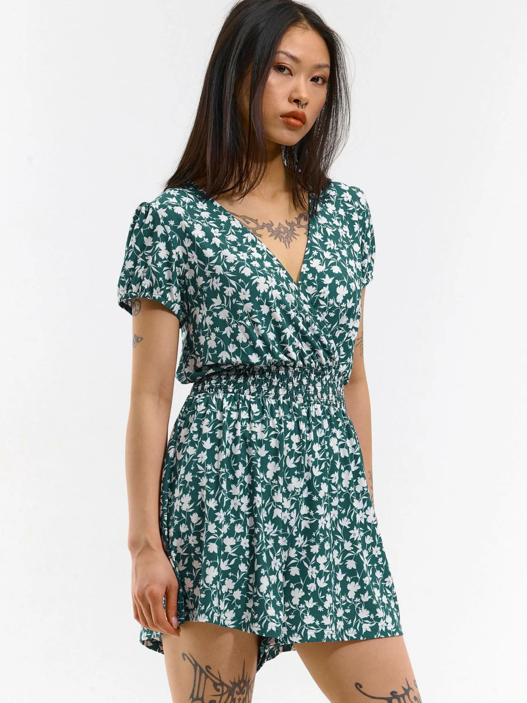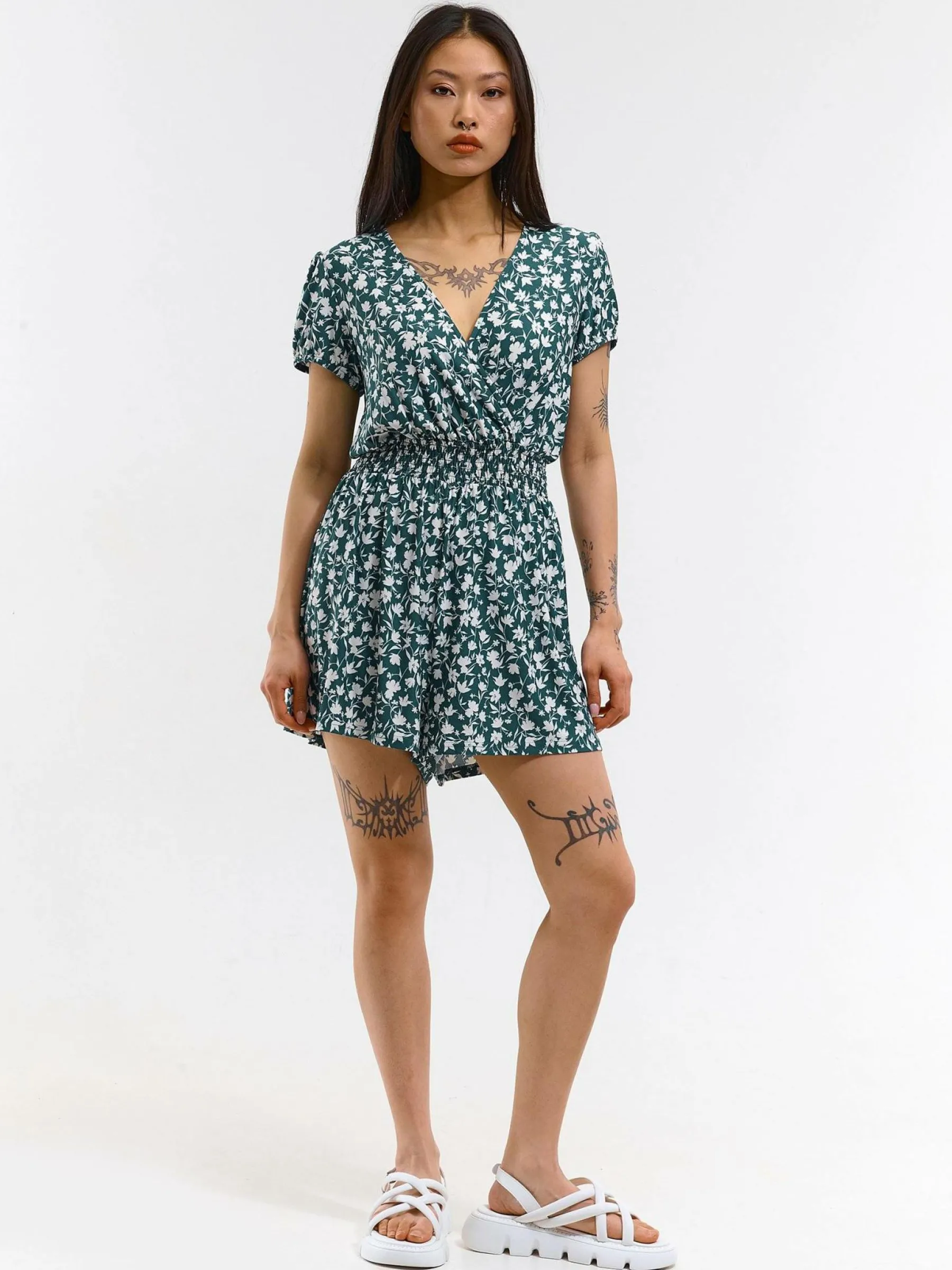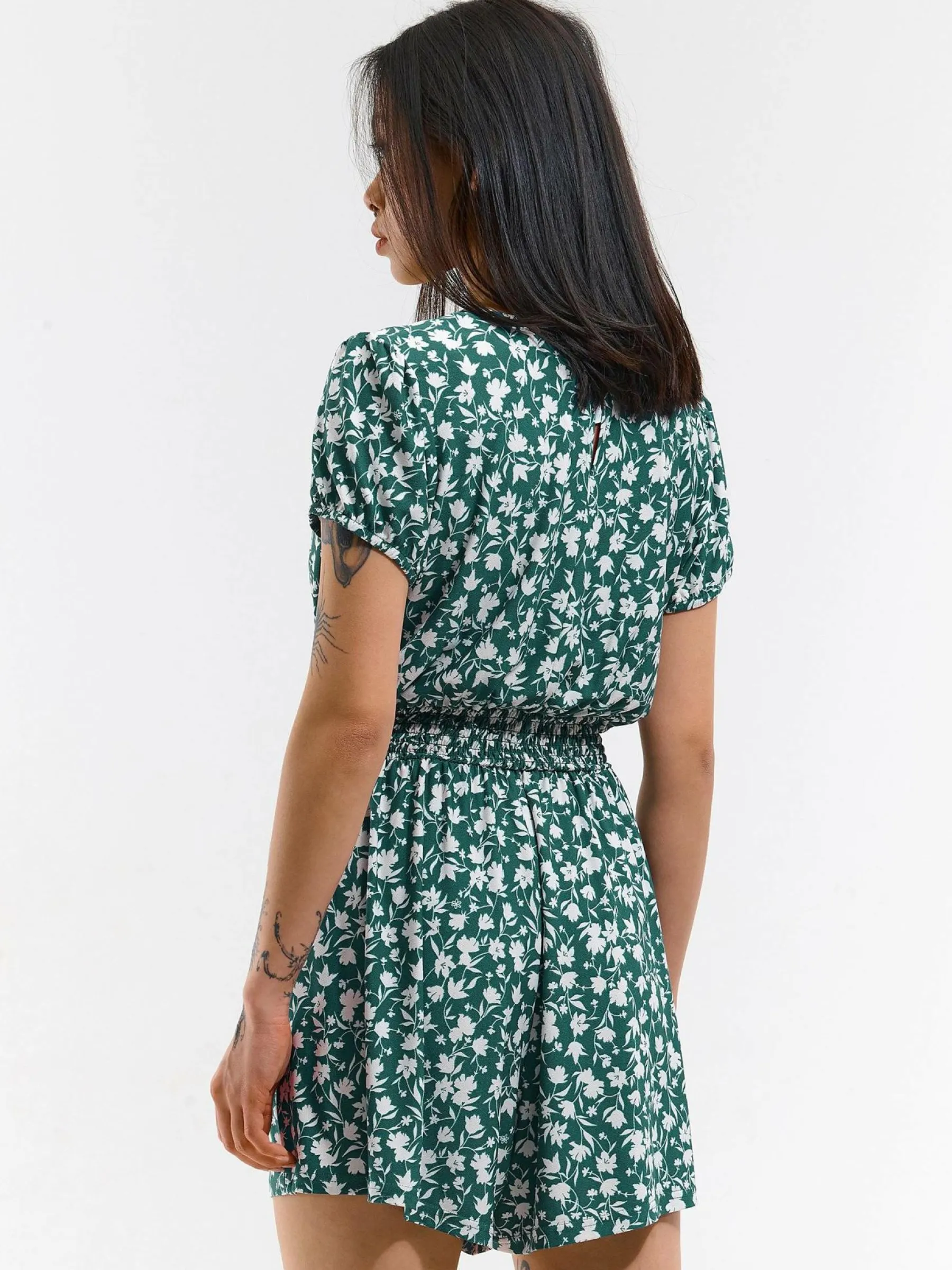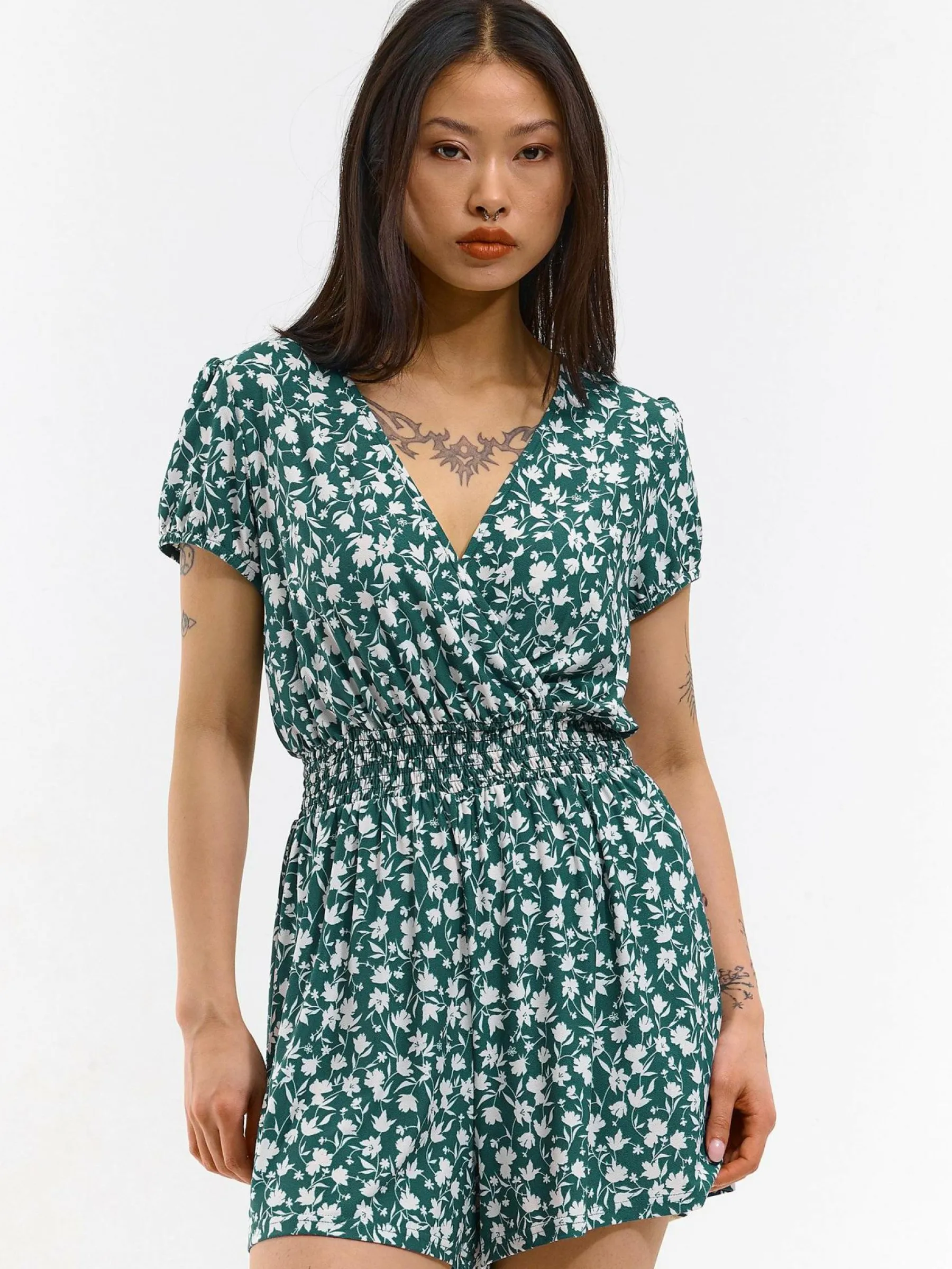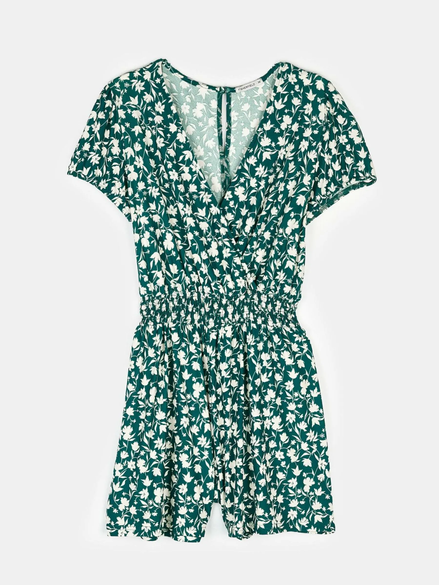 Kolor: zielonyKrój: z marszczeniemTyp: kombinezonRekaw: krótki rękawDługość: krótkiPattern style: z nadrukiem, kw…