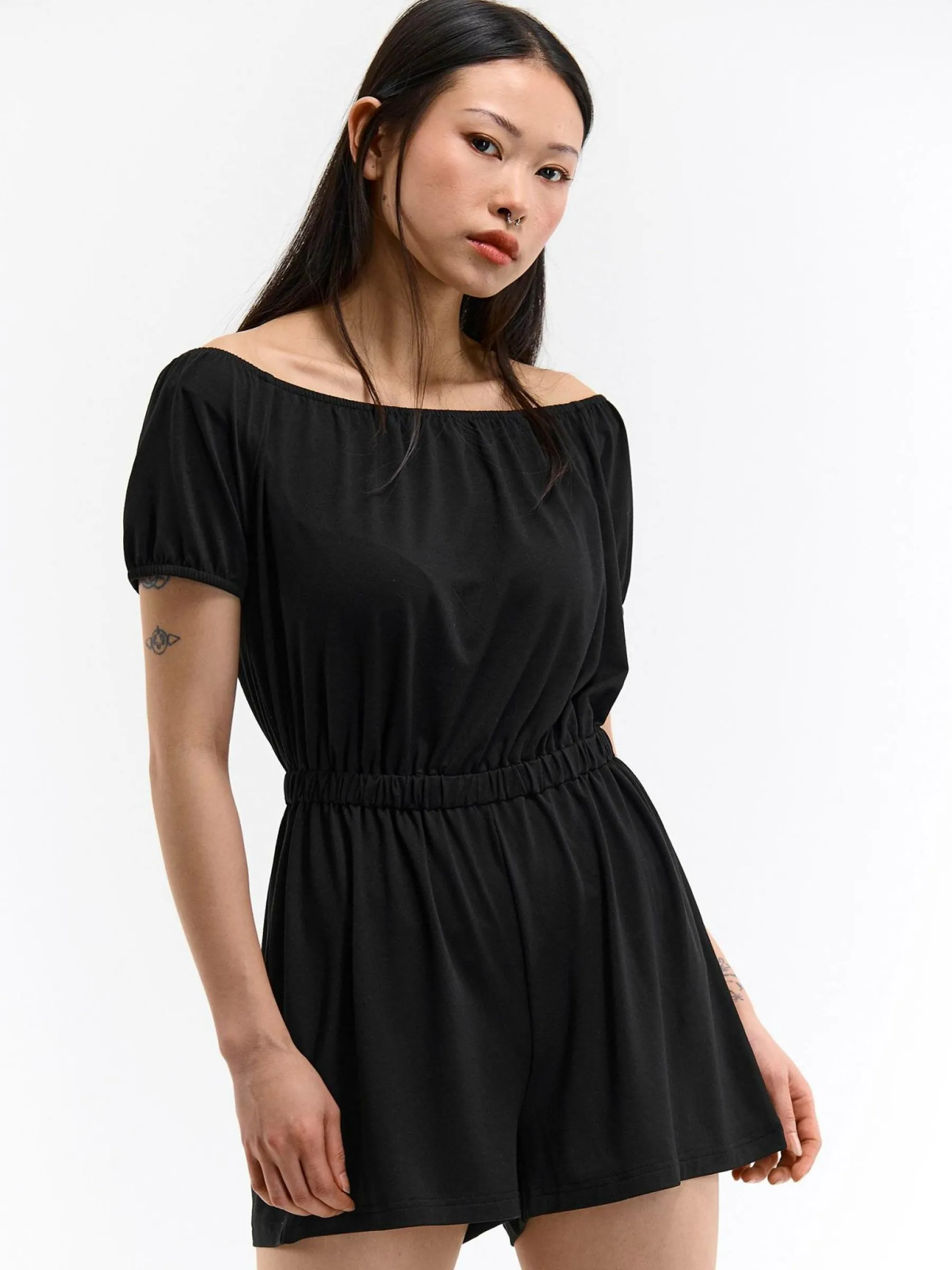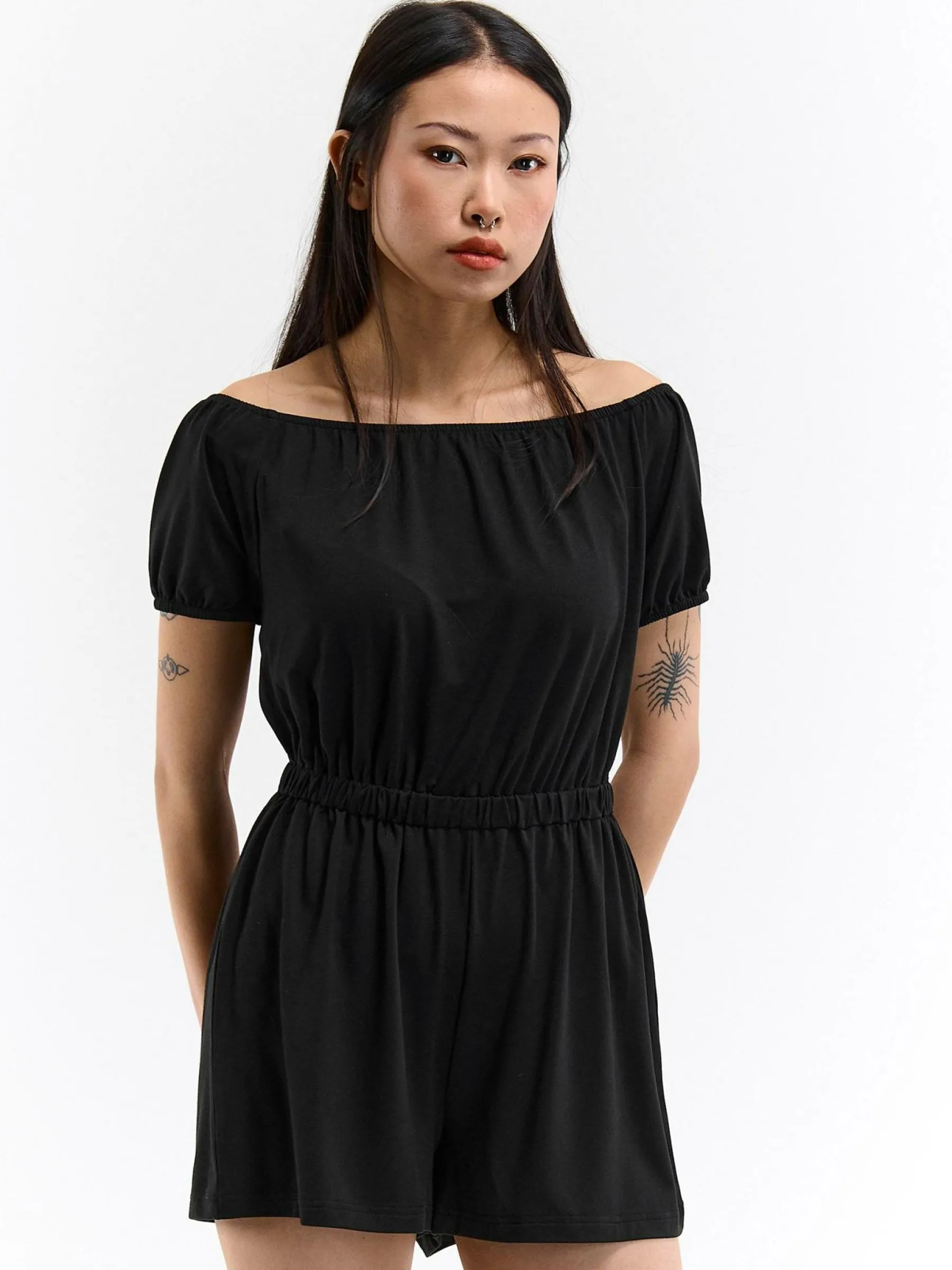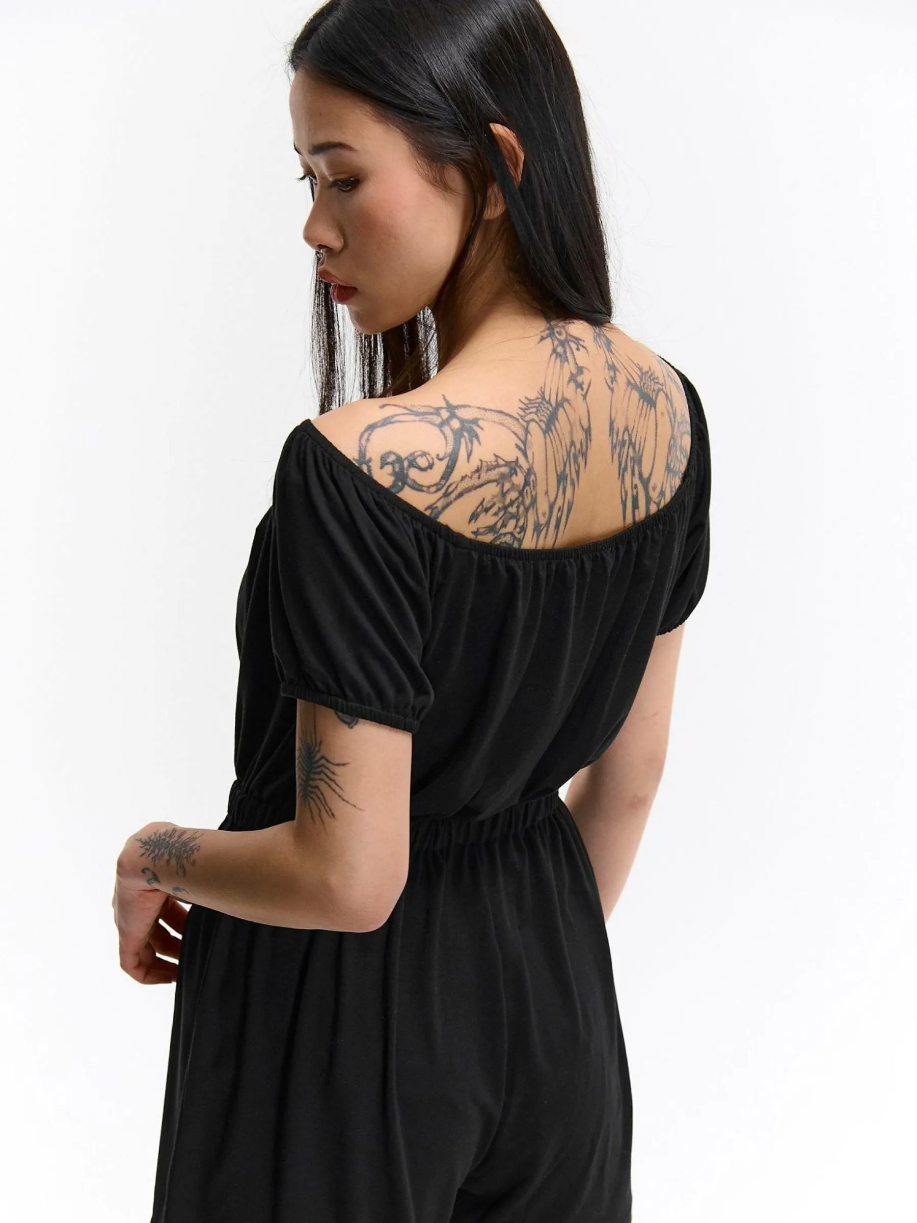Kolor: czarnyKrój: z marszczeniemTyp: kombinezonRekaw: krótki rękawDługość: krótkiPattern style: pojedynczy kolor…