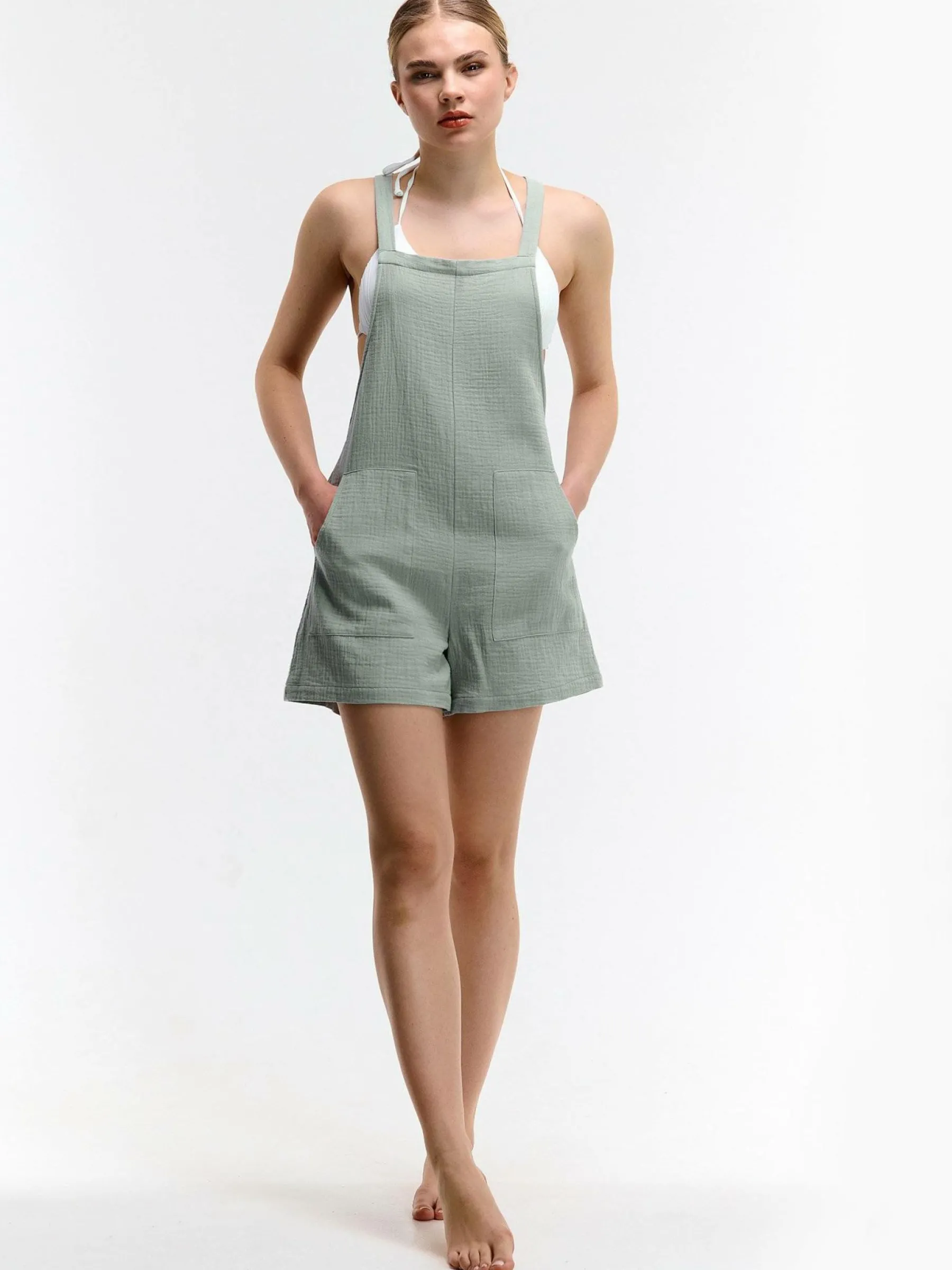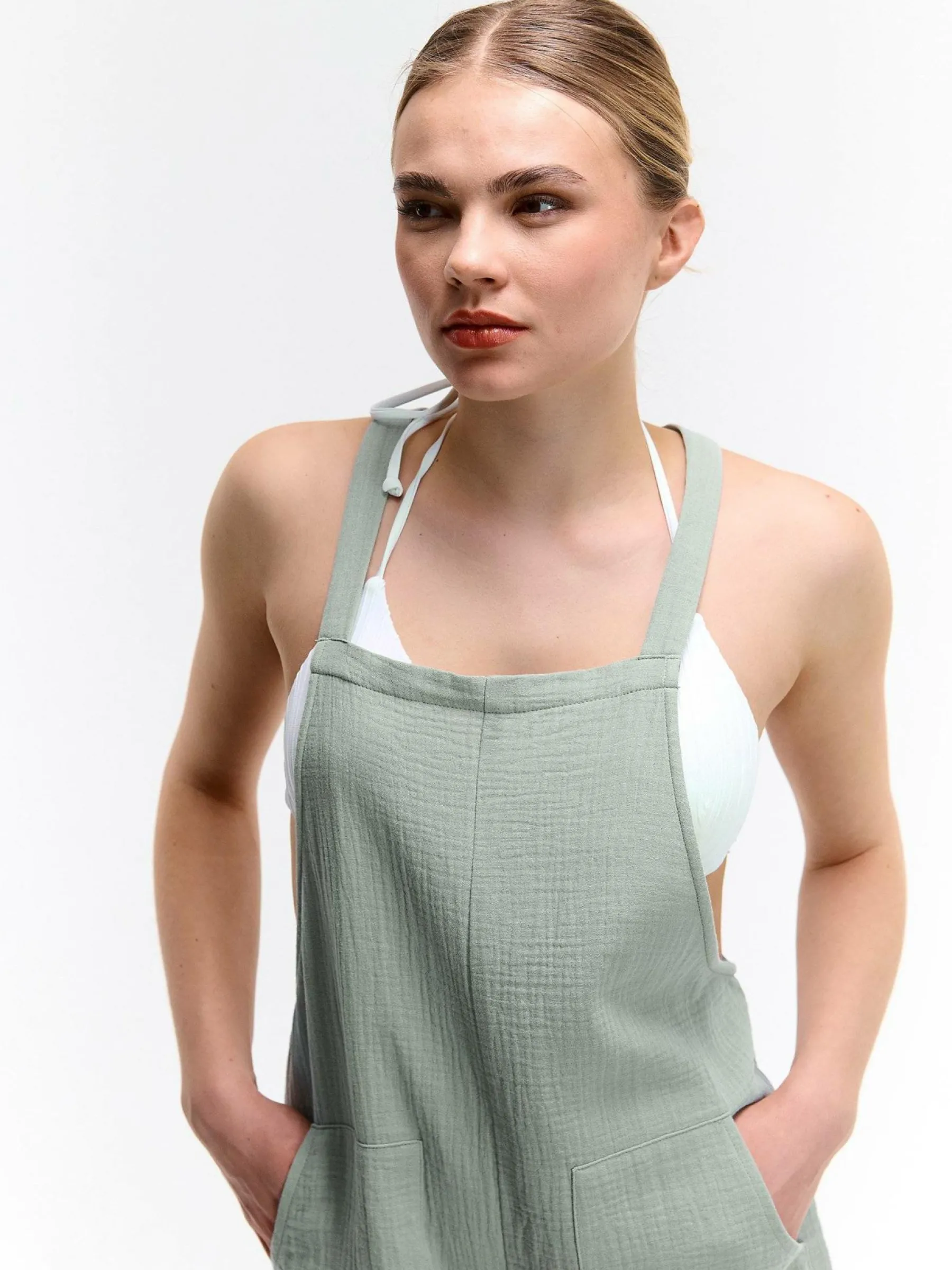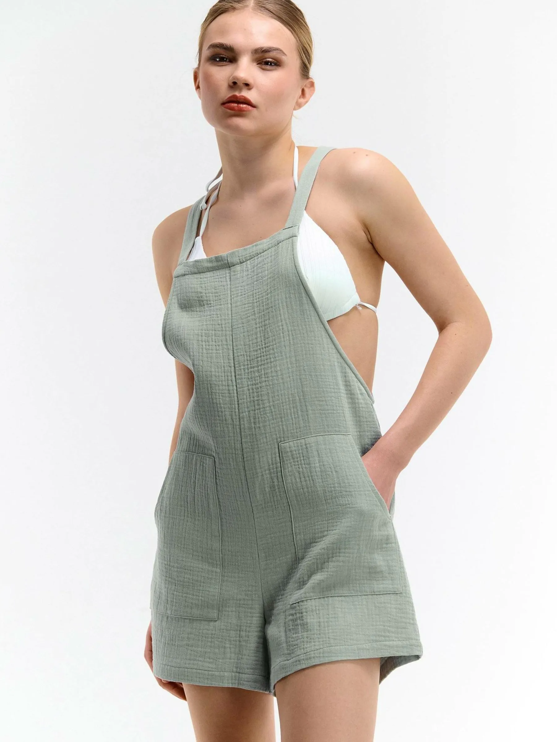 Kolor: zielonyKrój: na szelkachTyp: kombinezonRekaw: bez rękawówDługość: krótkiPattern style: pojedynczy kolorDet…