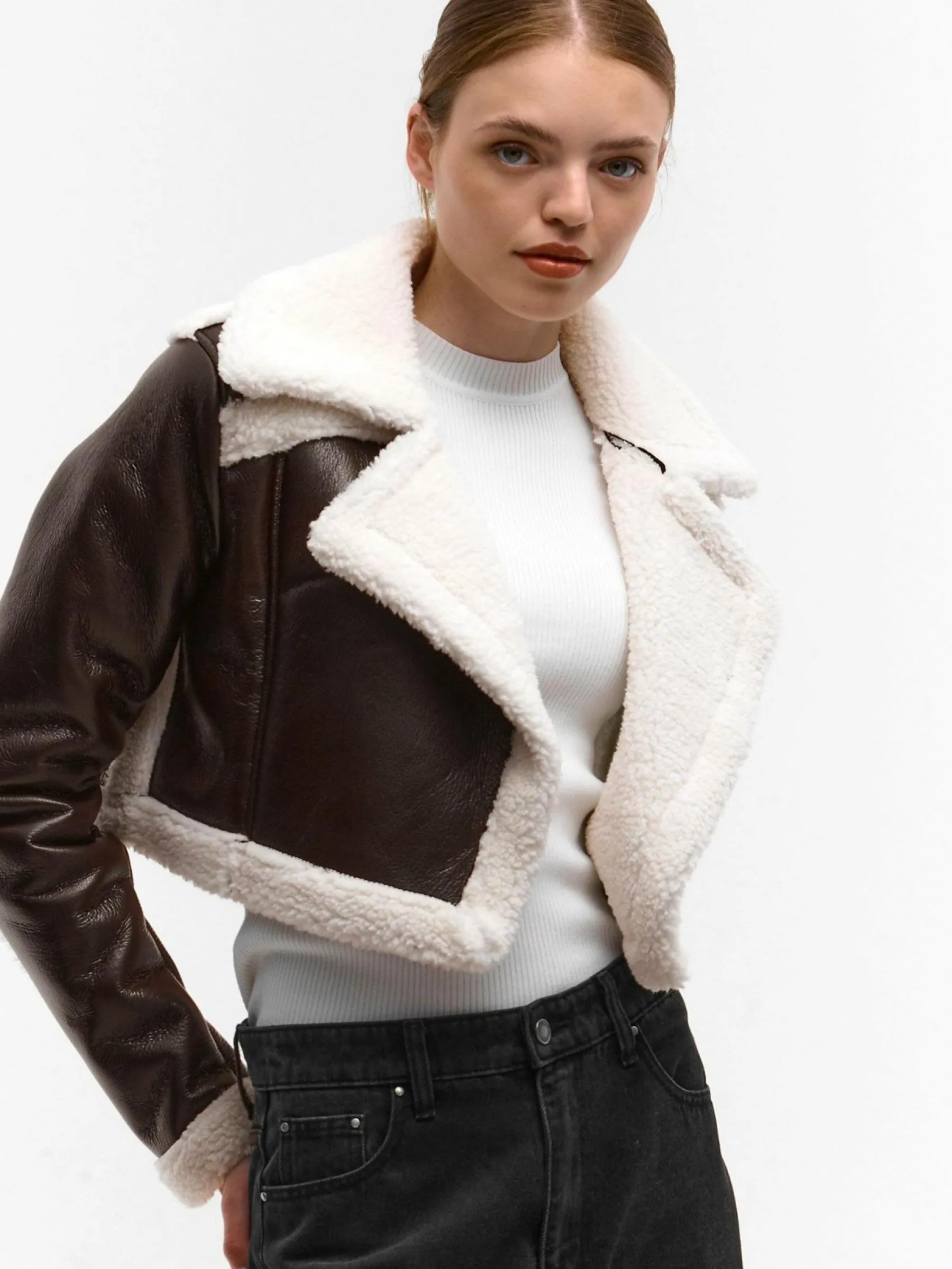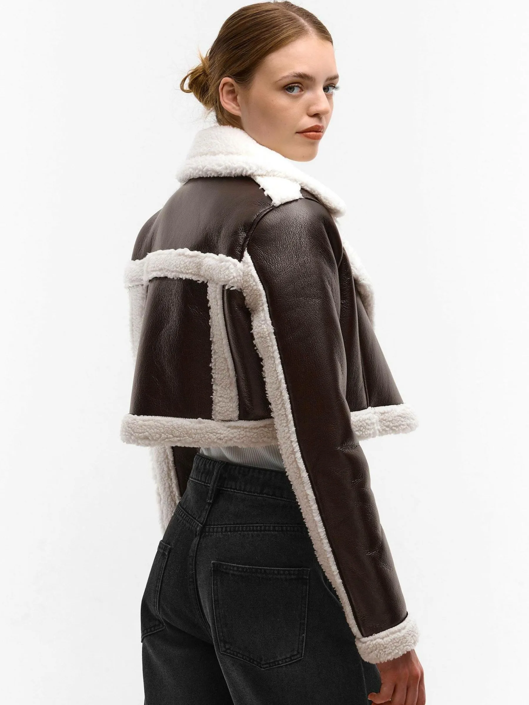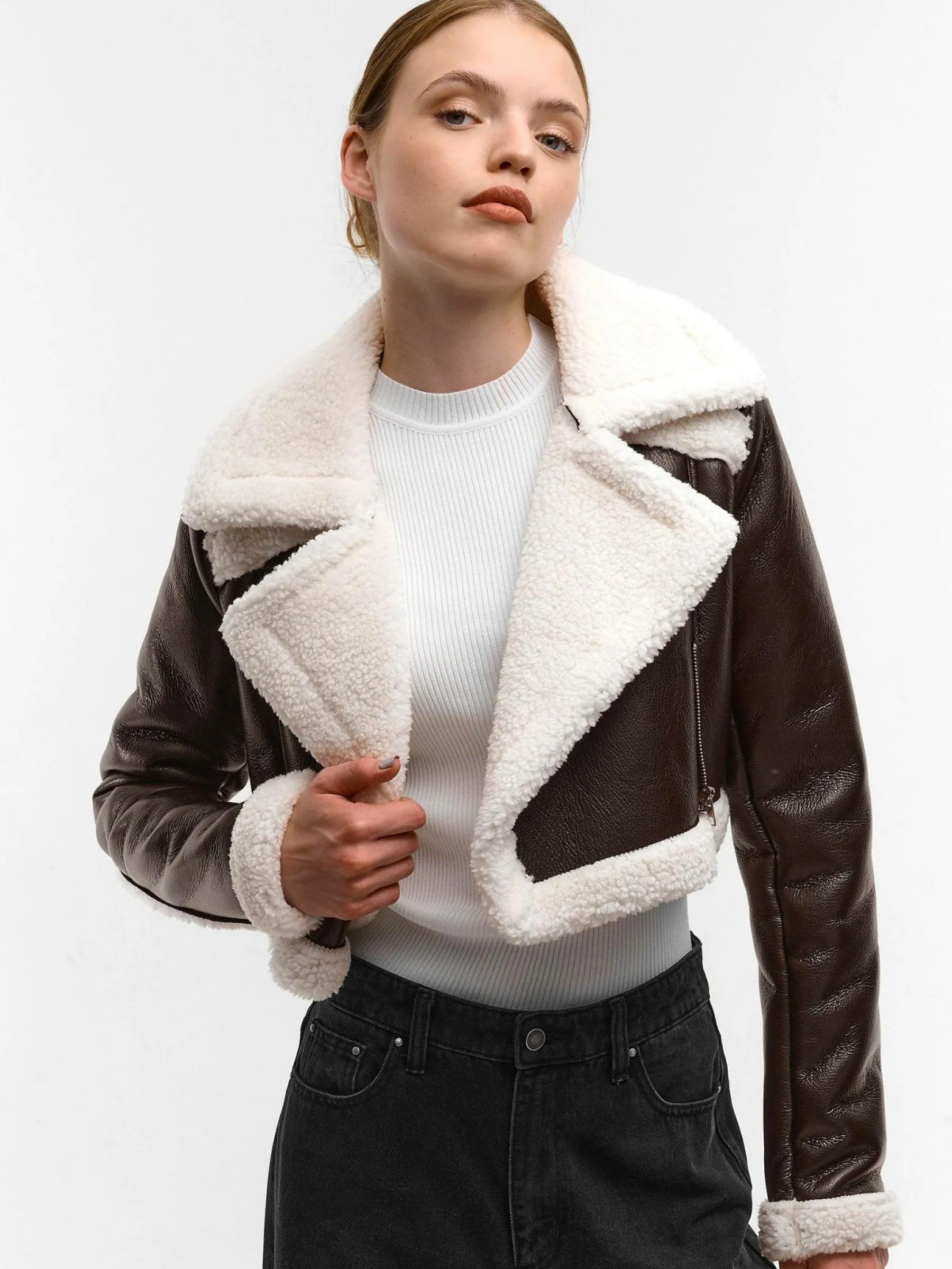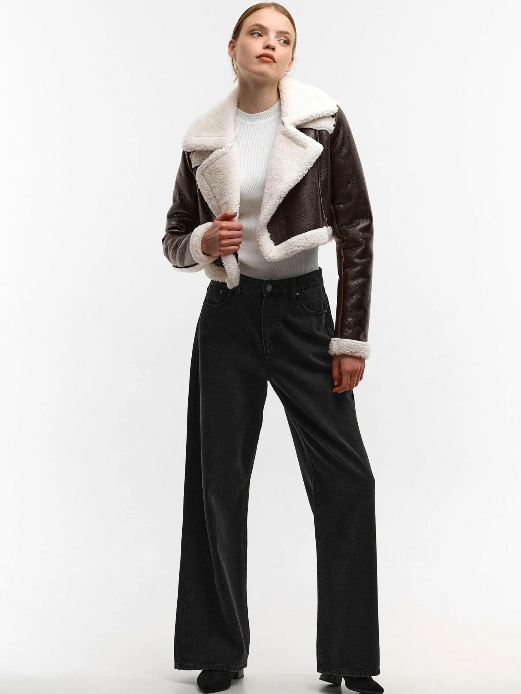 Kolor: brązowyKrój: motocykloweTyp: płaszczRekaw: długi rękawDługość: krótki topPattern style: pojedynczy kolor…