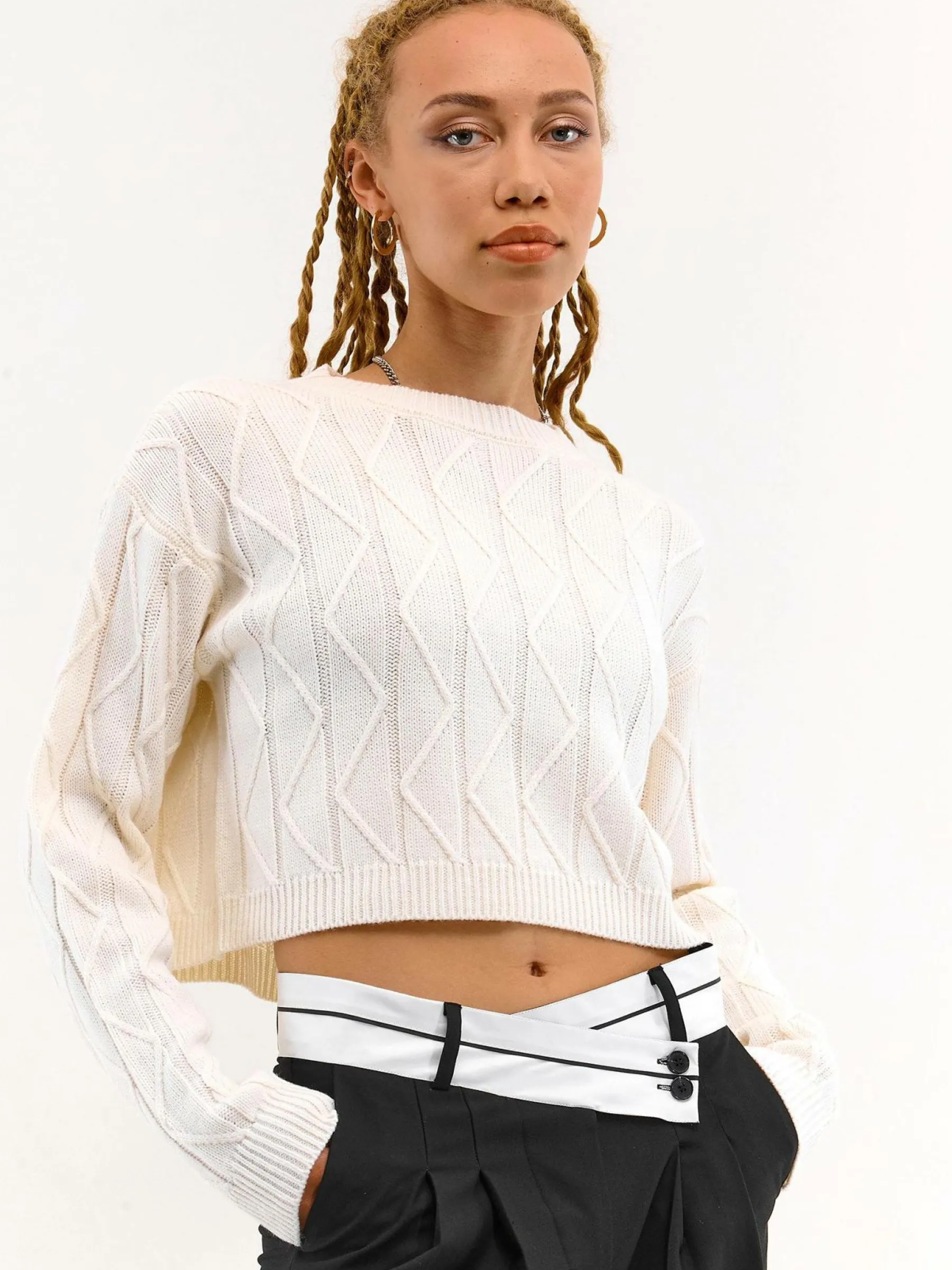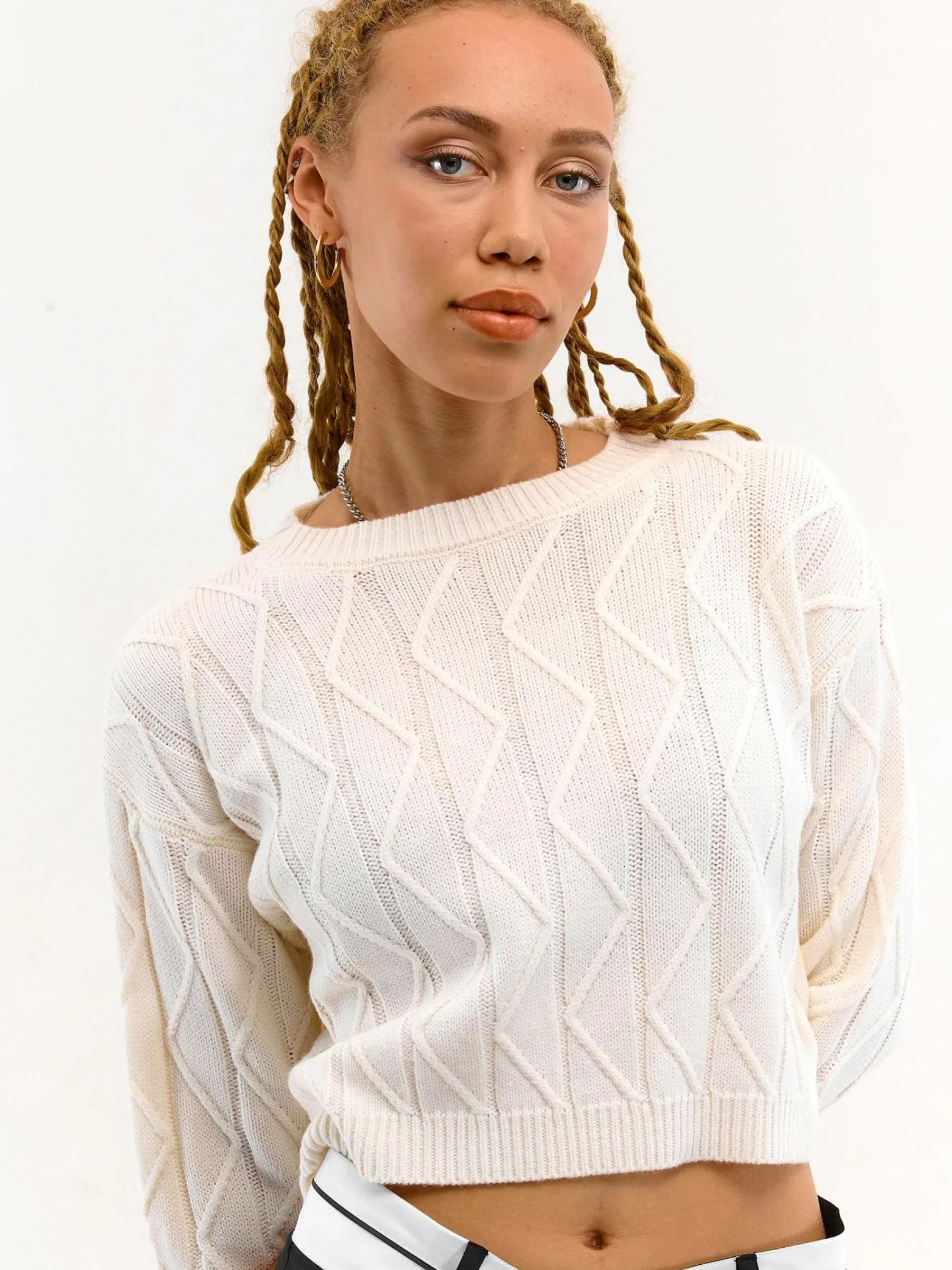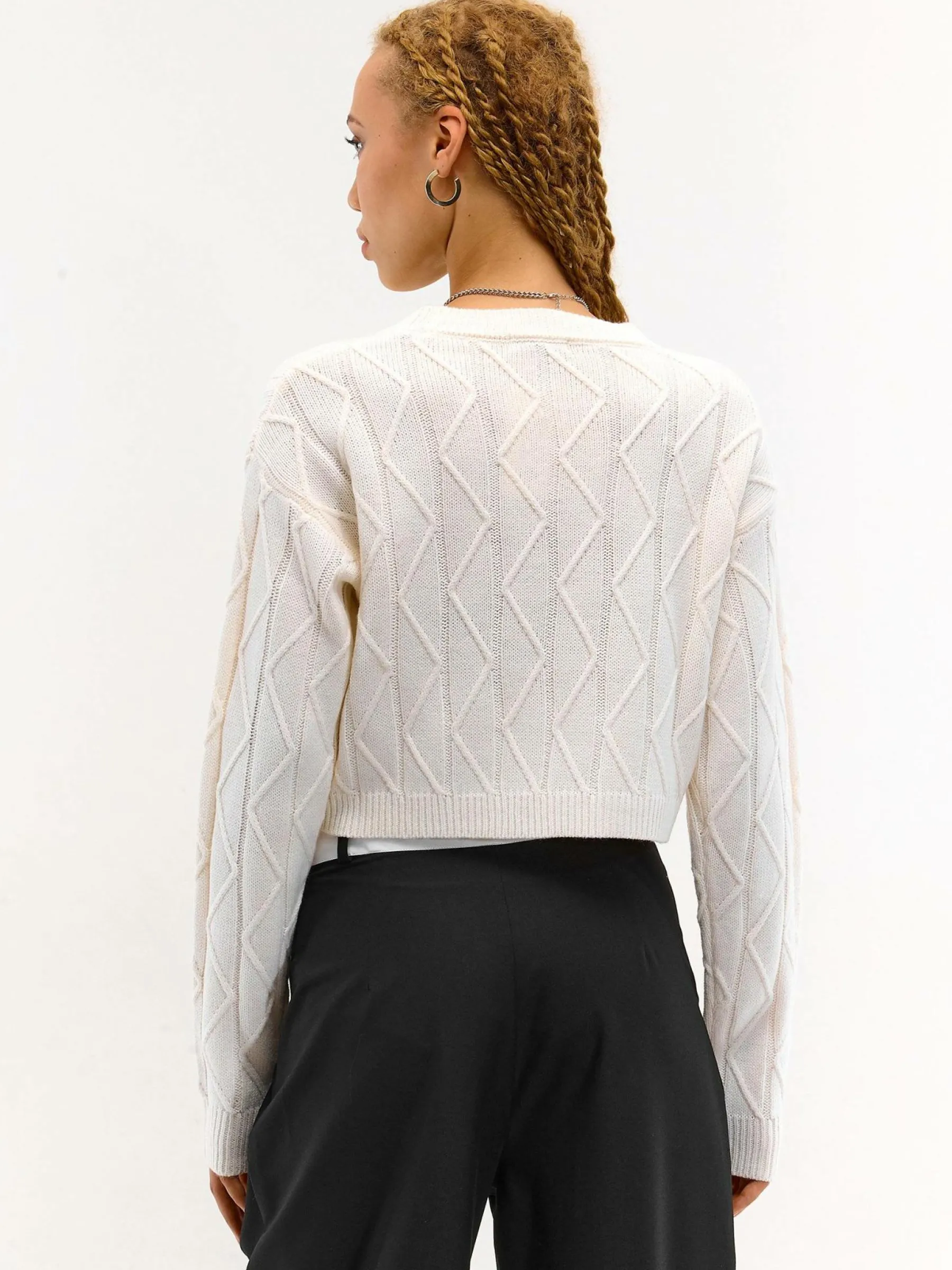 Kolor: beżowyKrój: regularTyp: swetryRekaw: długi rękawDługość: krótki topPattern style: strukturowane, pojedync…