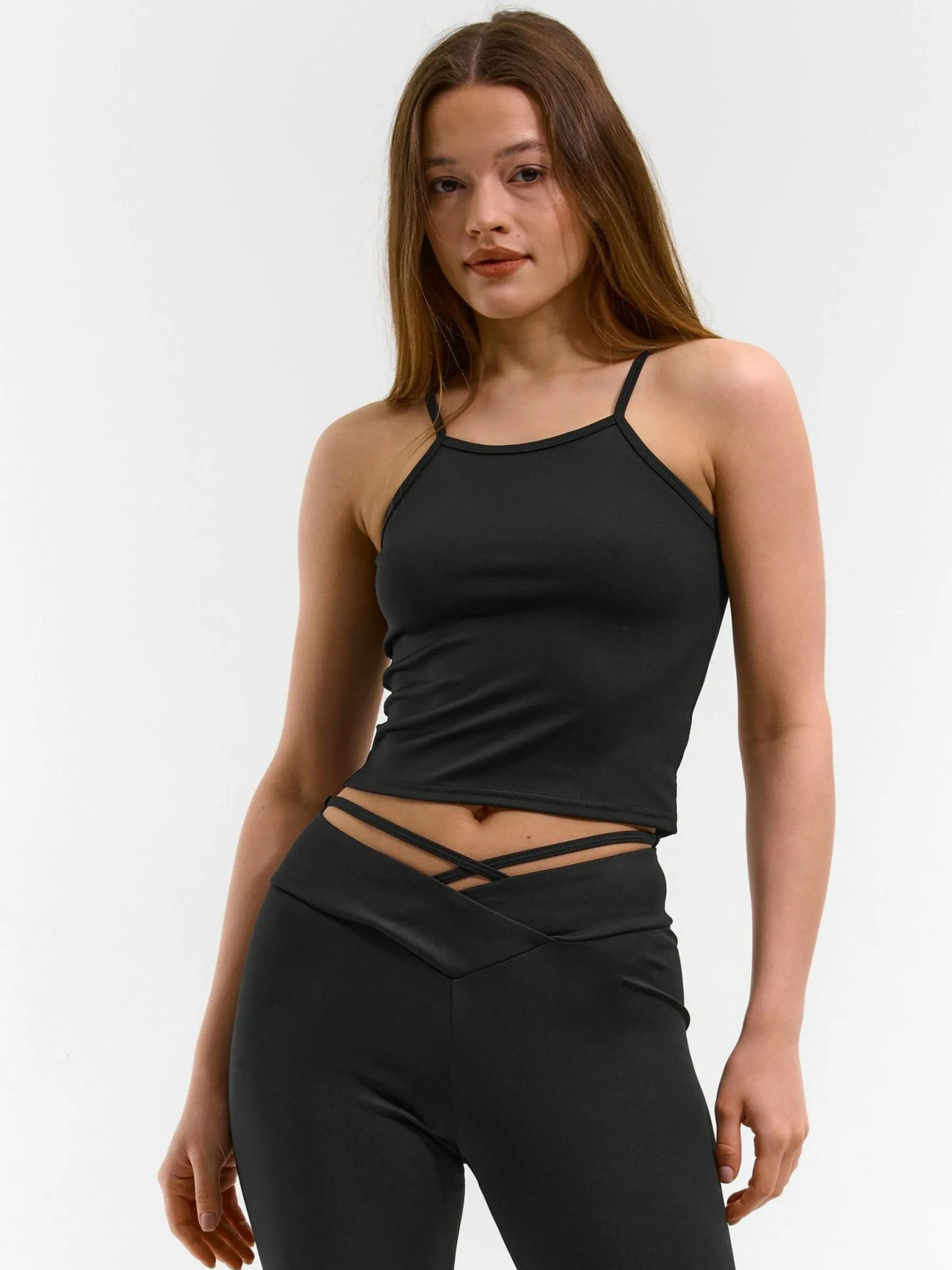 Kolor: czarnyKrój: regularTyp: podkoszulekRekaw: bez rękawówDługość: krótkiPattern style: pojedynczy kolorDetal: …