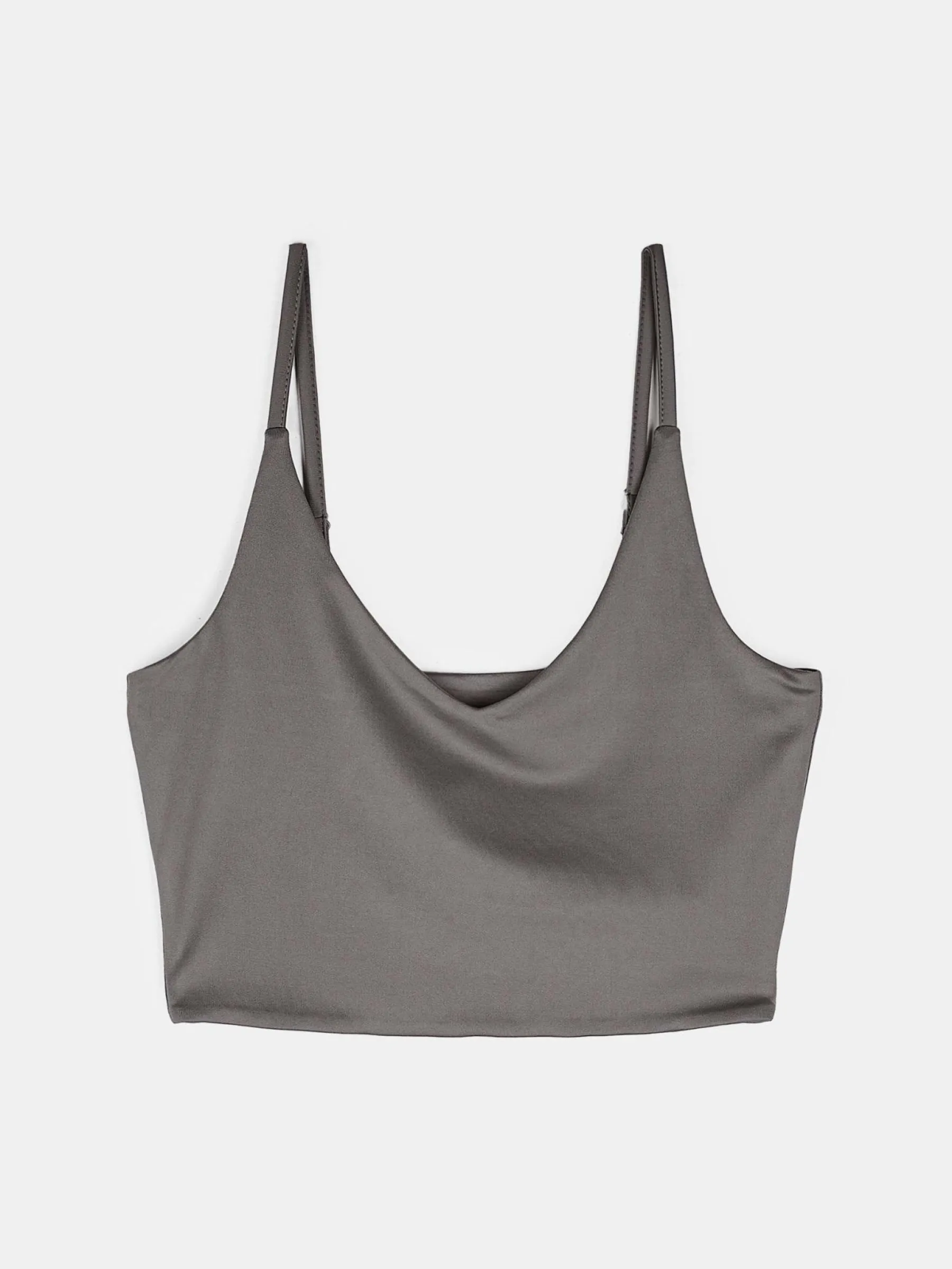 Kolor: szaryKrój: regularTyp: podkoszulekRekaw: bez rękawówDługość: krótki topPattern style: pojedynczy kolorDeta…