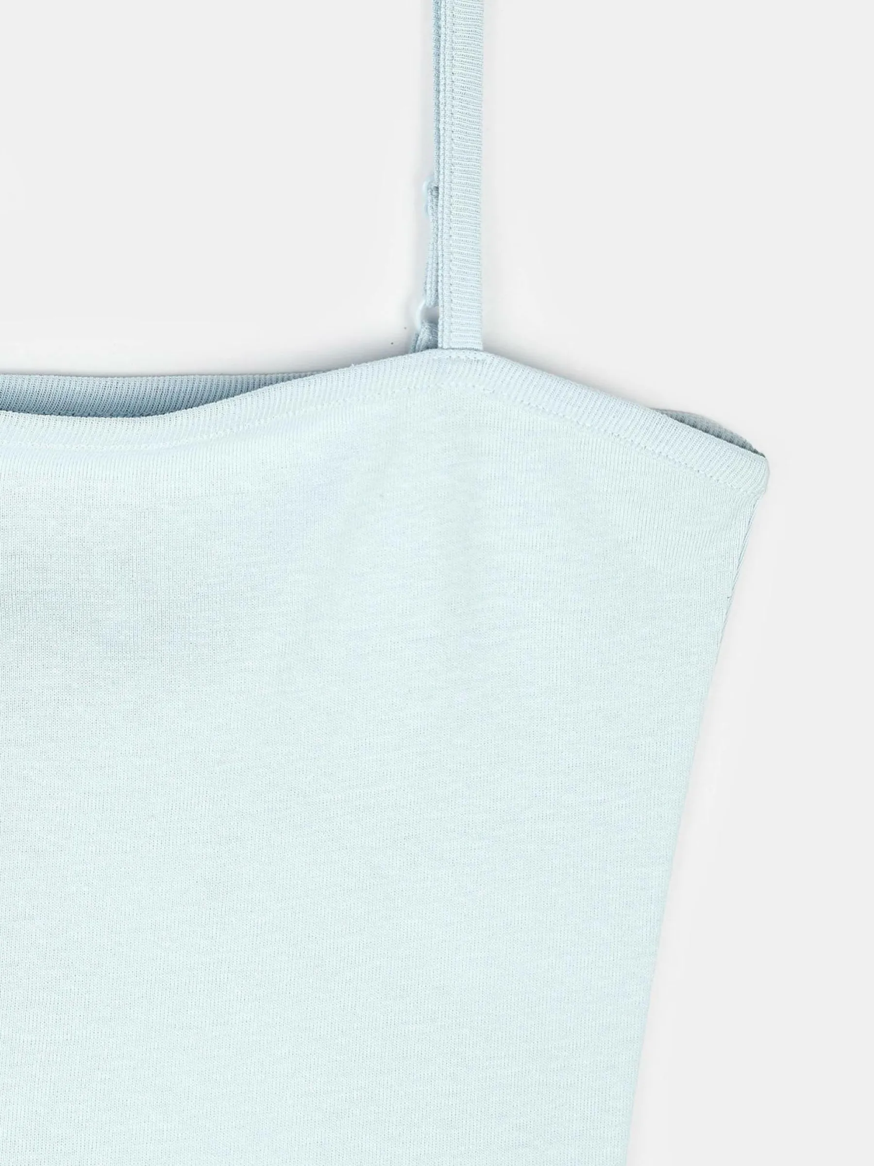 Kolor: niebieskiKrój: regularTyp: podkoszulekRekaw: bez rękawówDługość: krótki topPattern style: pojedynczy kolor…