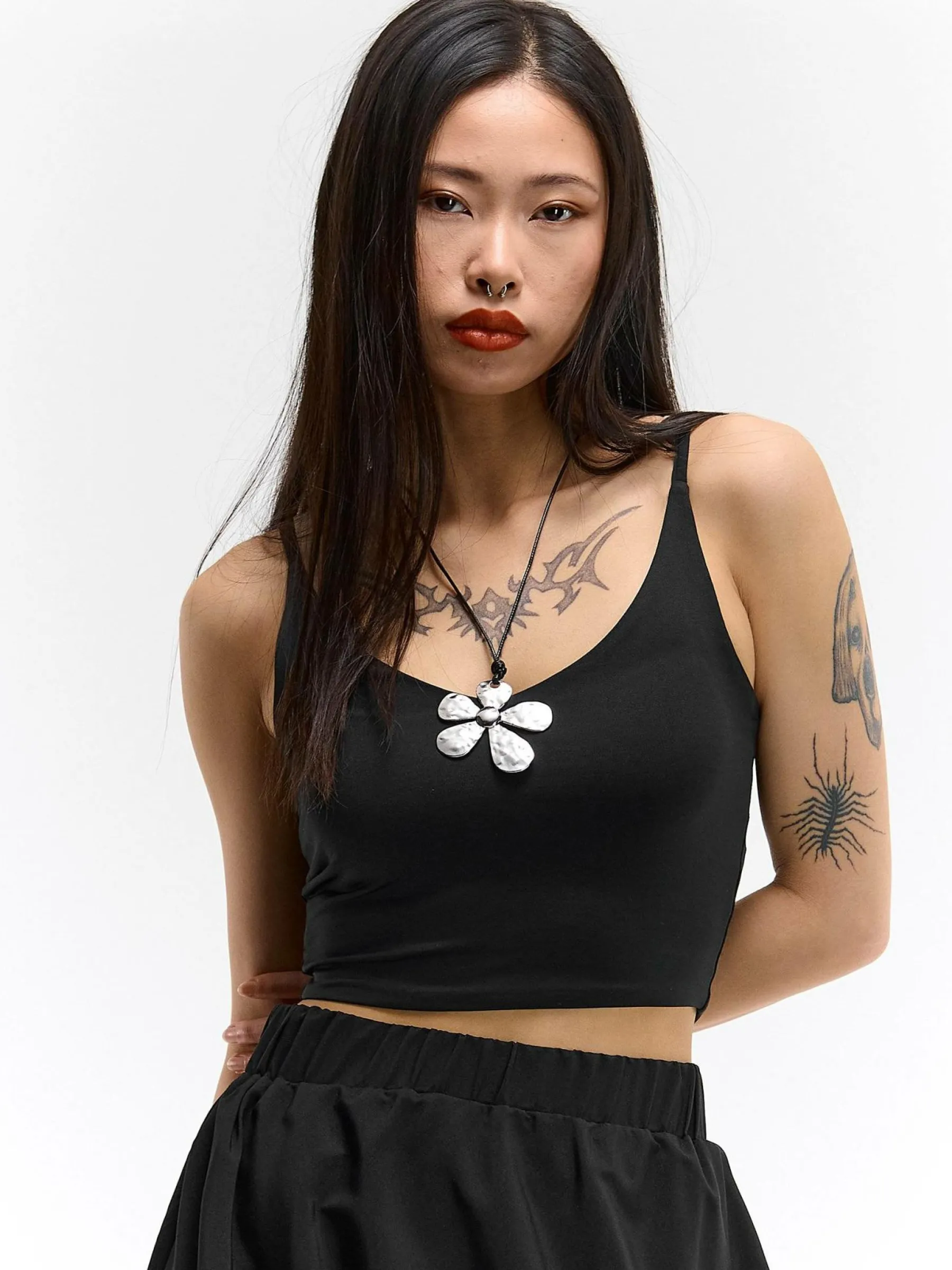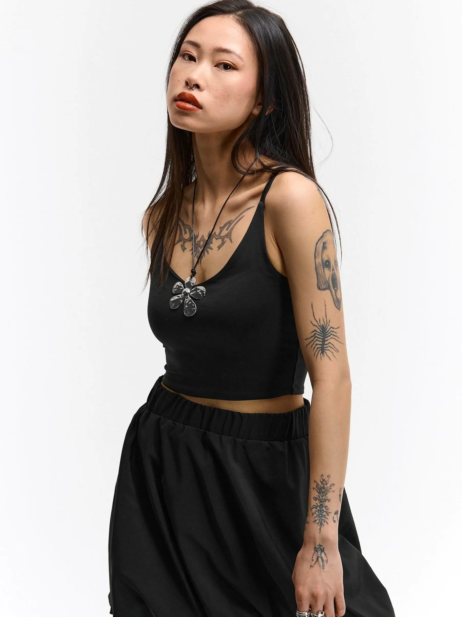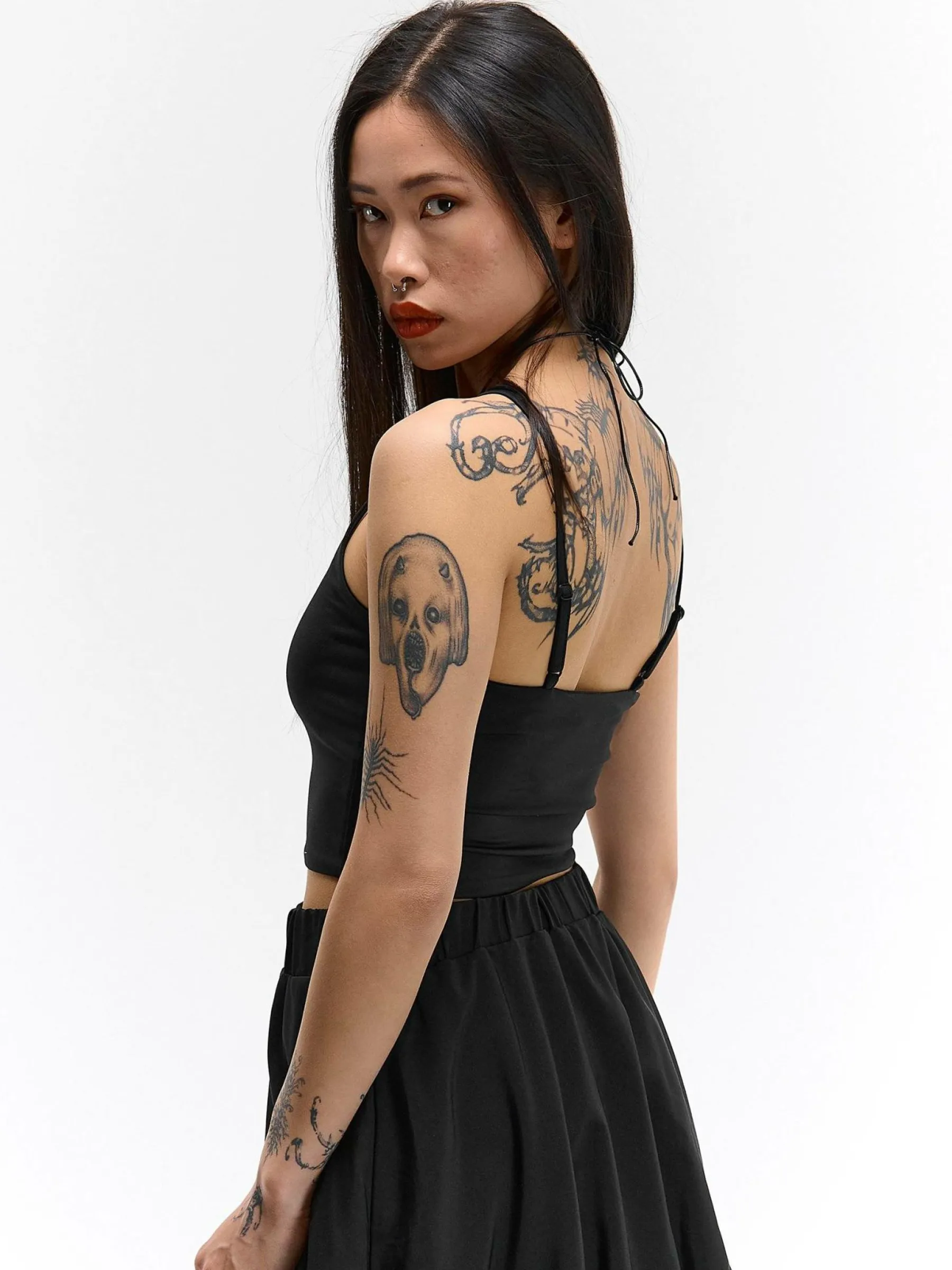 Kolor: czarnyKrój: regularTyp: podkoszulek, topRekaw: bez rękawówDługość: krótki topPattern style: pojedynczy kol…
