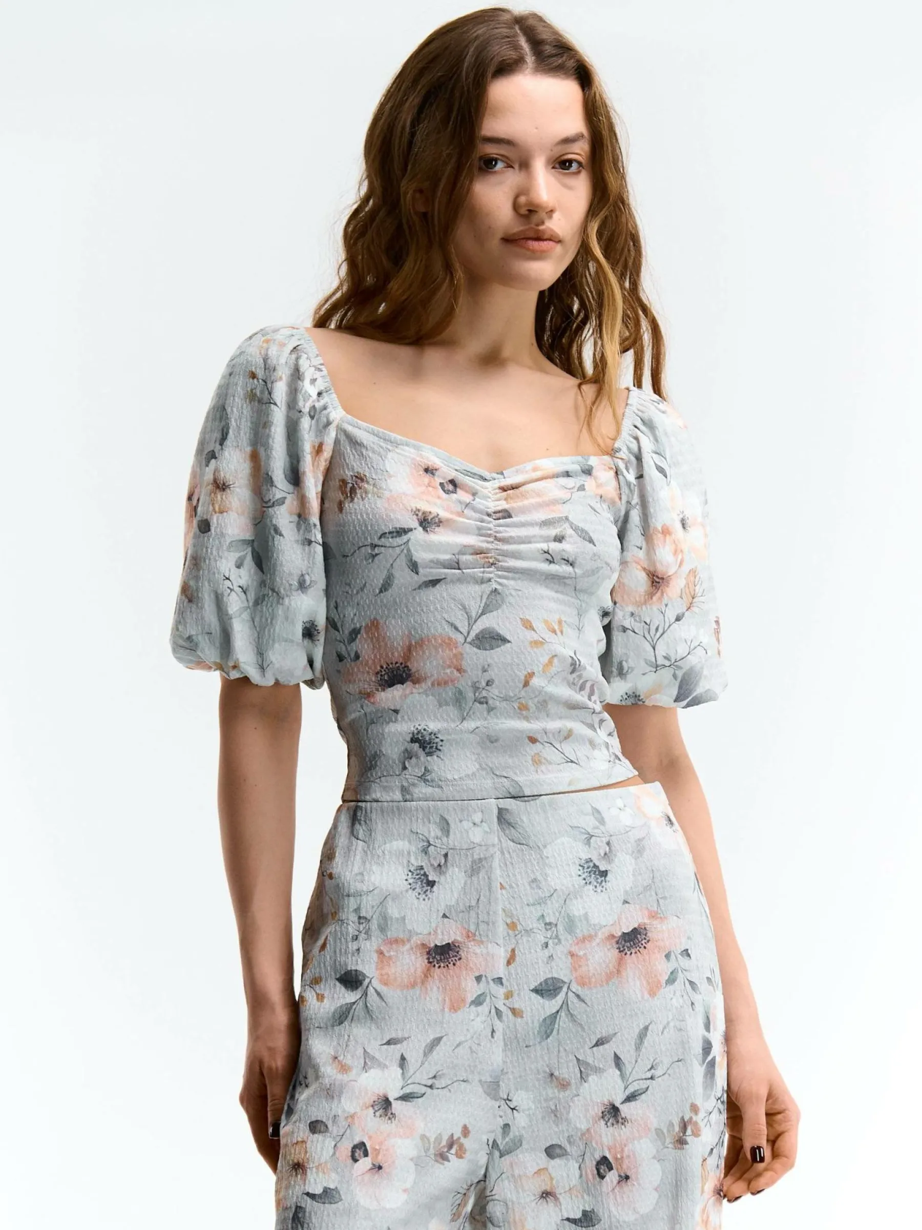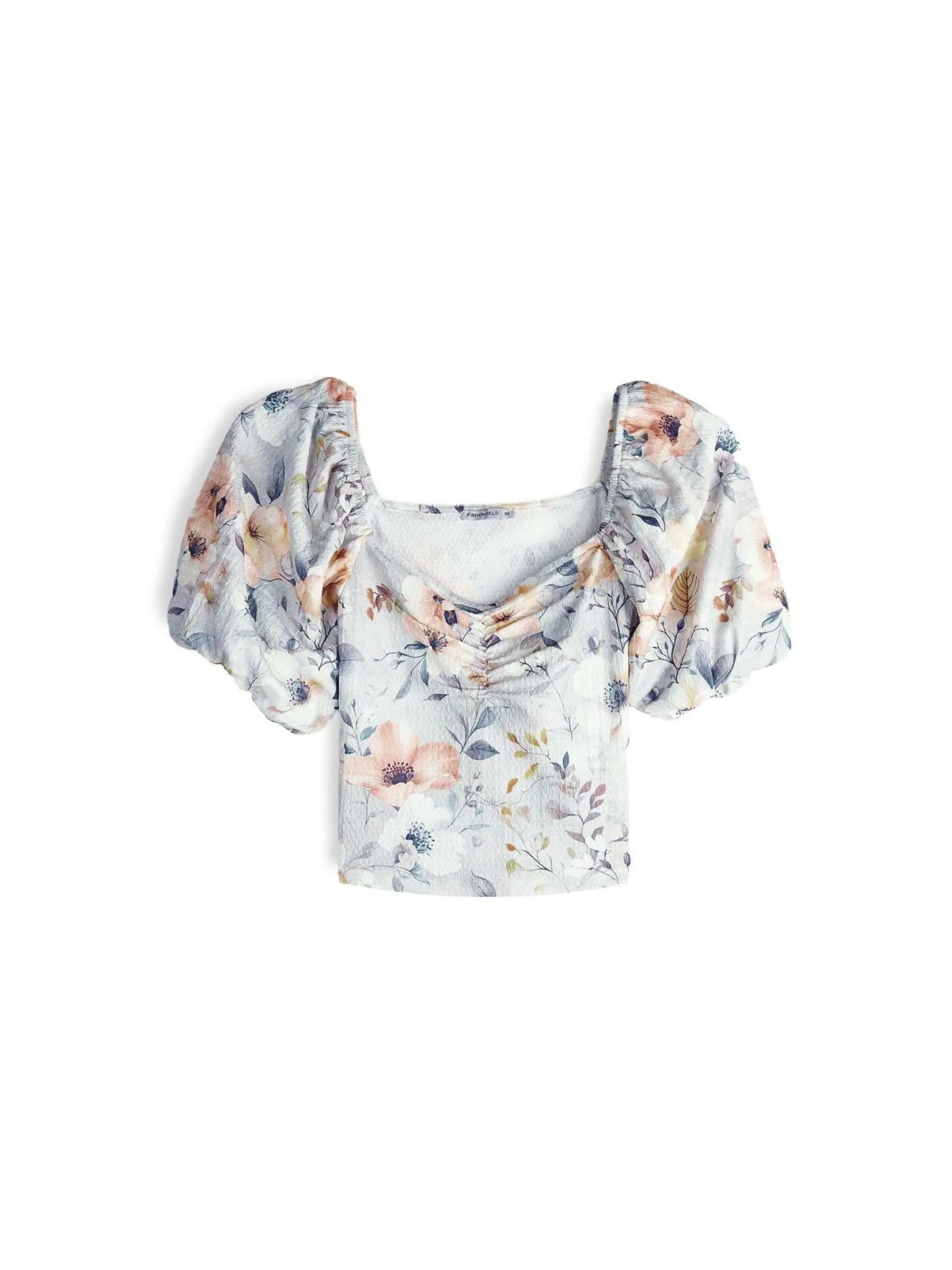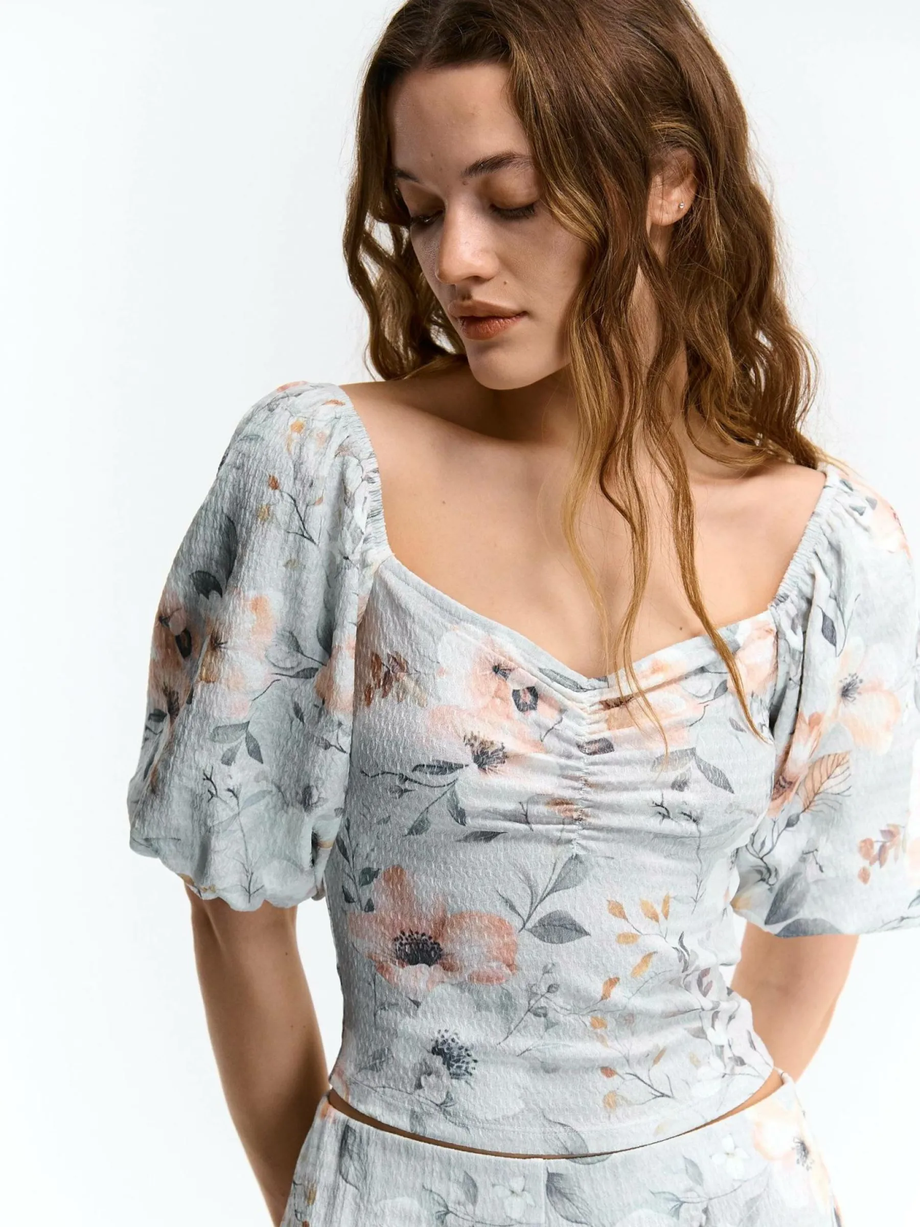 Kolor: zielonyKrój: z marszczeniemTyp: topRekaw: krótki rękawDługość: krótki topPattern style: kwiatoweDetal: nad…