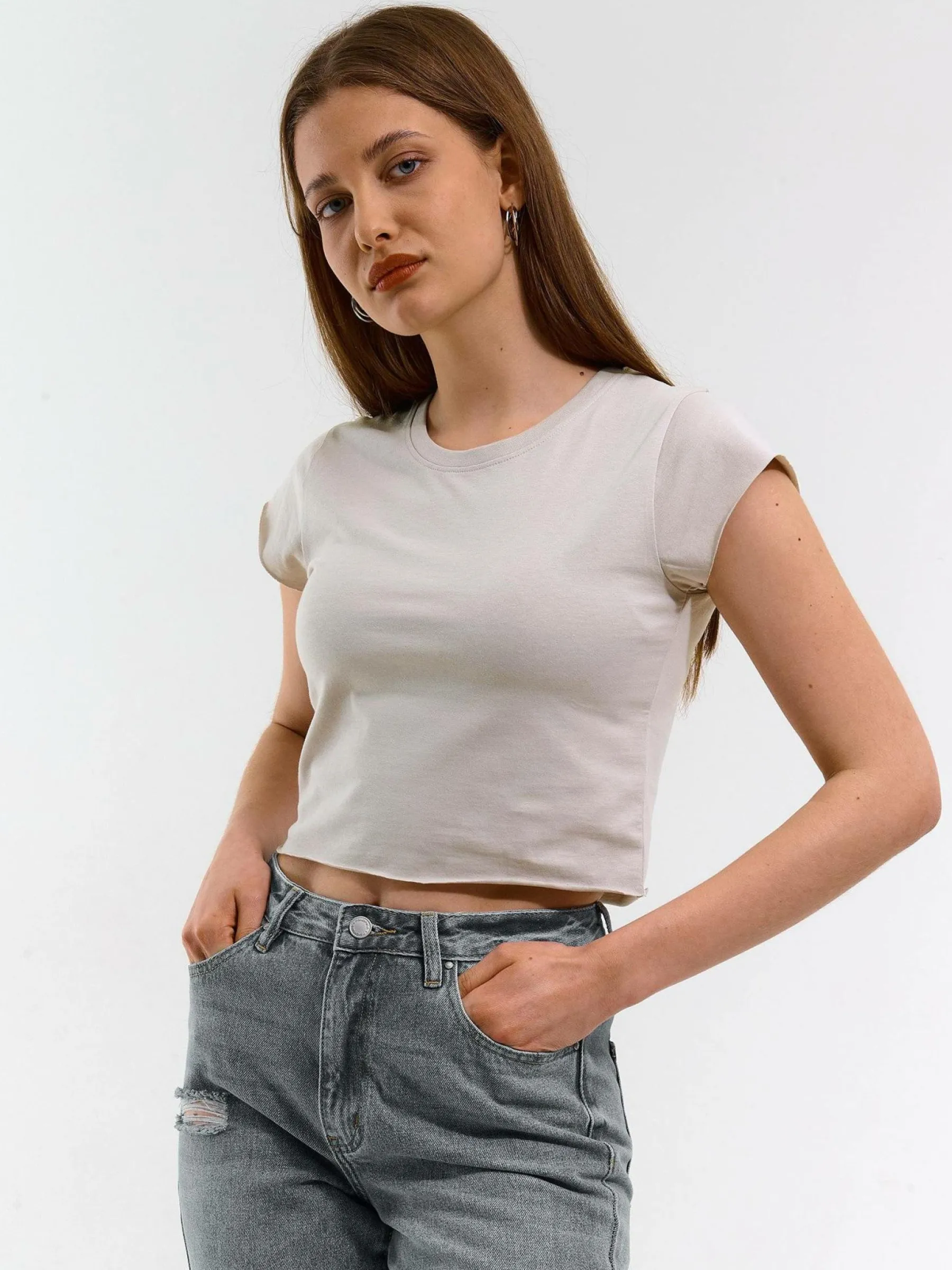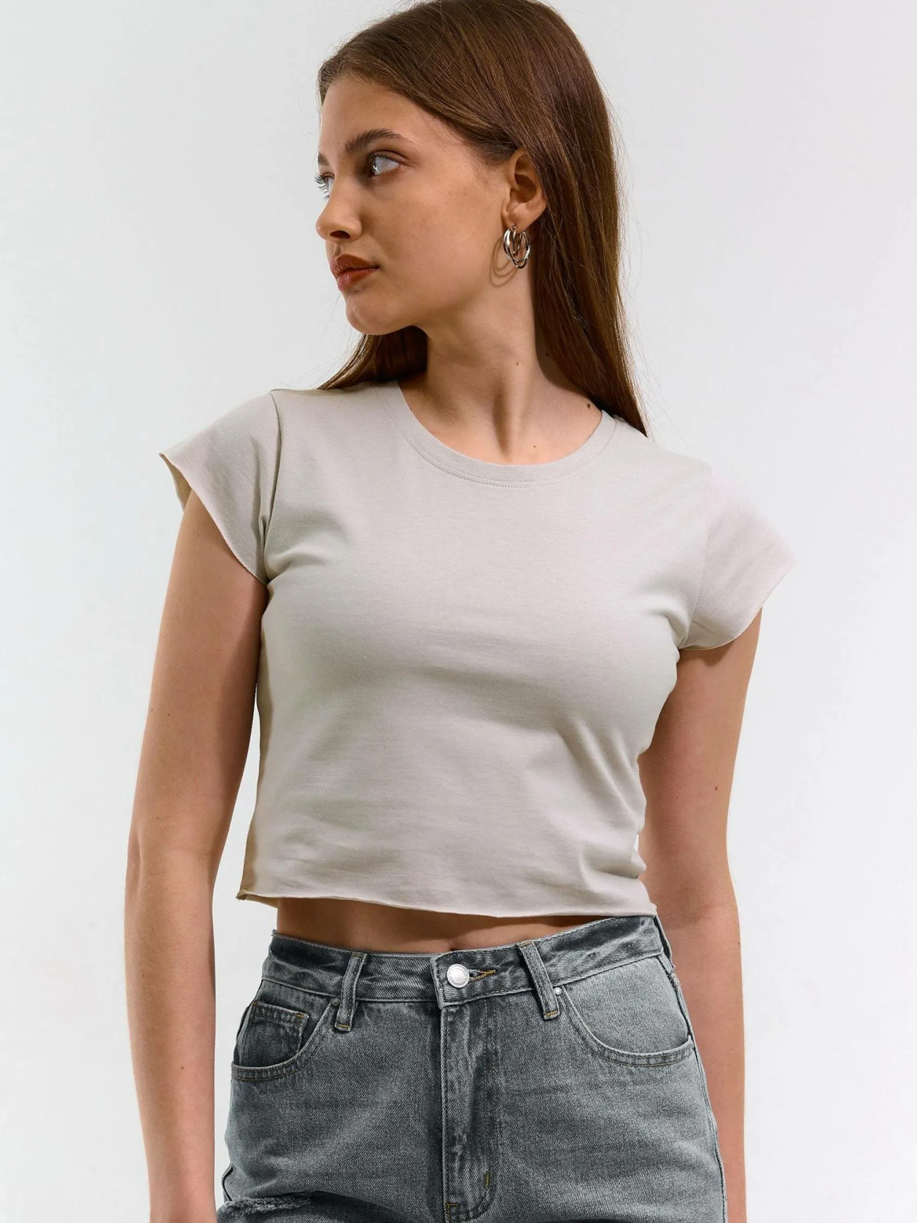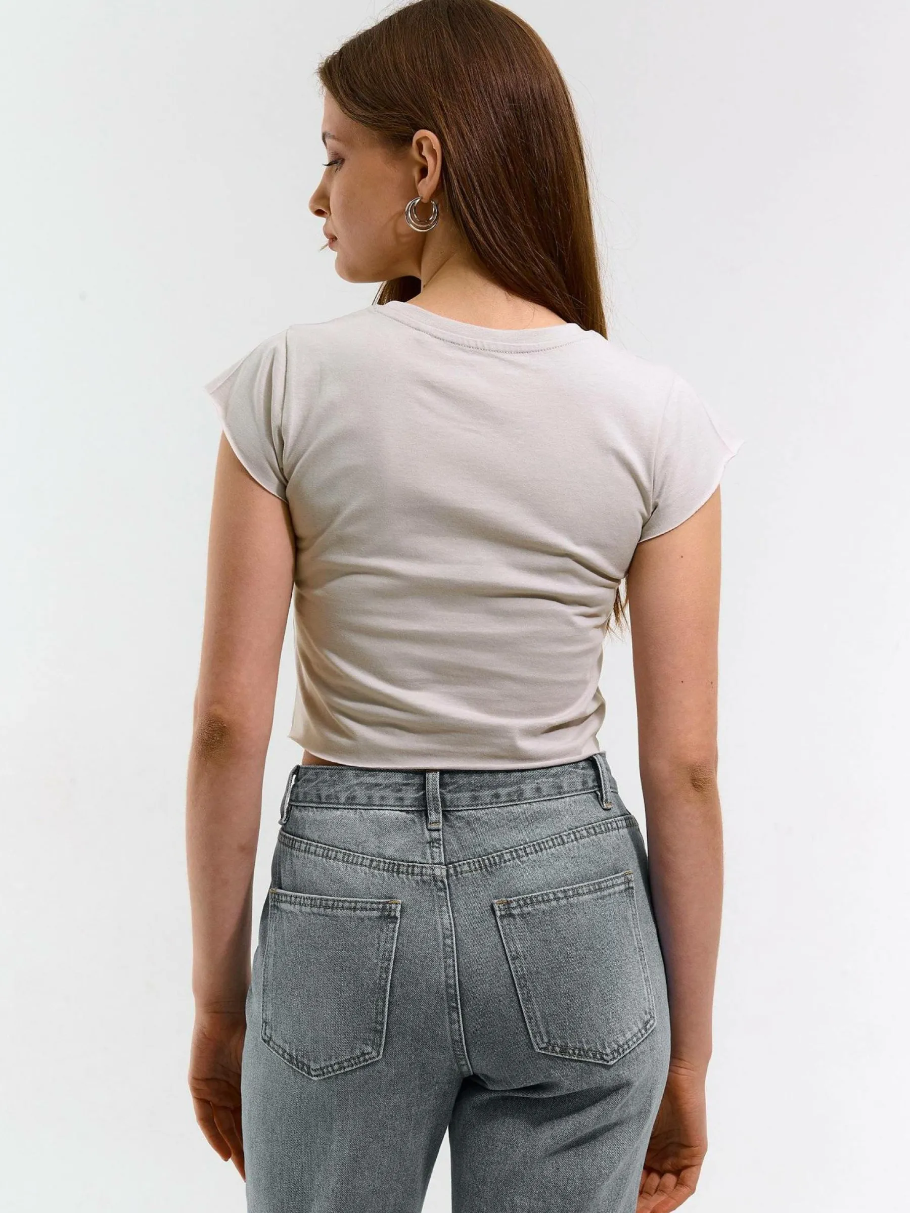 Kolor: szaryKrój: regularTyp: topRekaw: krótki rękawDługość: krótki topPattern style: pojedynczy kolorDetal: nad …