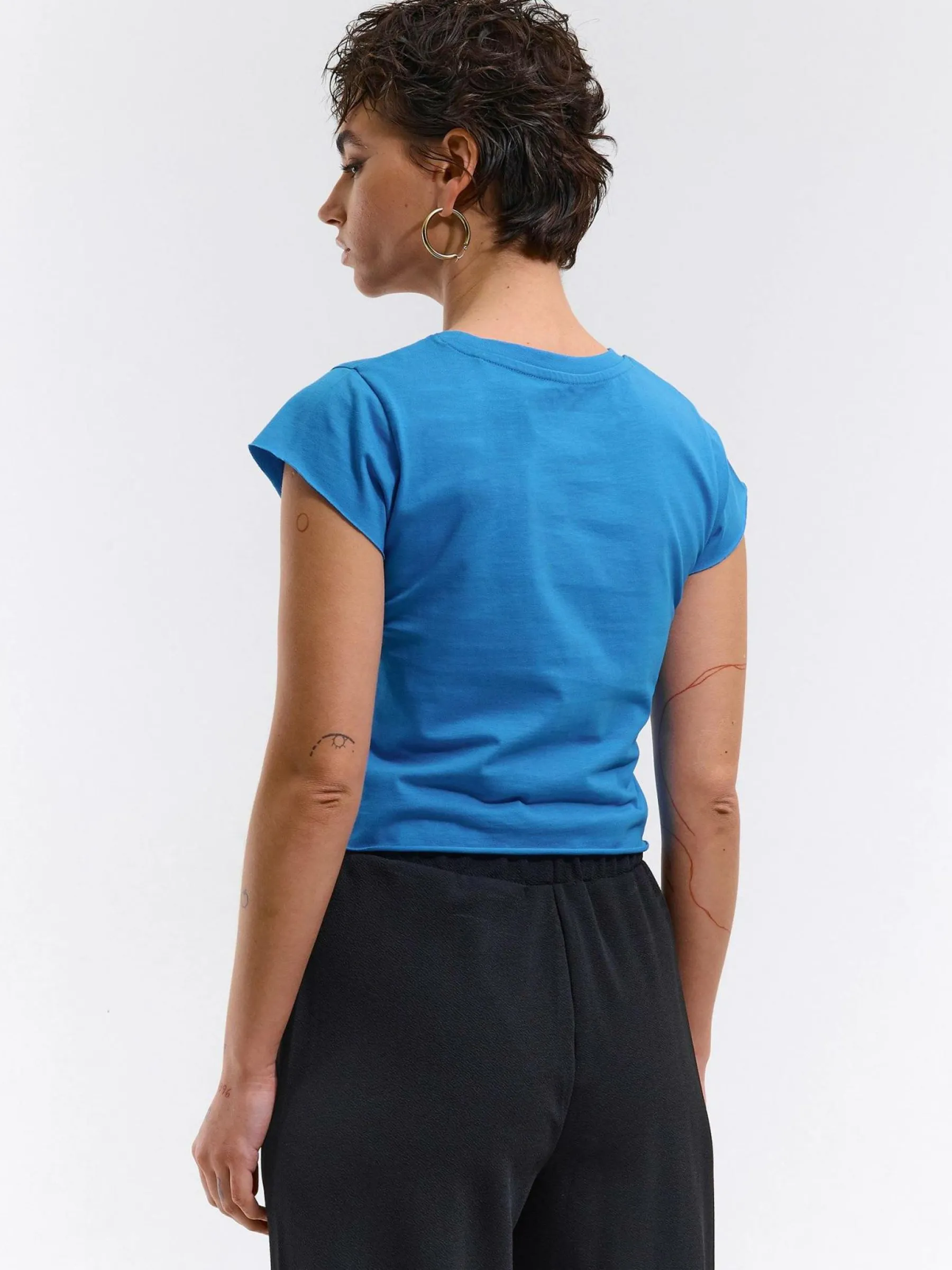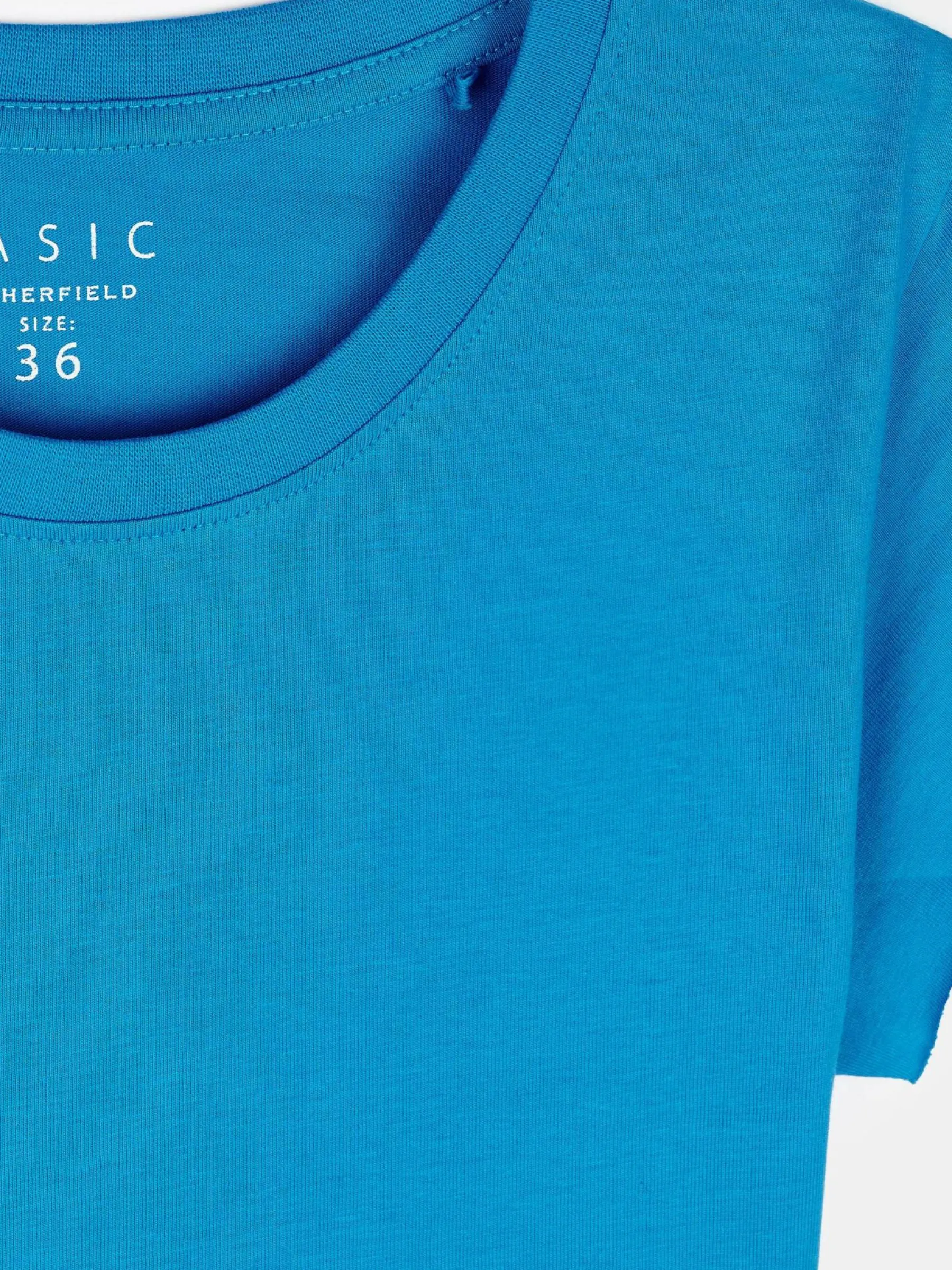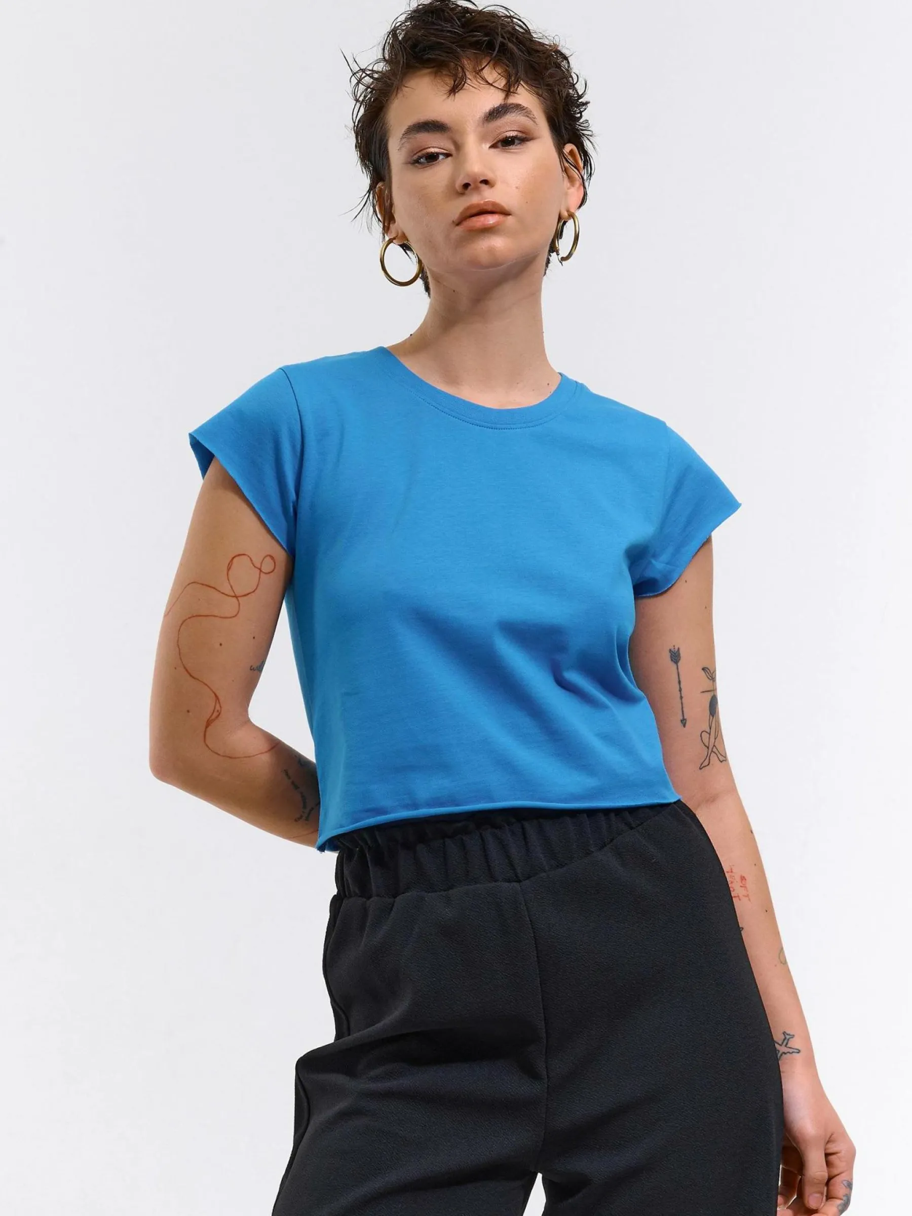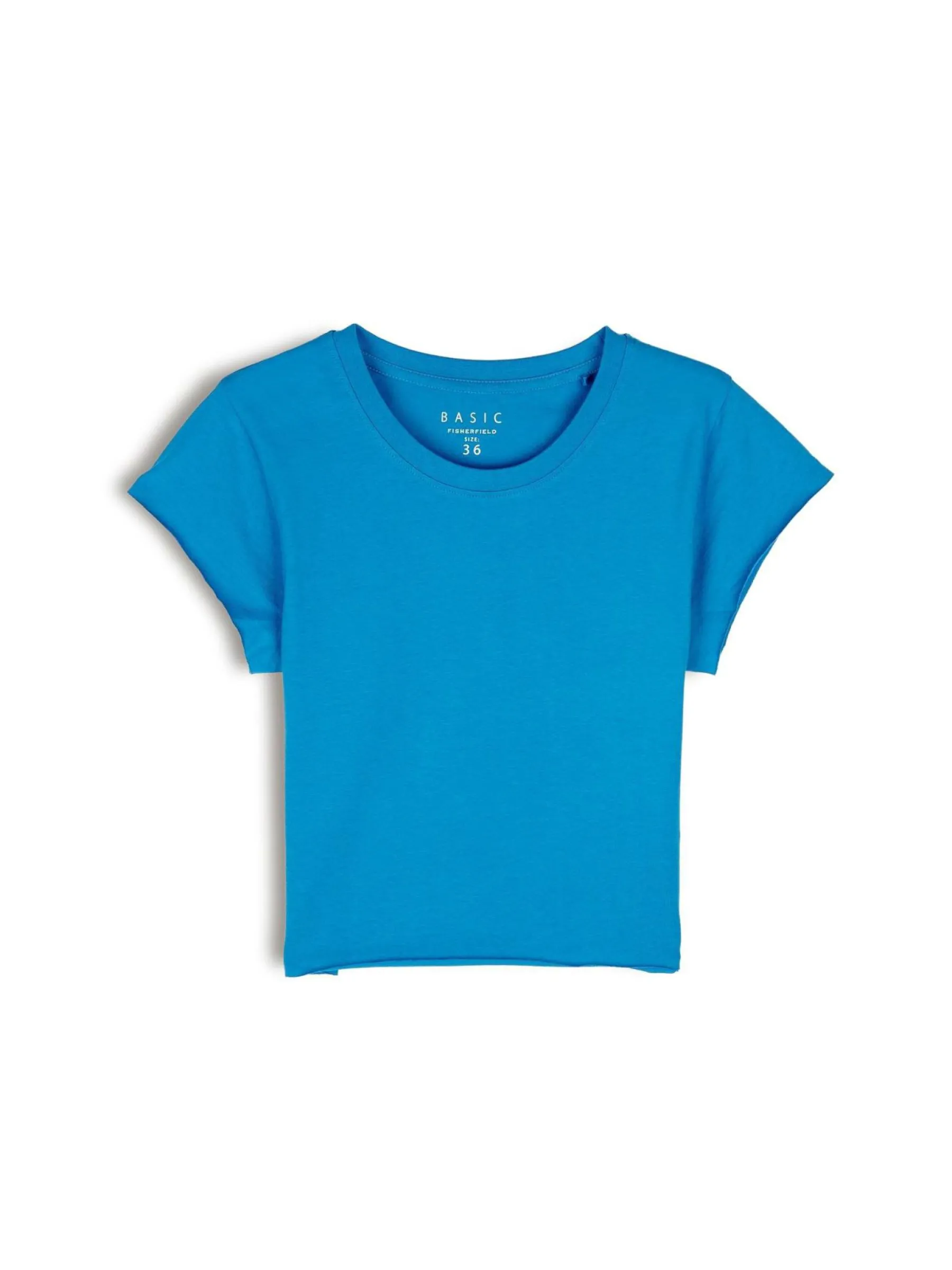 Kolor: niebieskiKrój: regularTyp: topRekaw: krótki rękawDługość: krótki topPattern style: pojedynczy kolorDetal: …