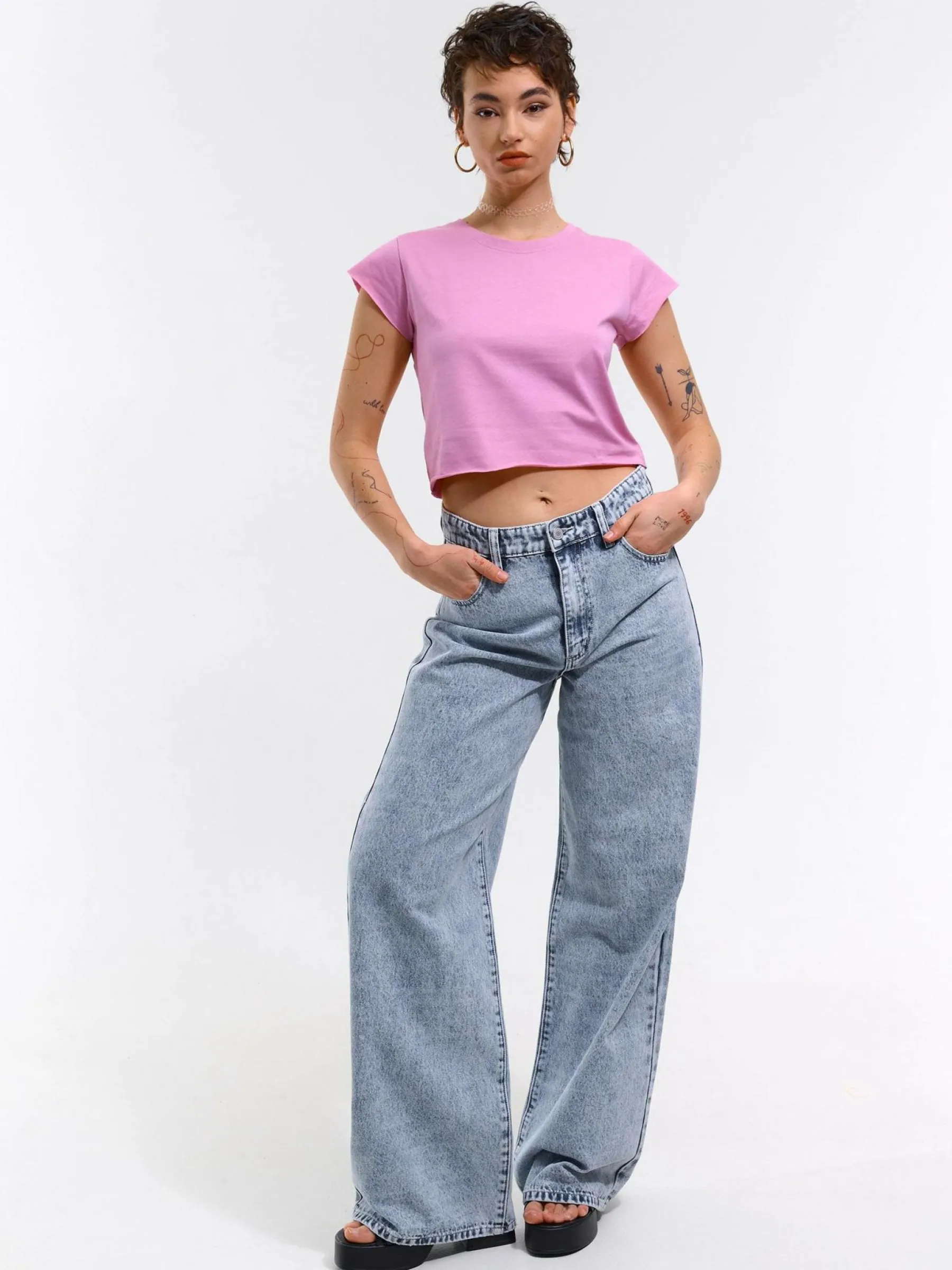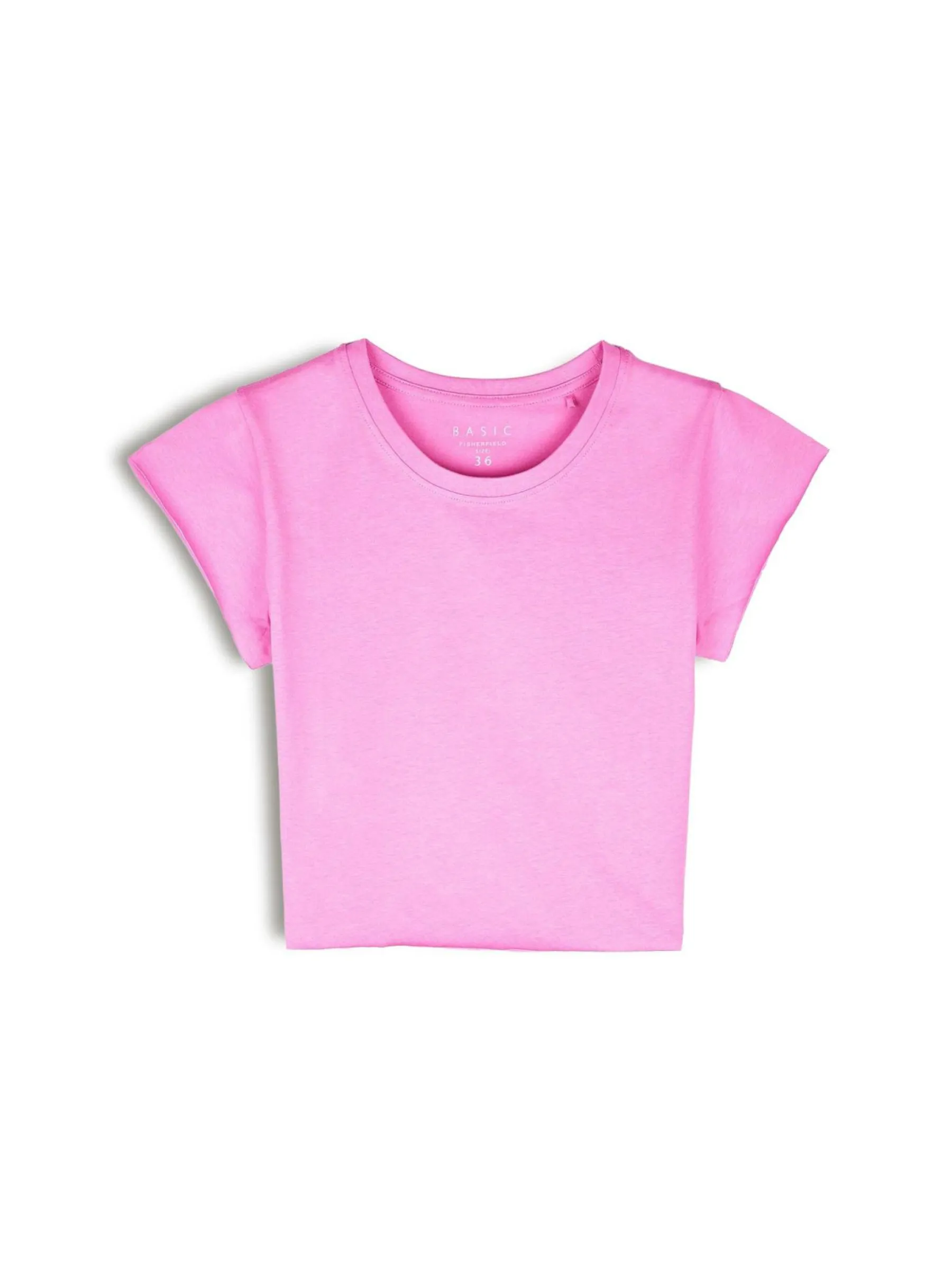 Kolor: różowyKrój: regularTyp: topRekaw: krótki rękawDługość: krótki topPattern style: pojedynczy kolorDetal: n…