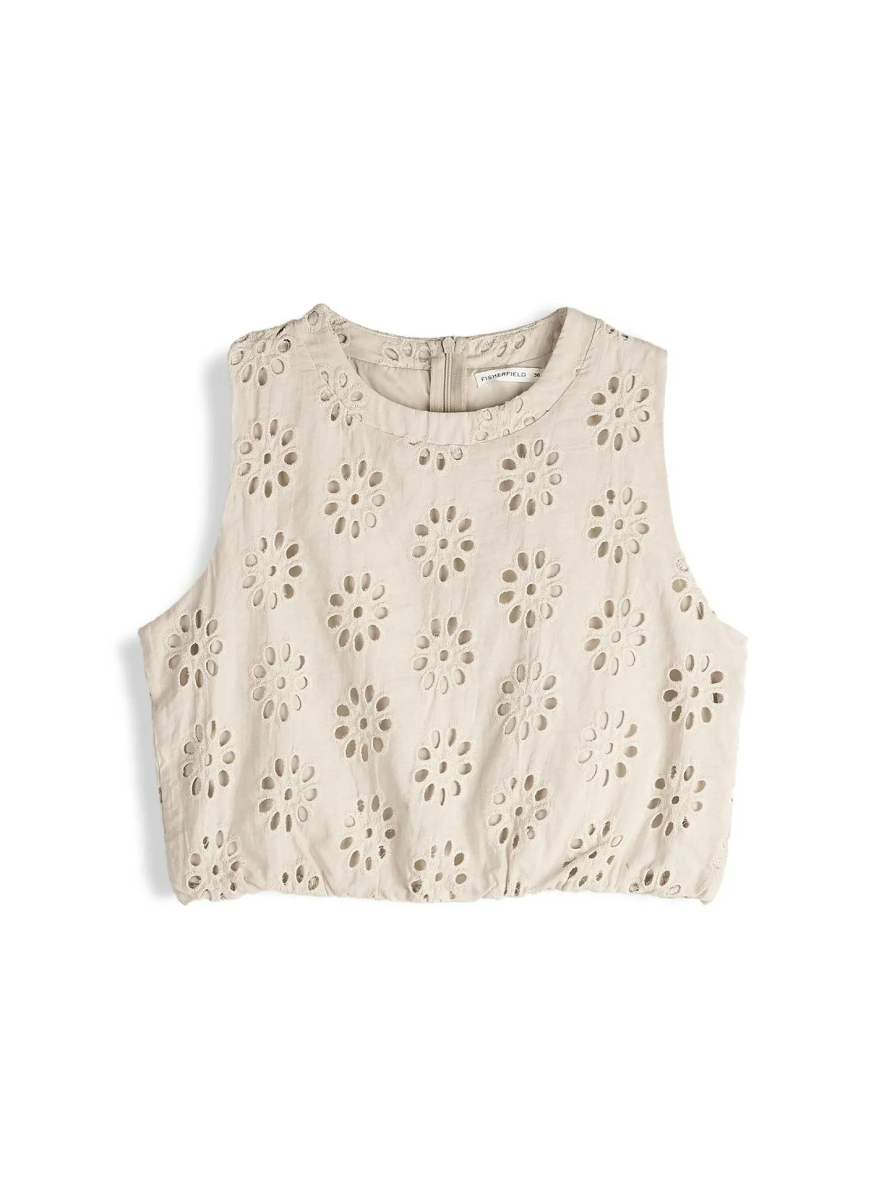 Kolor: beżowyKrój: regularTyp: topRekaw: bez rękawówDługość: krótki topPattern style: pojedynczy kolor, haftowan…