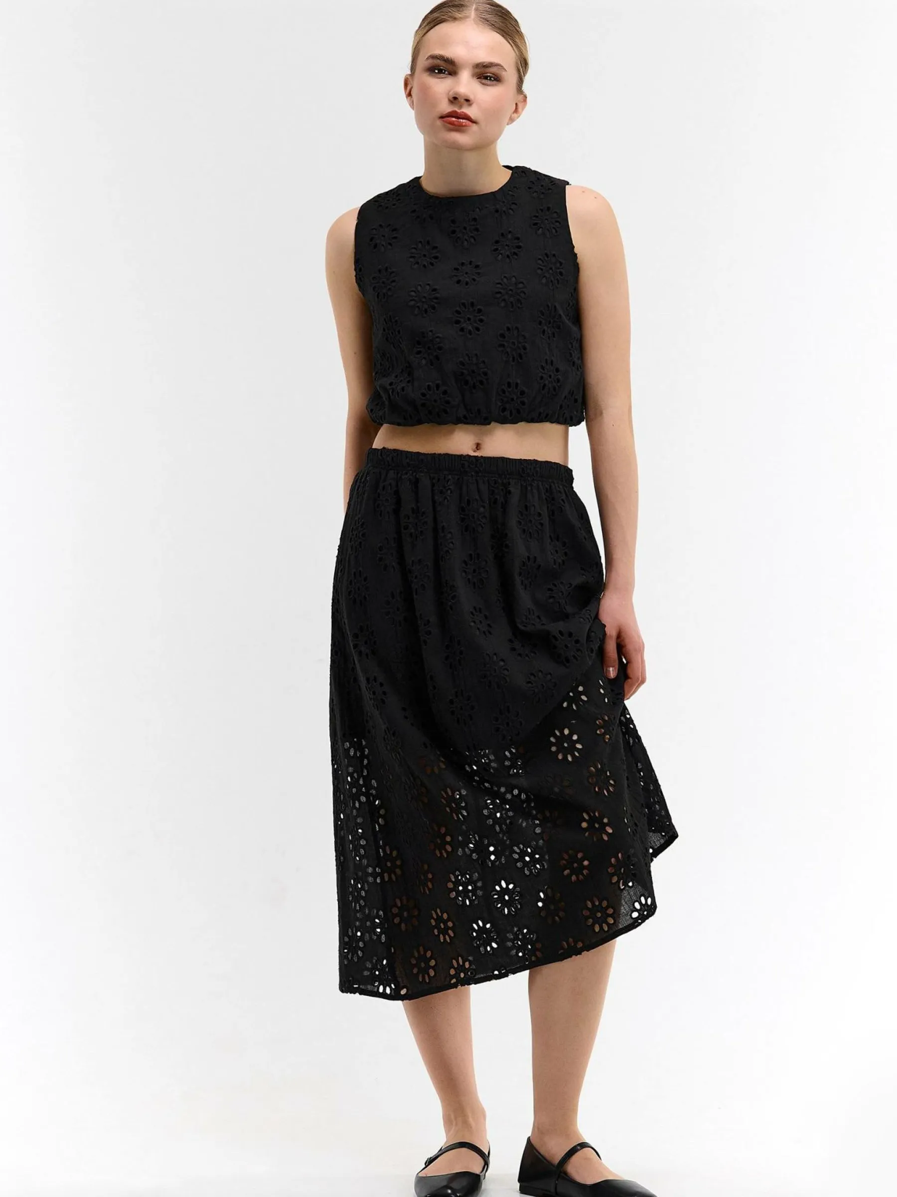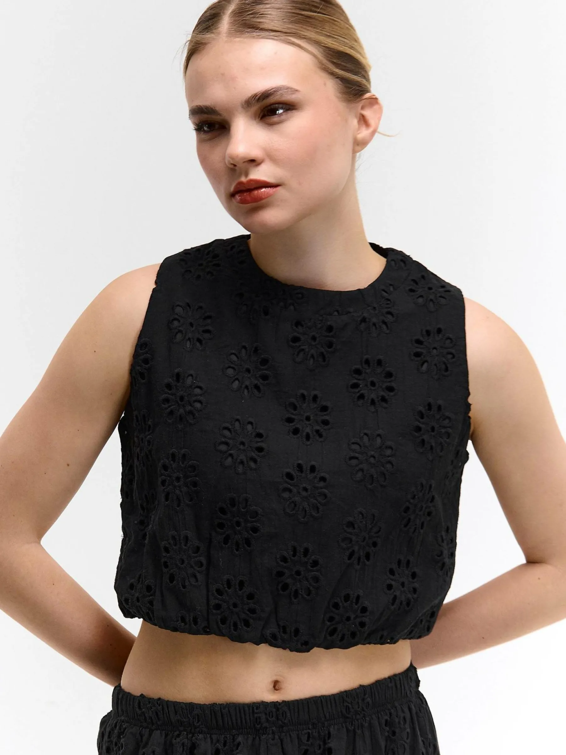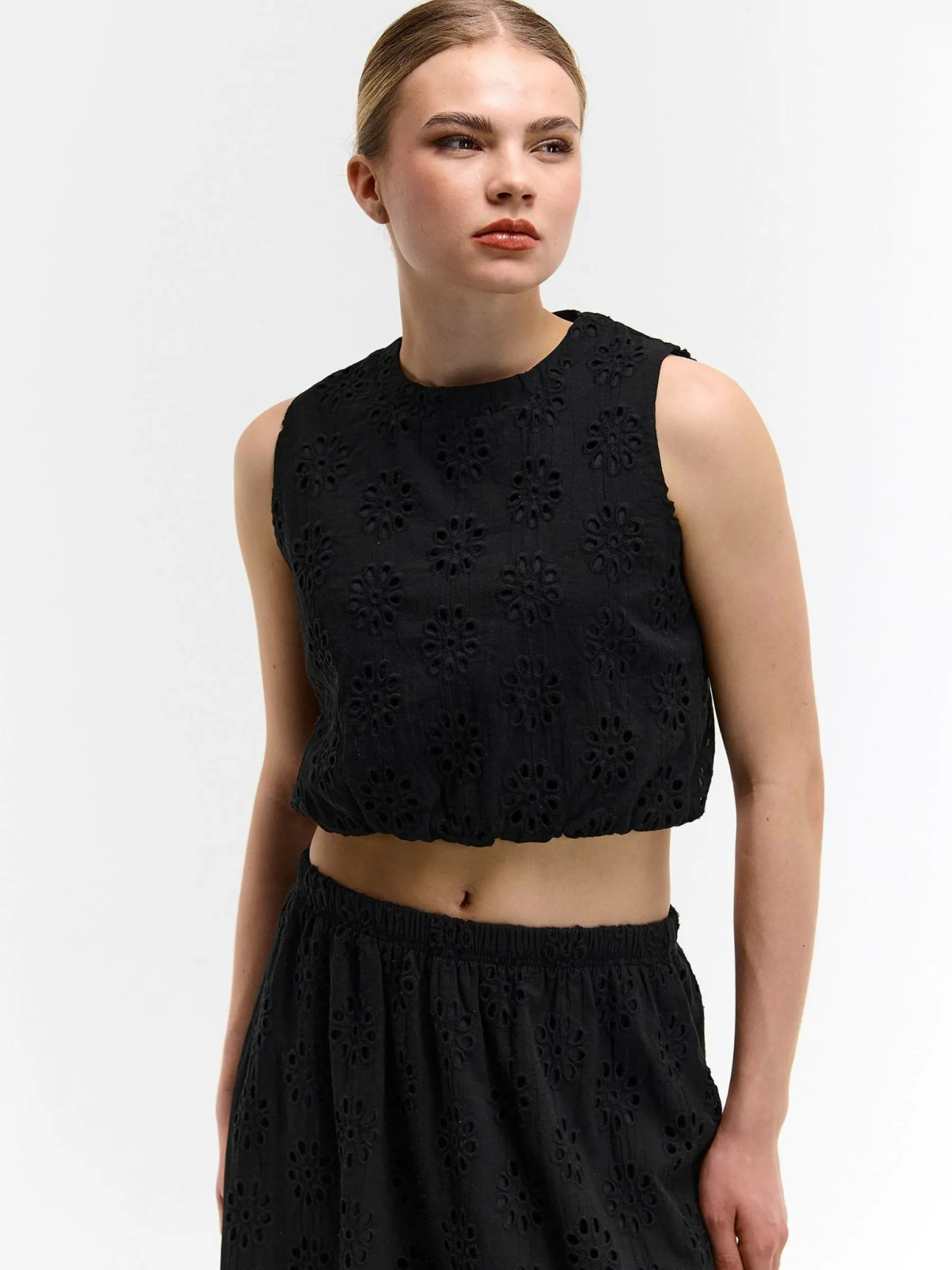 Kolor: czarnyKrój: regularTyp: topRekaw: krótki rękawDługość: krótki topPattern style: pojedynczy kolor, haftowan…