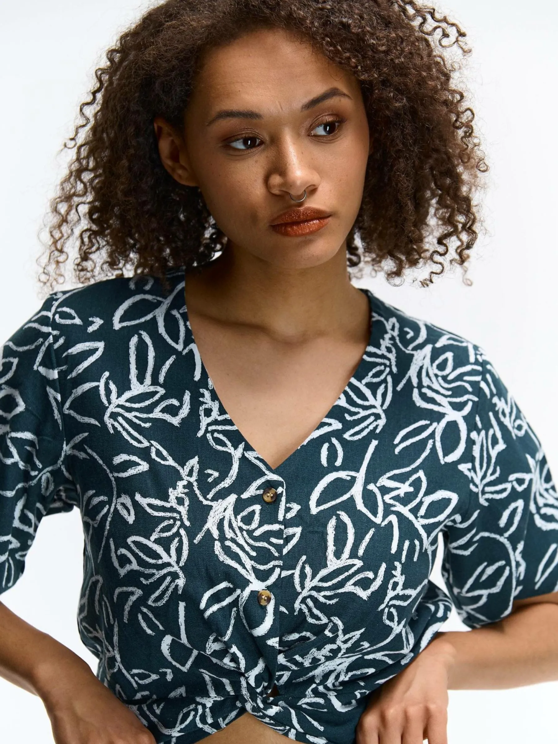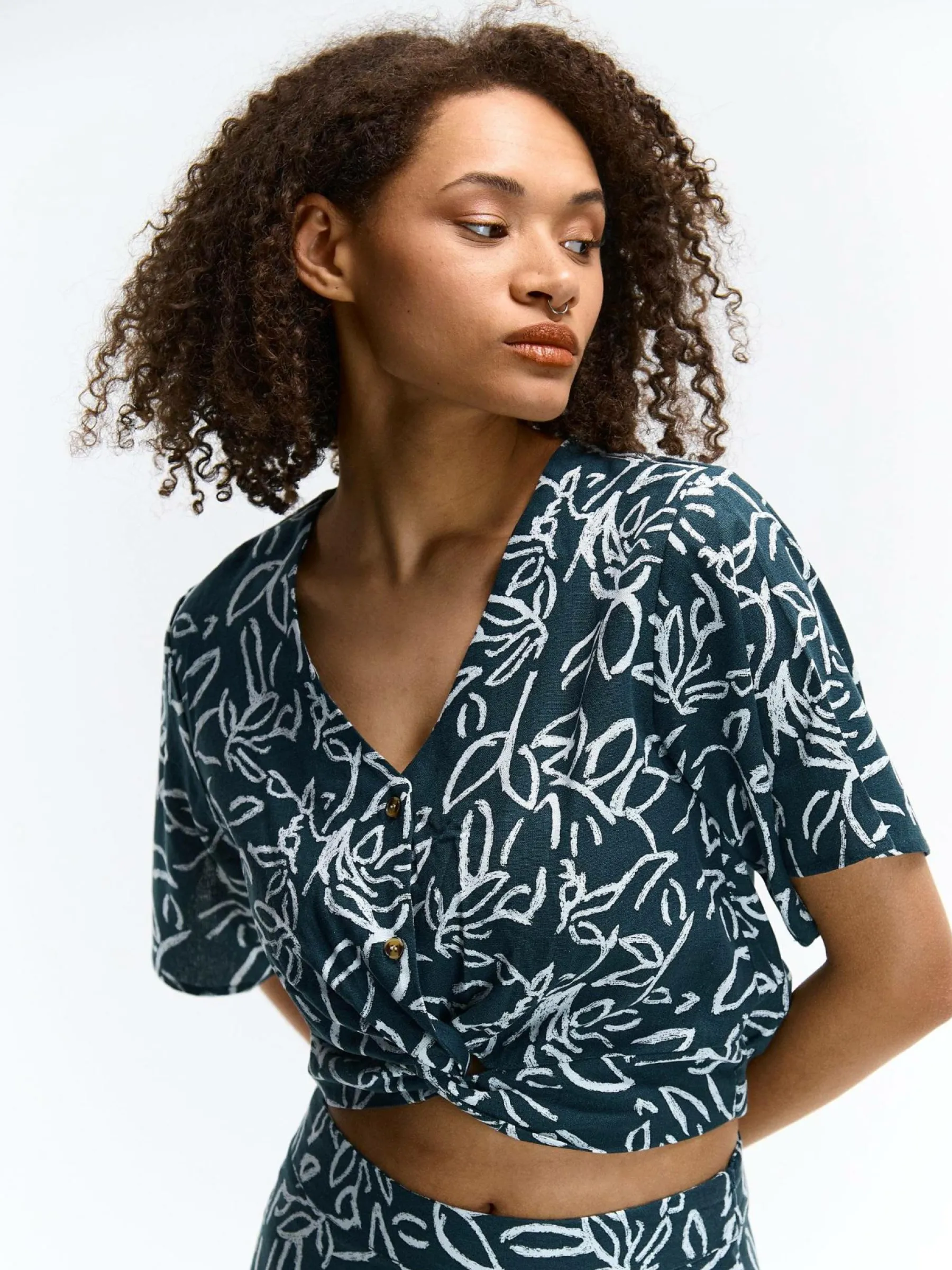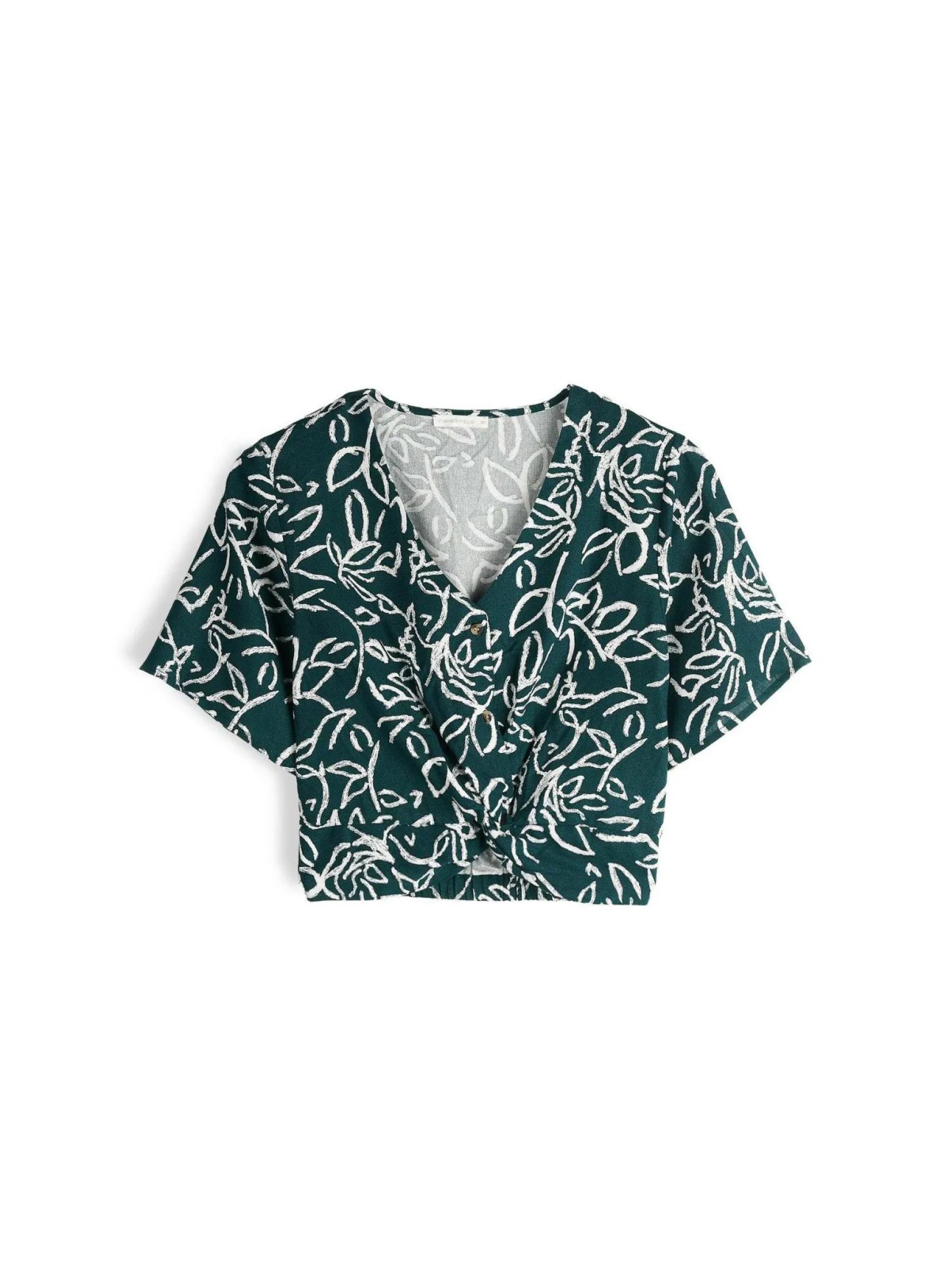 Kolor: zielonyKrój: z marszczeniemTyp: topRekaw: krótki rękawDługość: krótki topPattern style: wzorzysteDetal: z …