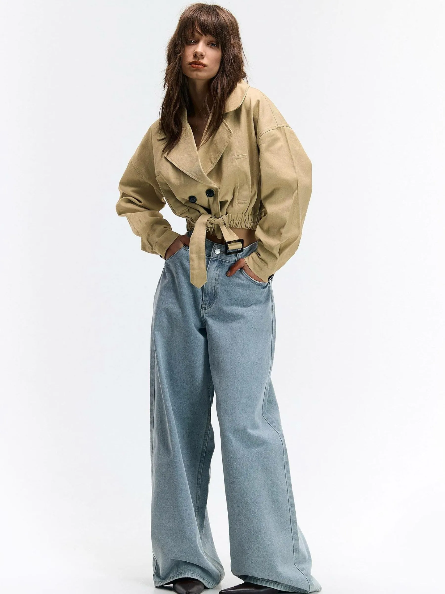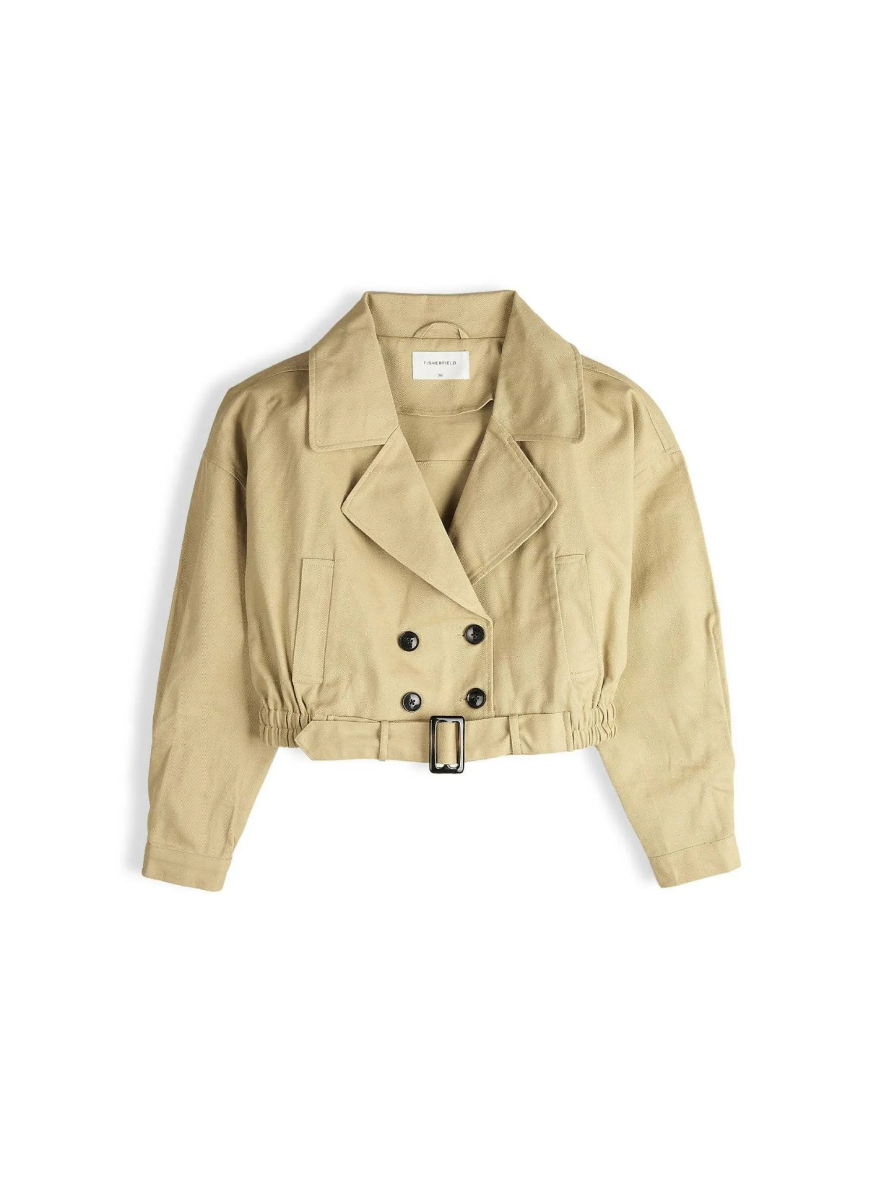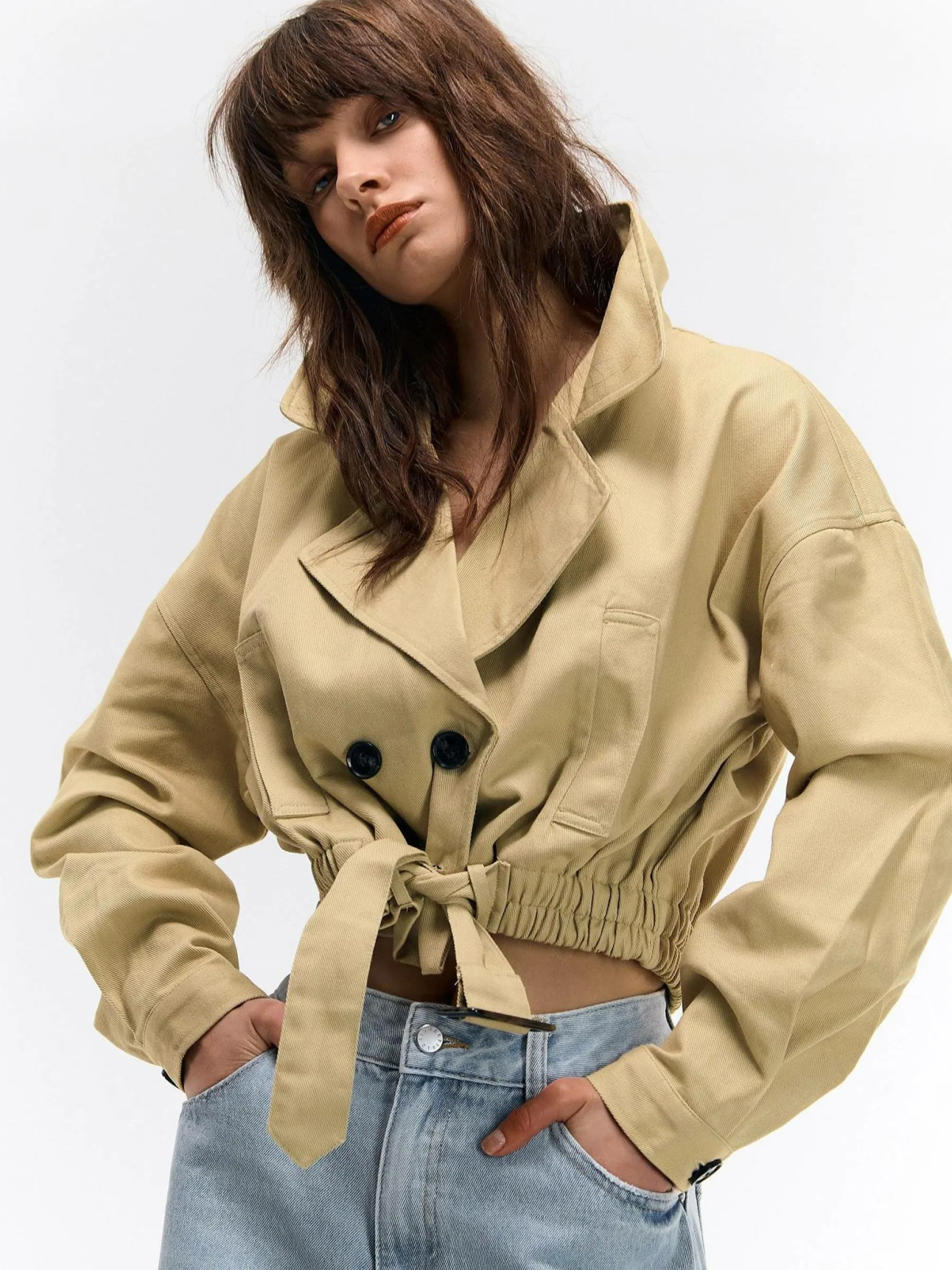 Kolor: beżowyKrój: podstawowyTyp: trenczRekaw: długi rękawDługość: krótki topPattern style: pojedynczy kolorDeta…
