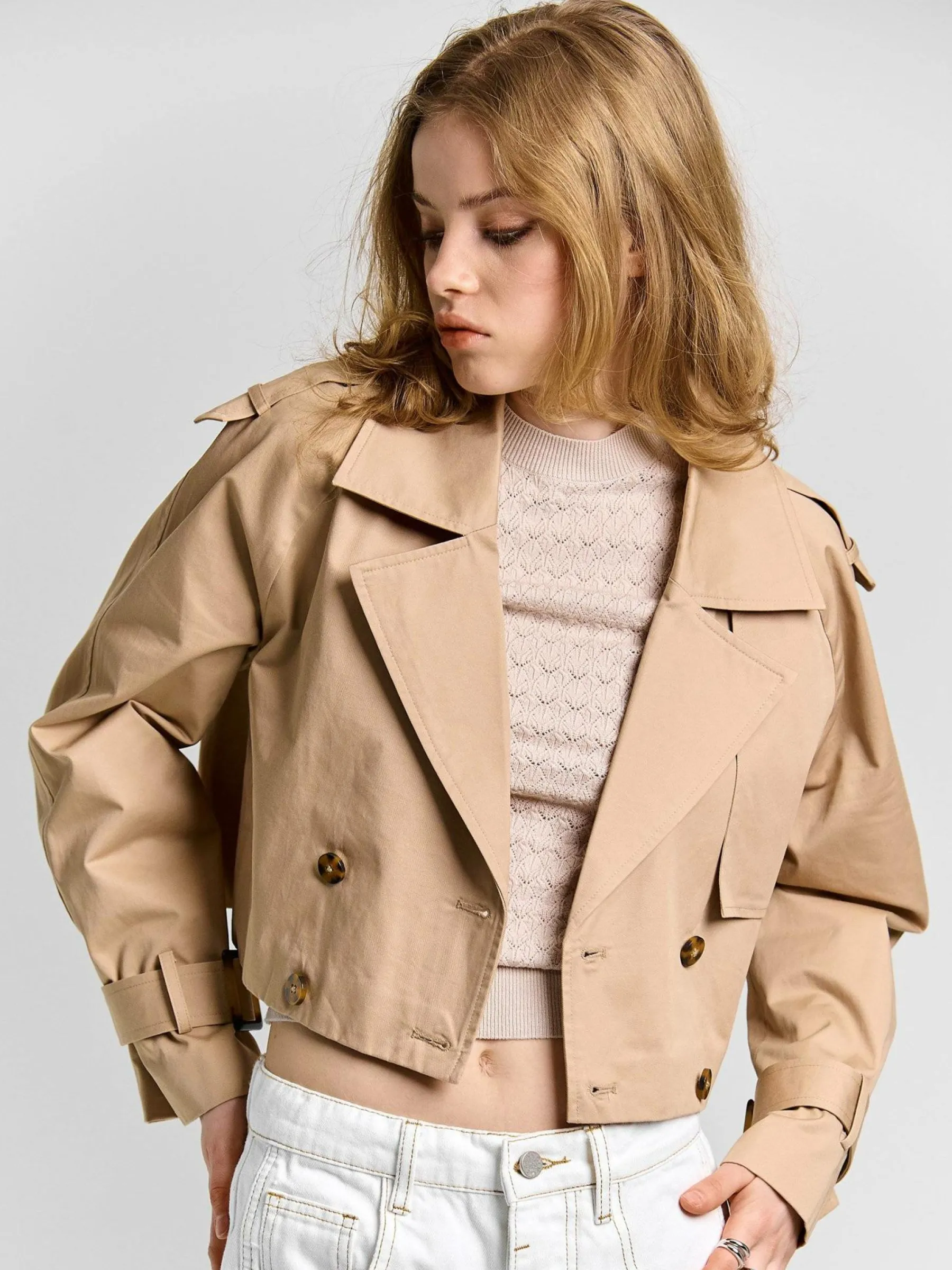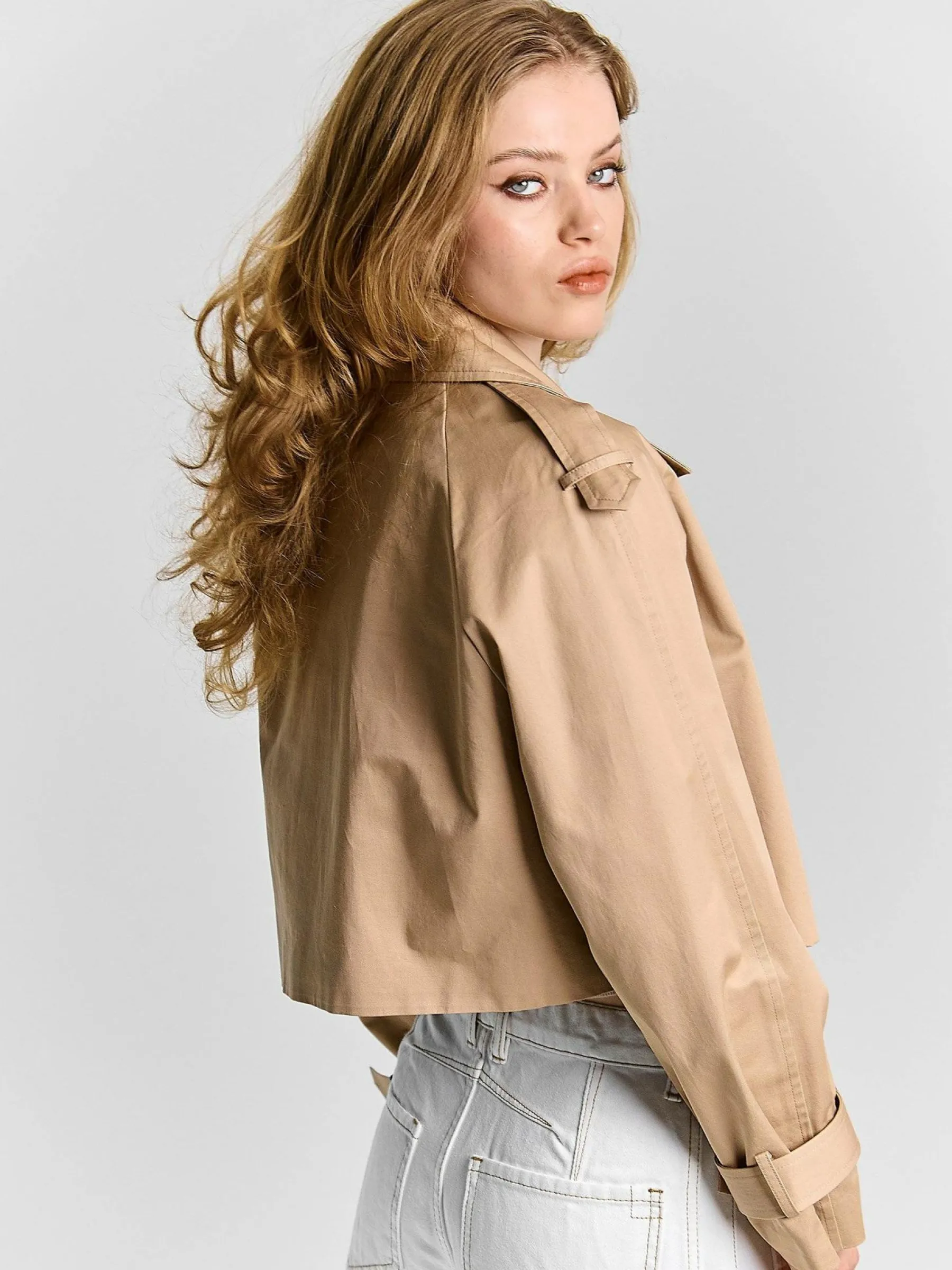 Kolor: beżowyKrój: podstawowyTyp: trenczRekaw: długi rękawDługość: krótki topPattern style: pojedynczy kolorDeta…
