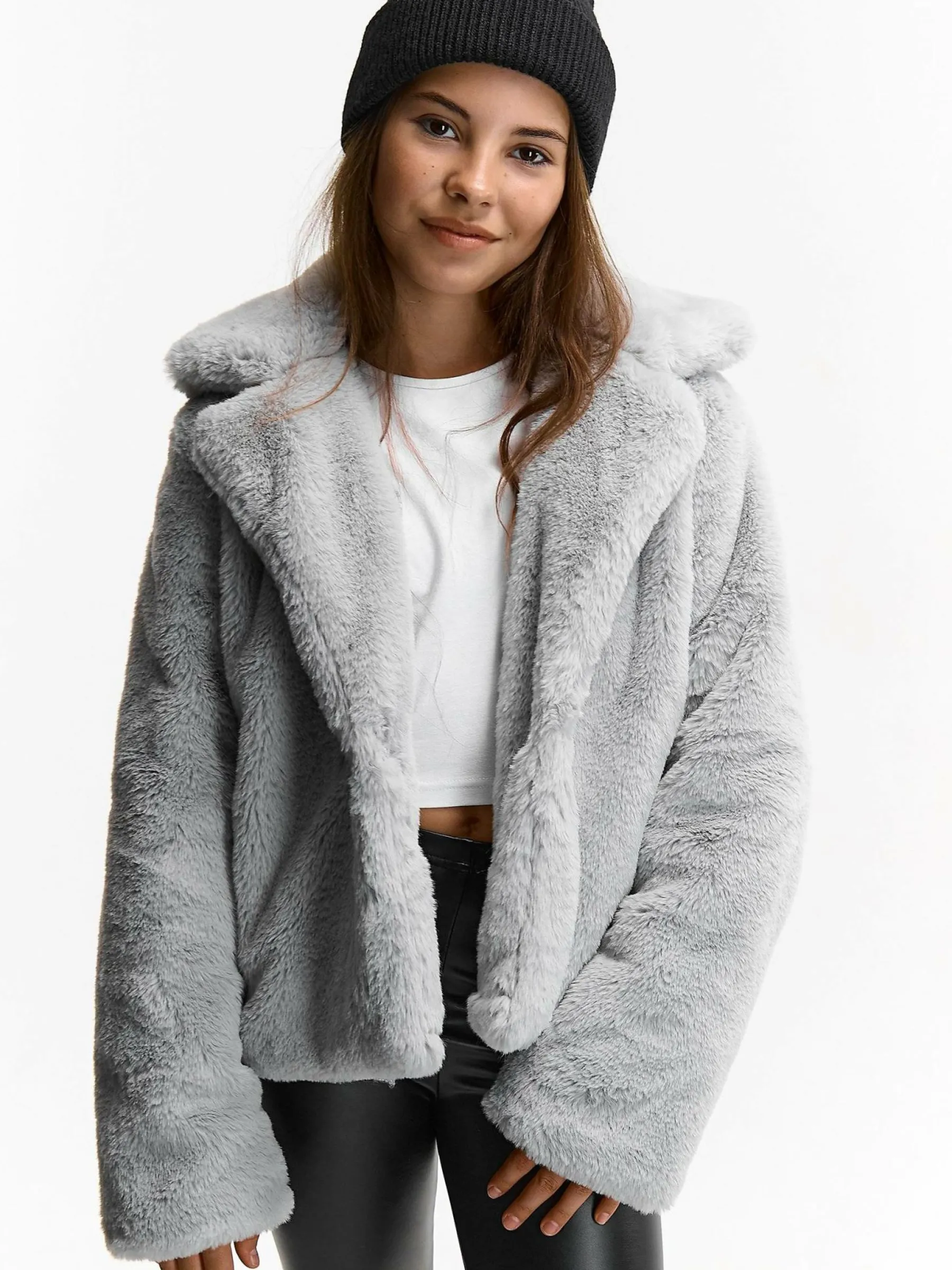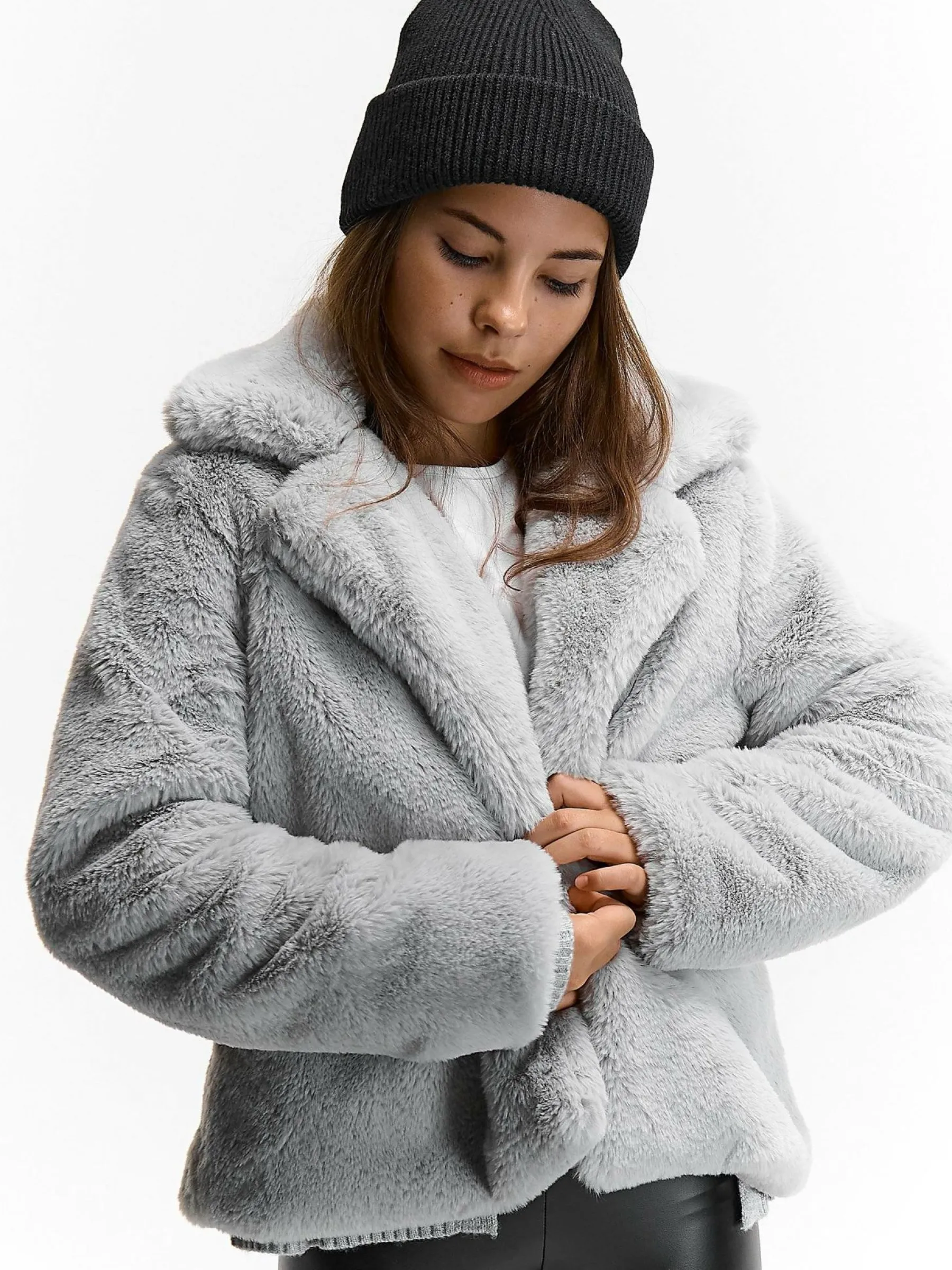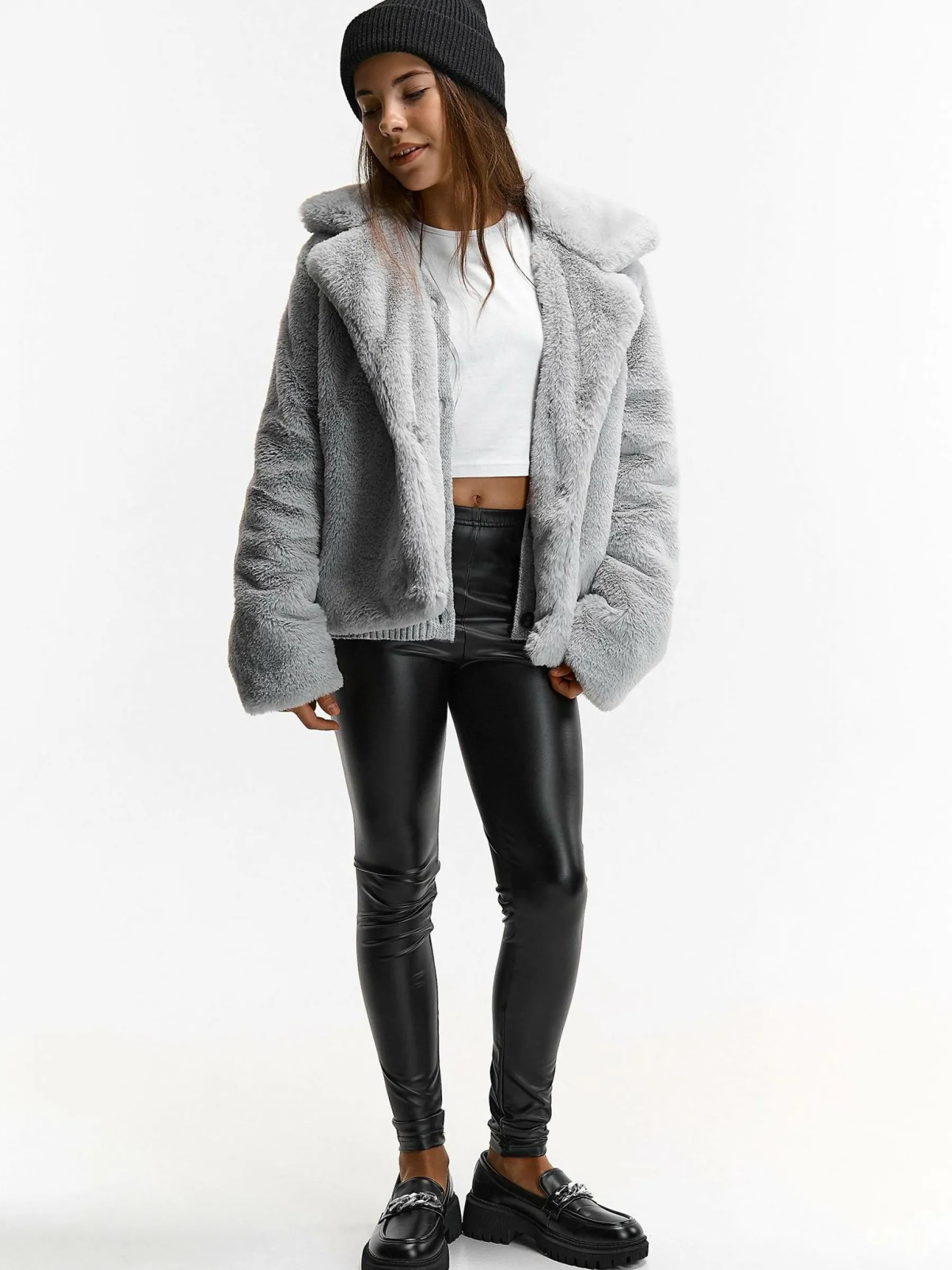 Kolor: szaryKrój: podstawowyTyp: płaszczRekaw: długi rękawDługość: krótkiPattern style: pojedynczy kolorDetal: n…