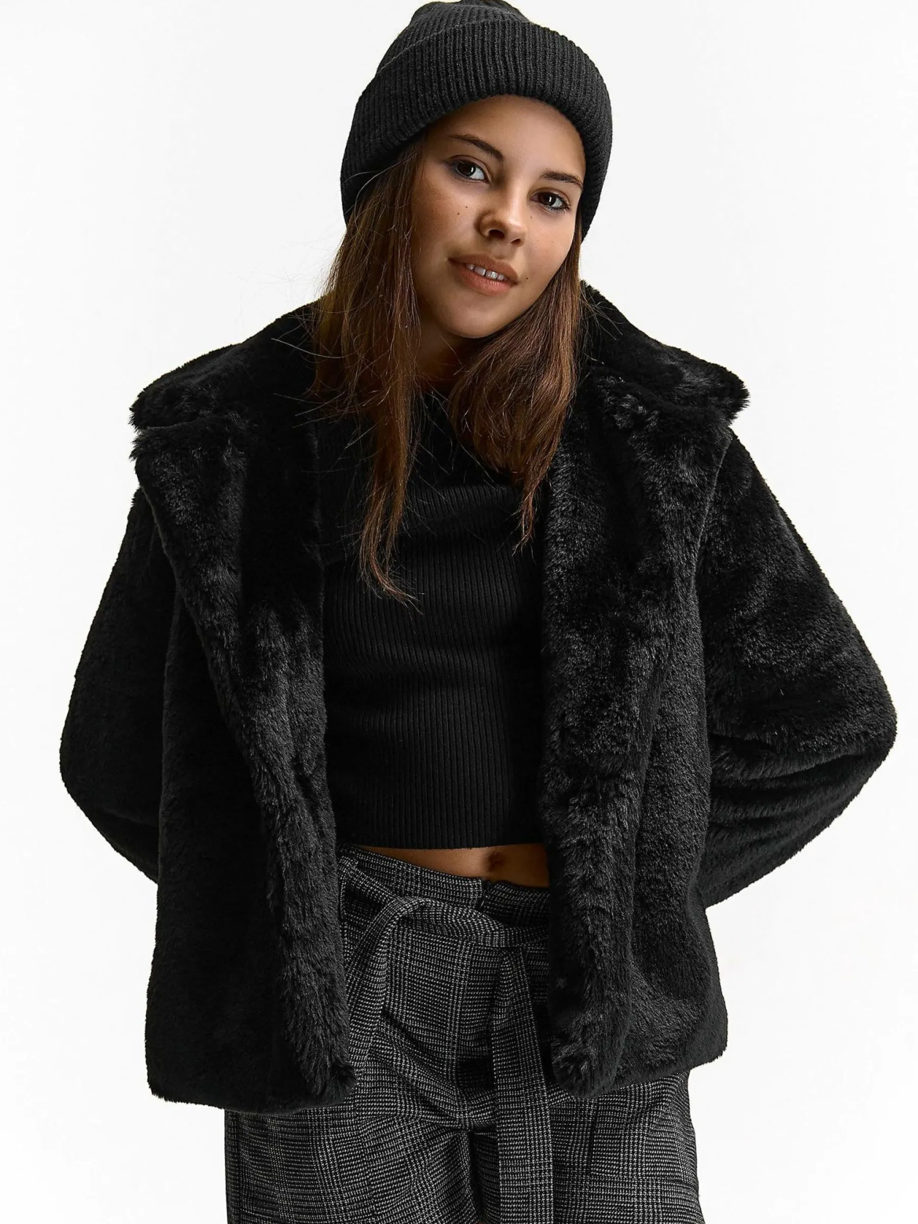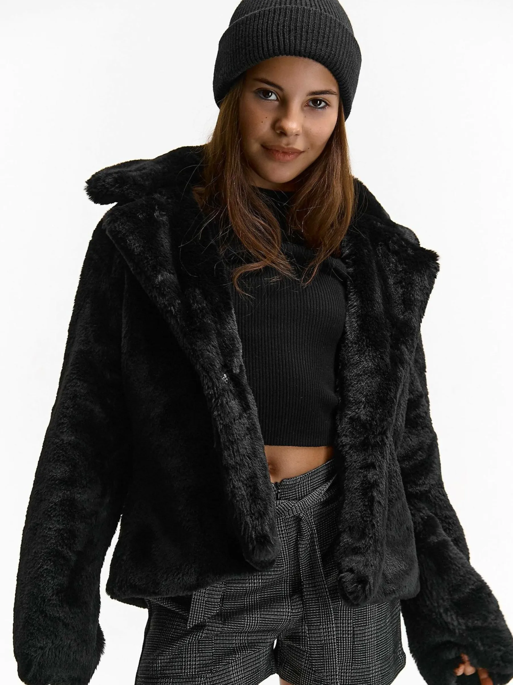 Kolor: czarnyKrój: podstawowyTyp: płaszczRekaw: długi rękawDługość: krótkiPattern style: pojedynczy kolorDetal: …