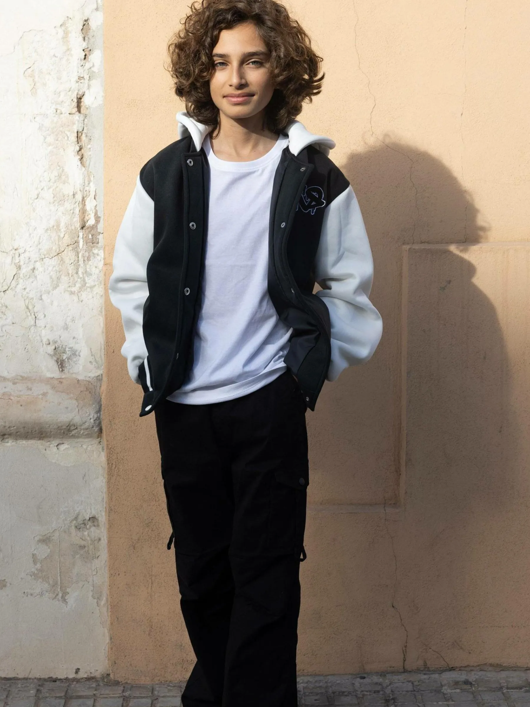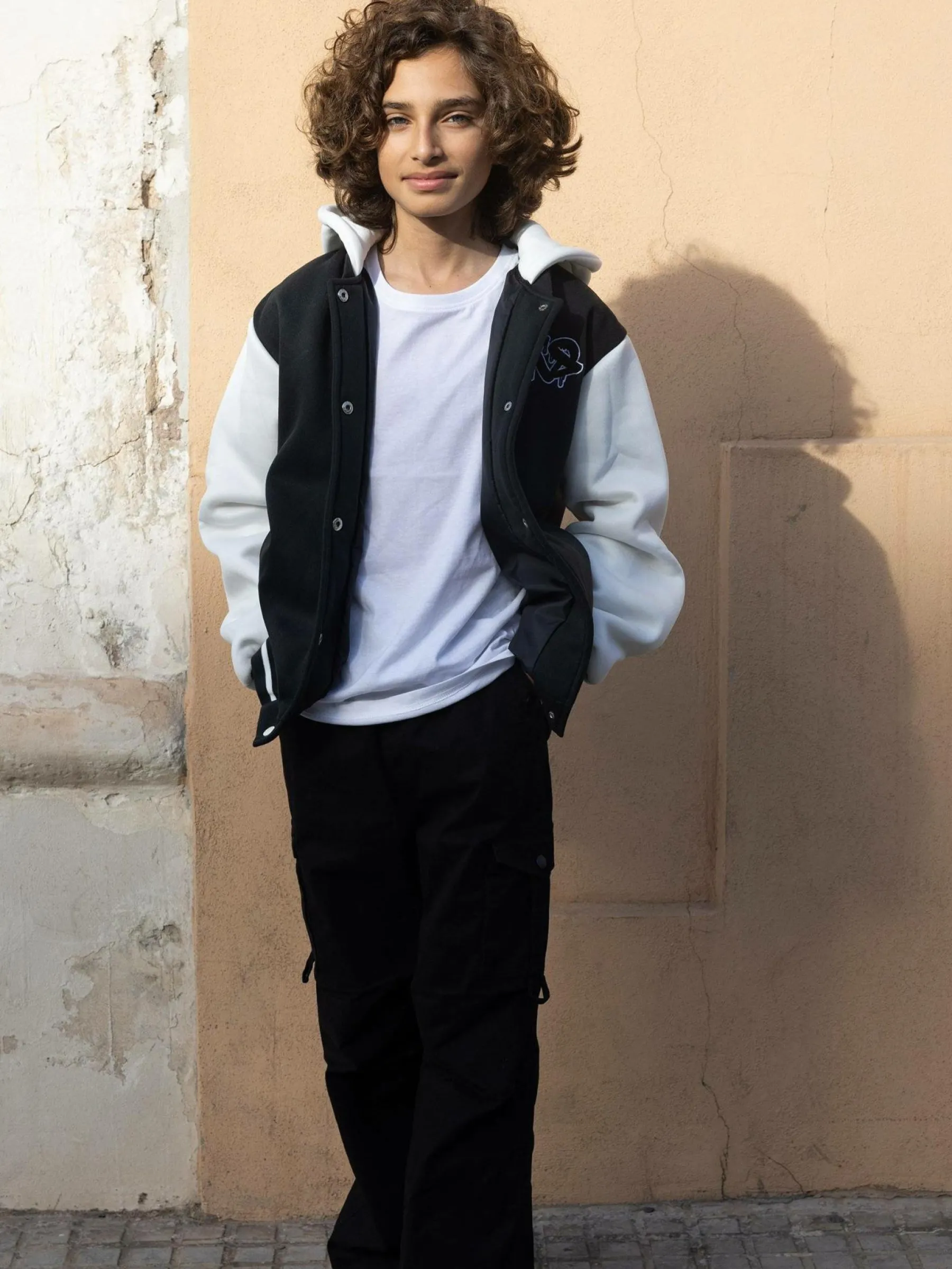 Kolor: czarnyTyp: kurtka przejściowa, bluzaRekaw: długi rękawDługość: krótkiPattern style: wielobarwnyDetal: na s…