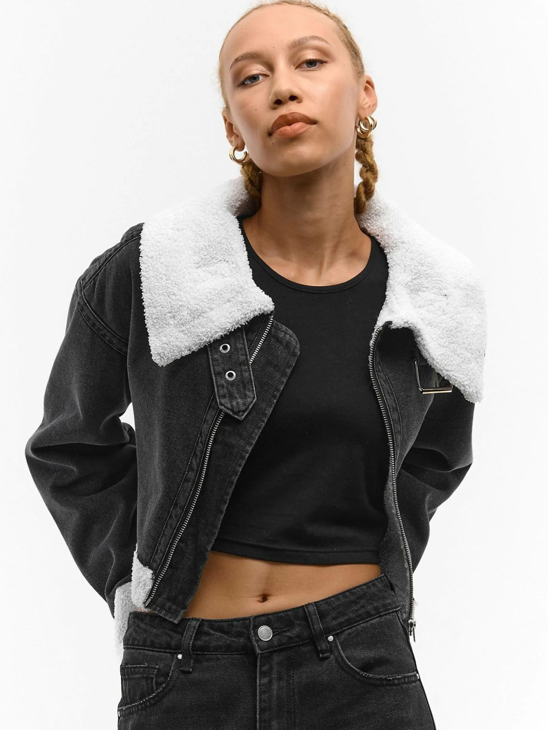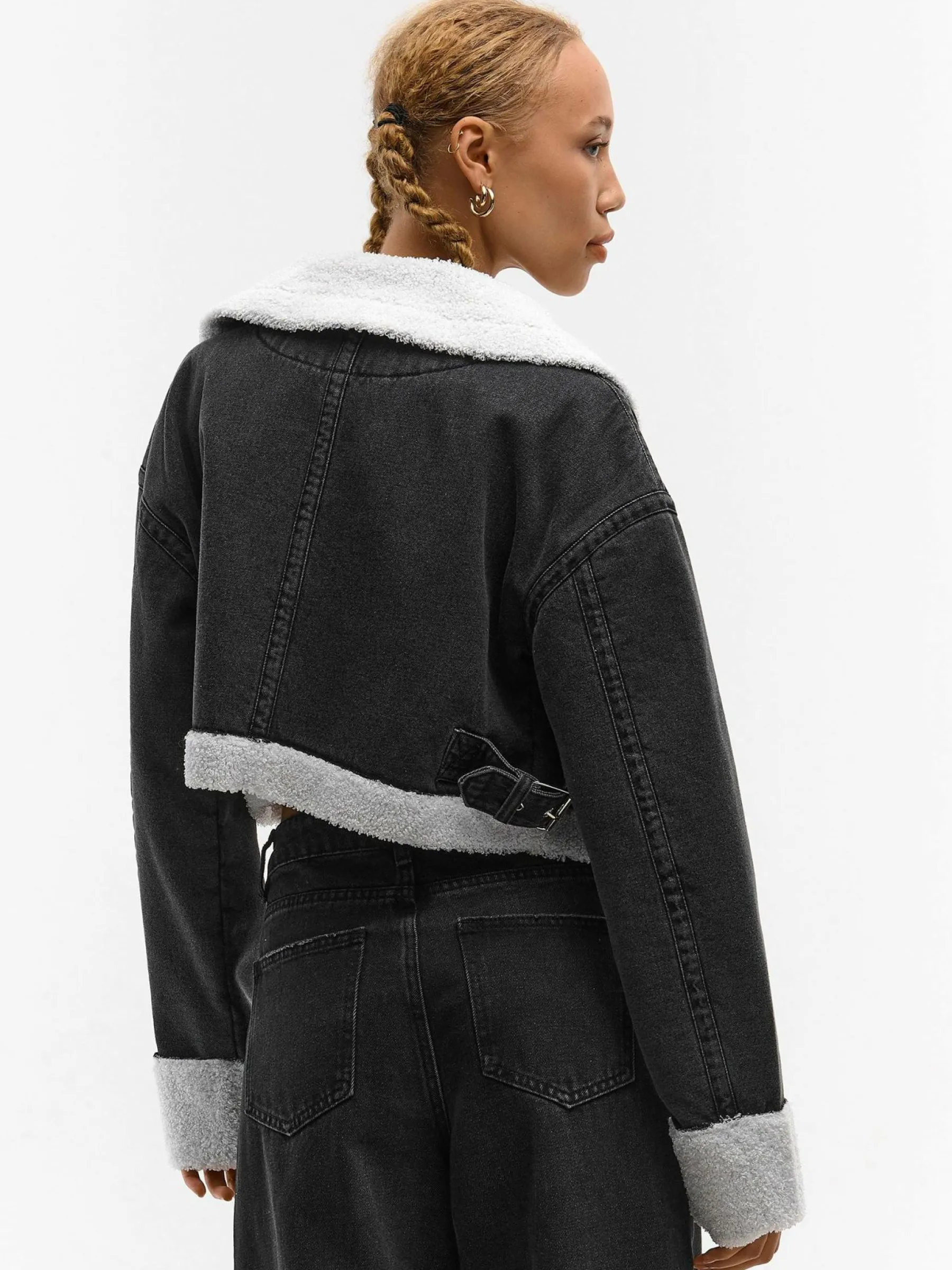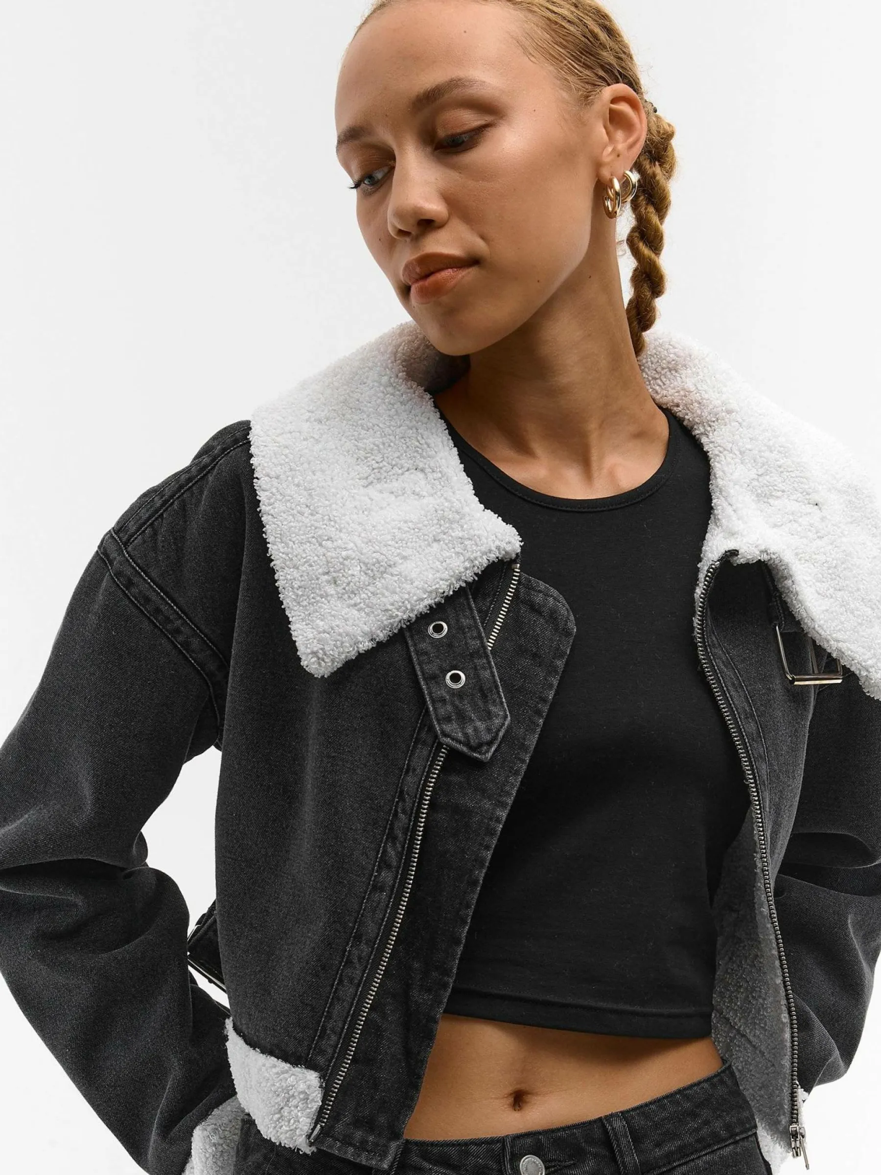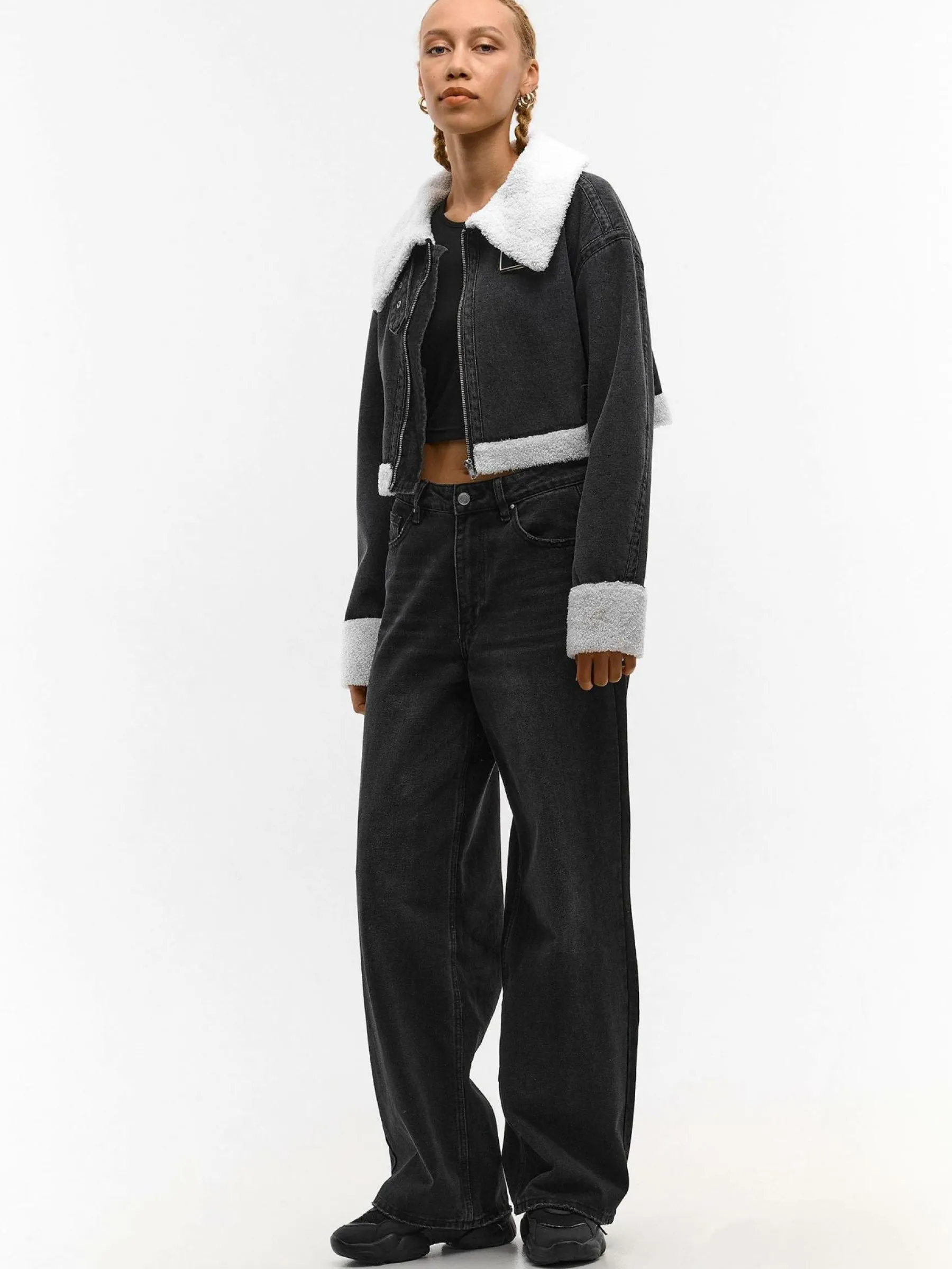 Kolor: czarnyKrój: regularTyp: kurtka przejściowaRekaw: długi rękawDługość: krótki topPattern style: pojedynczy …