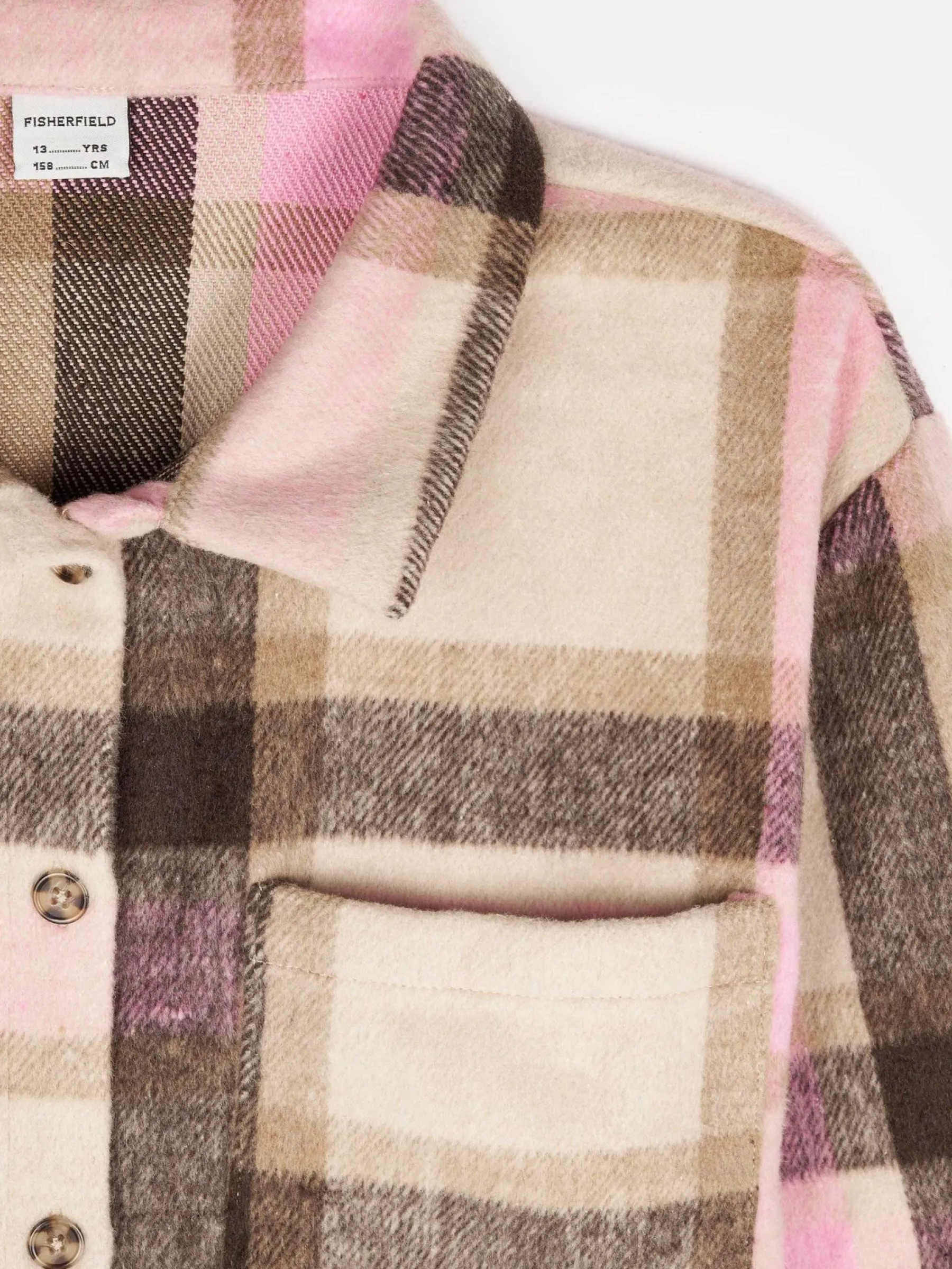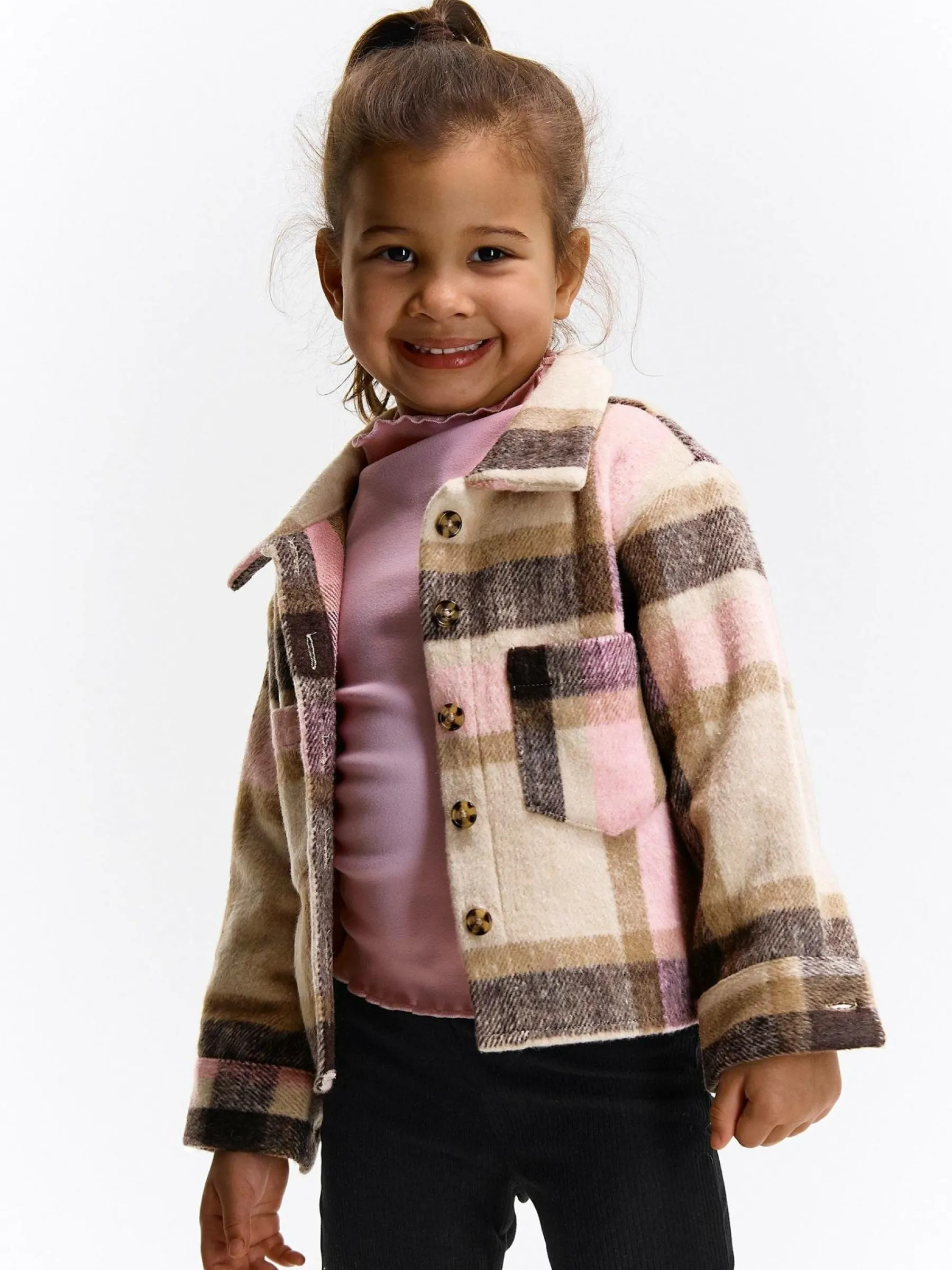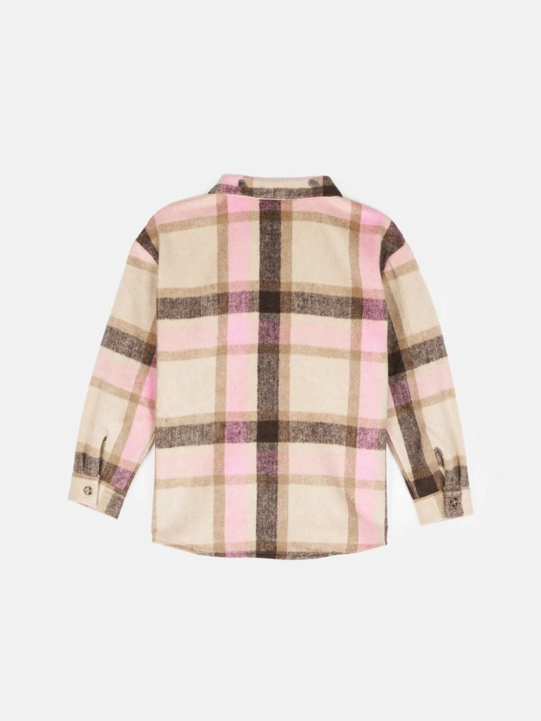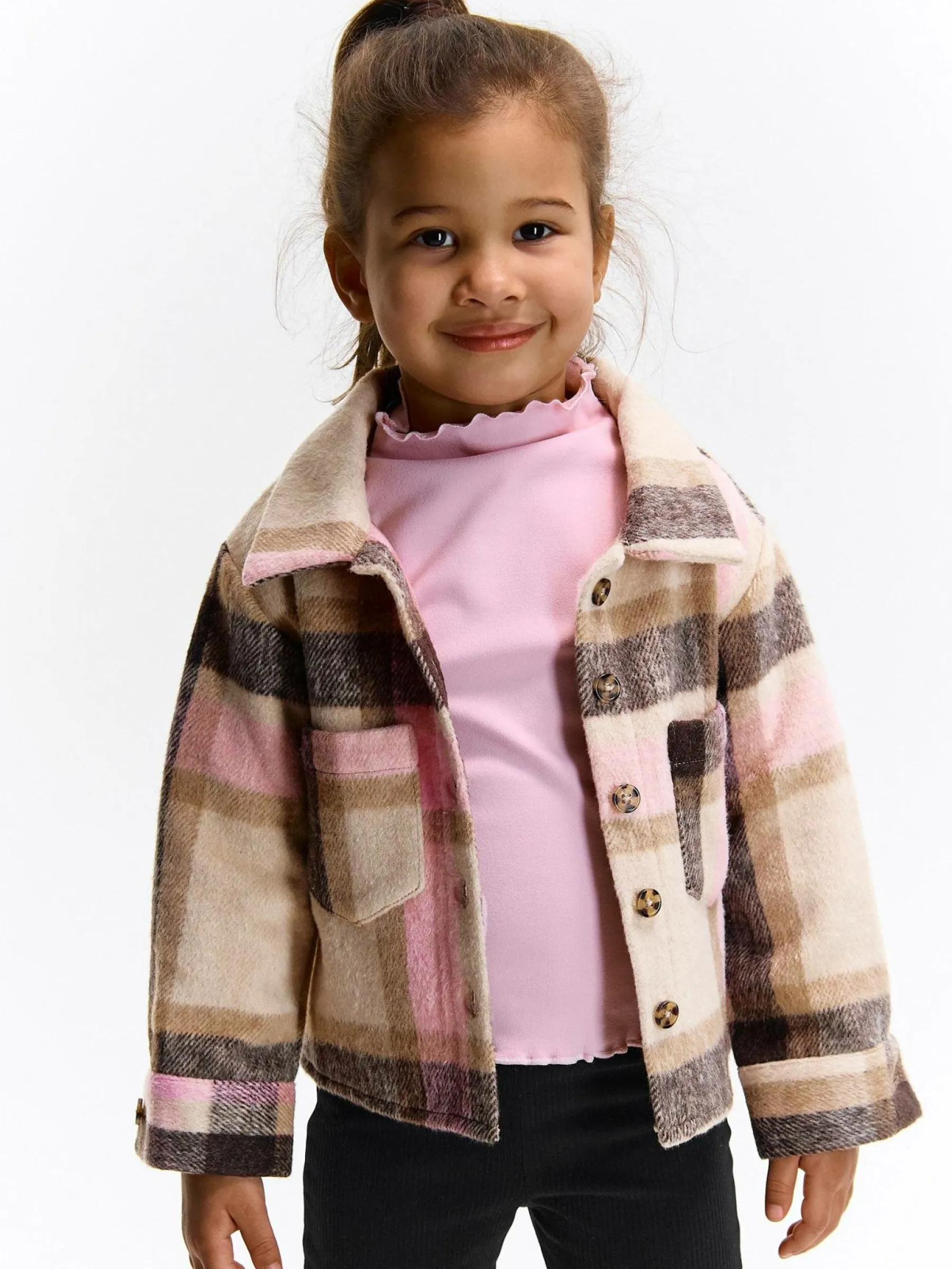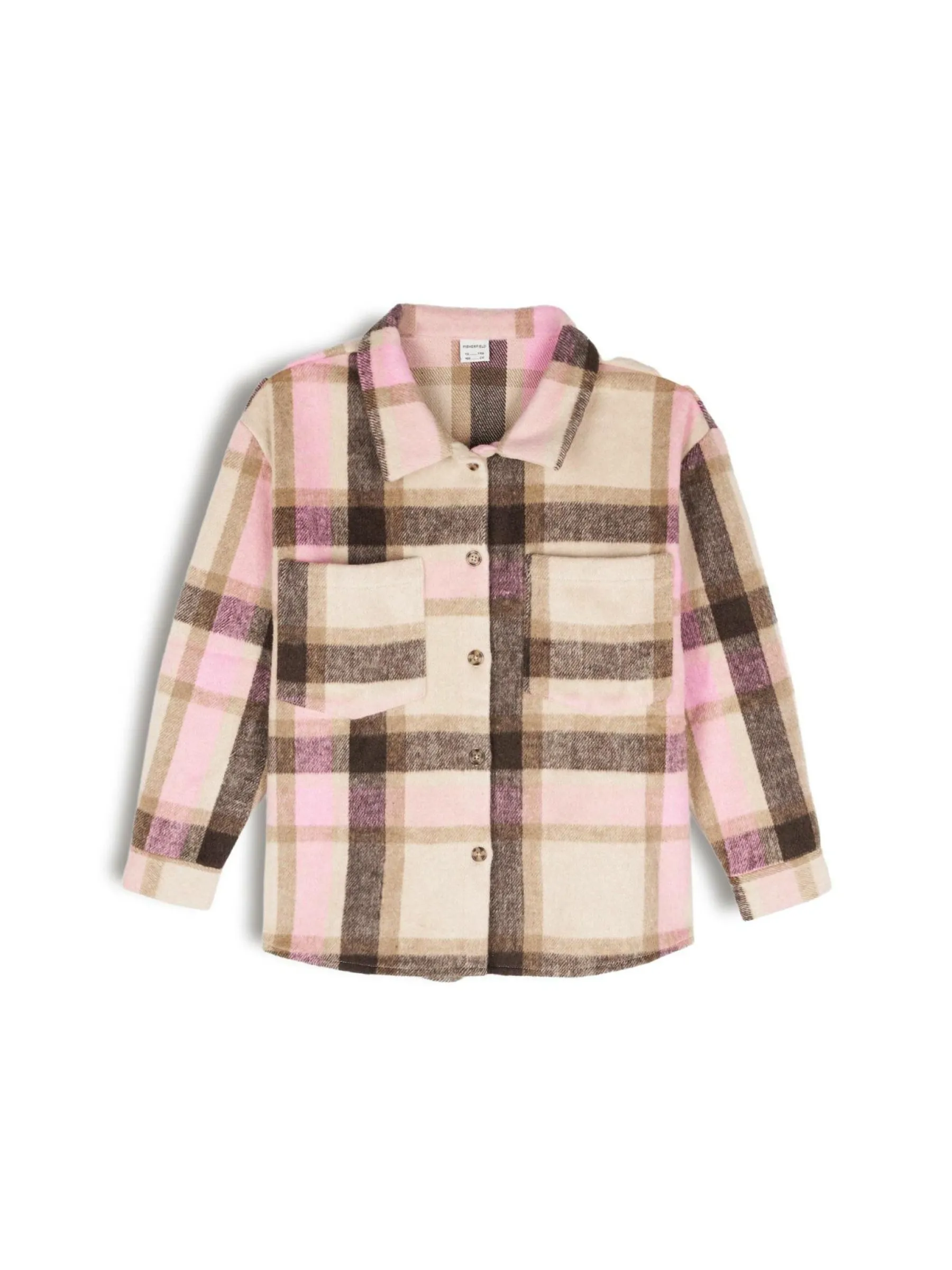 Kolor: beżowyKrój: koszuloweTyp: kurtka przejściowaRekaw: długi rękawDługość: krótkiPattern style: w krateDetal…