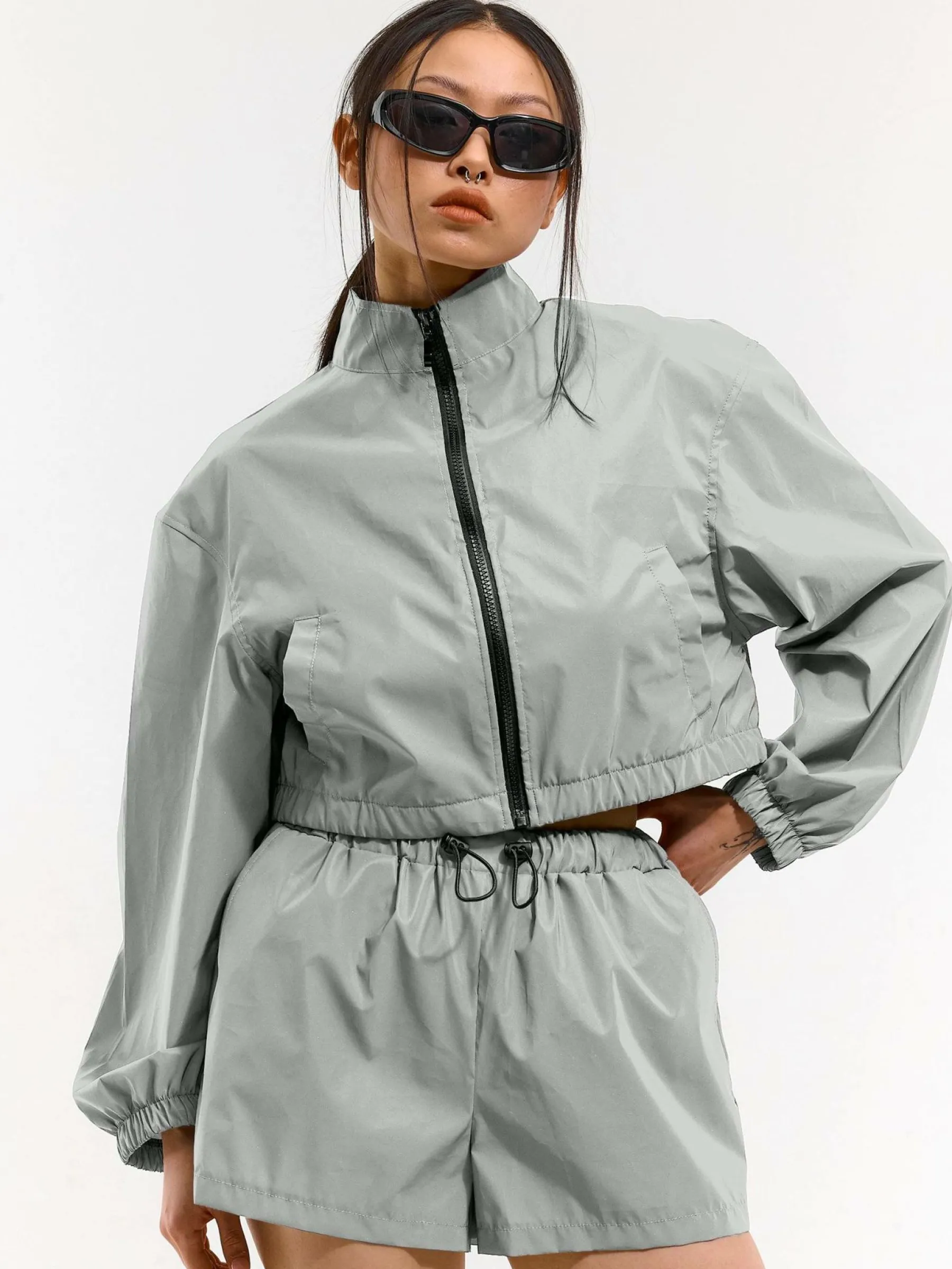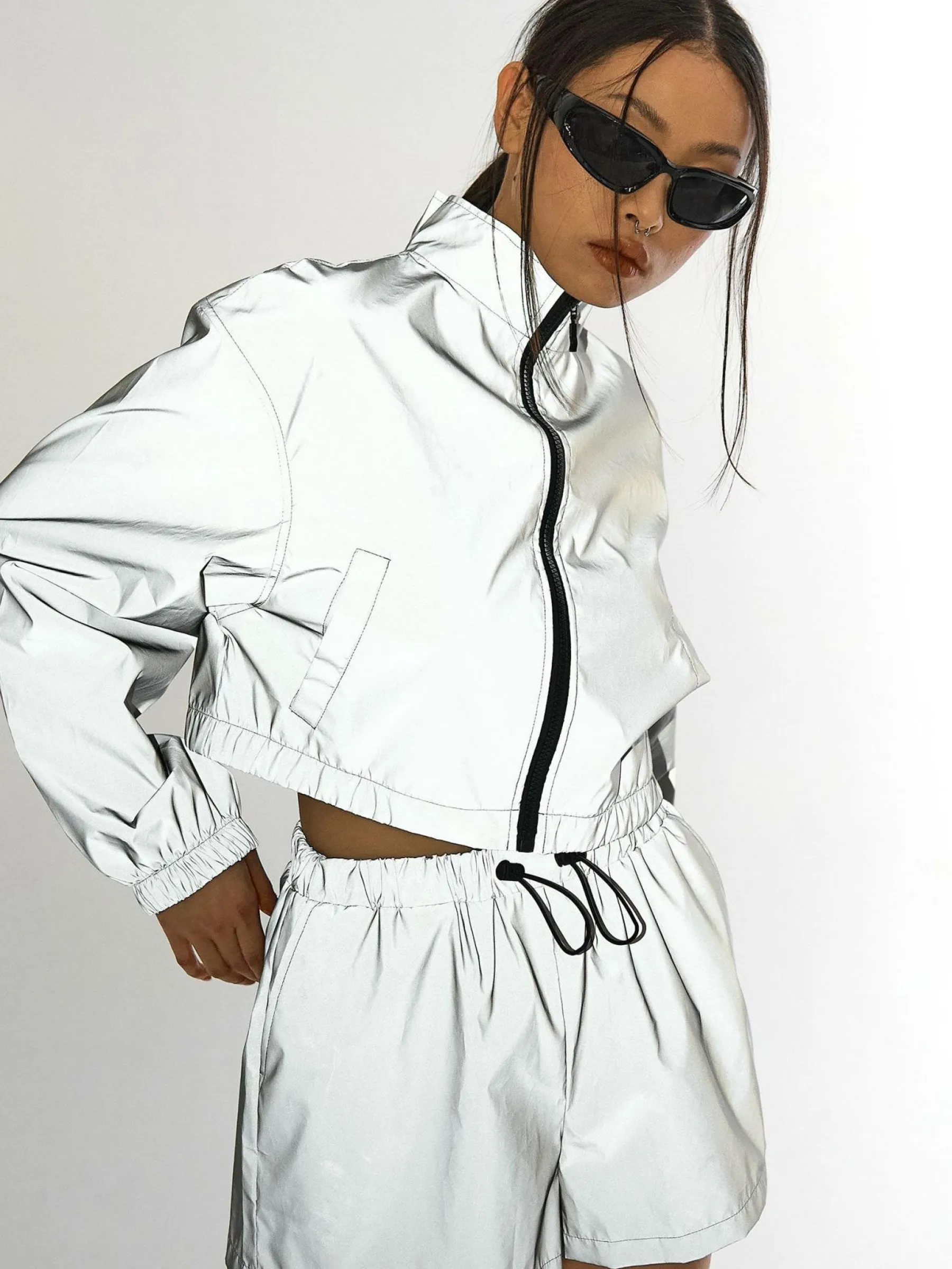 Kolor: metalicznyKrój: regularTyp: kurtka przejściowaRekaw: długi rękawDługość: krótki topPattern style: pojedyn…