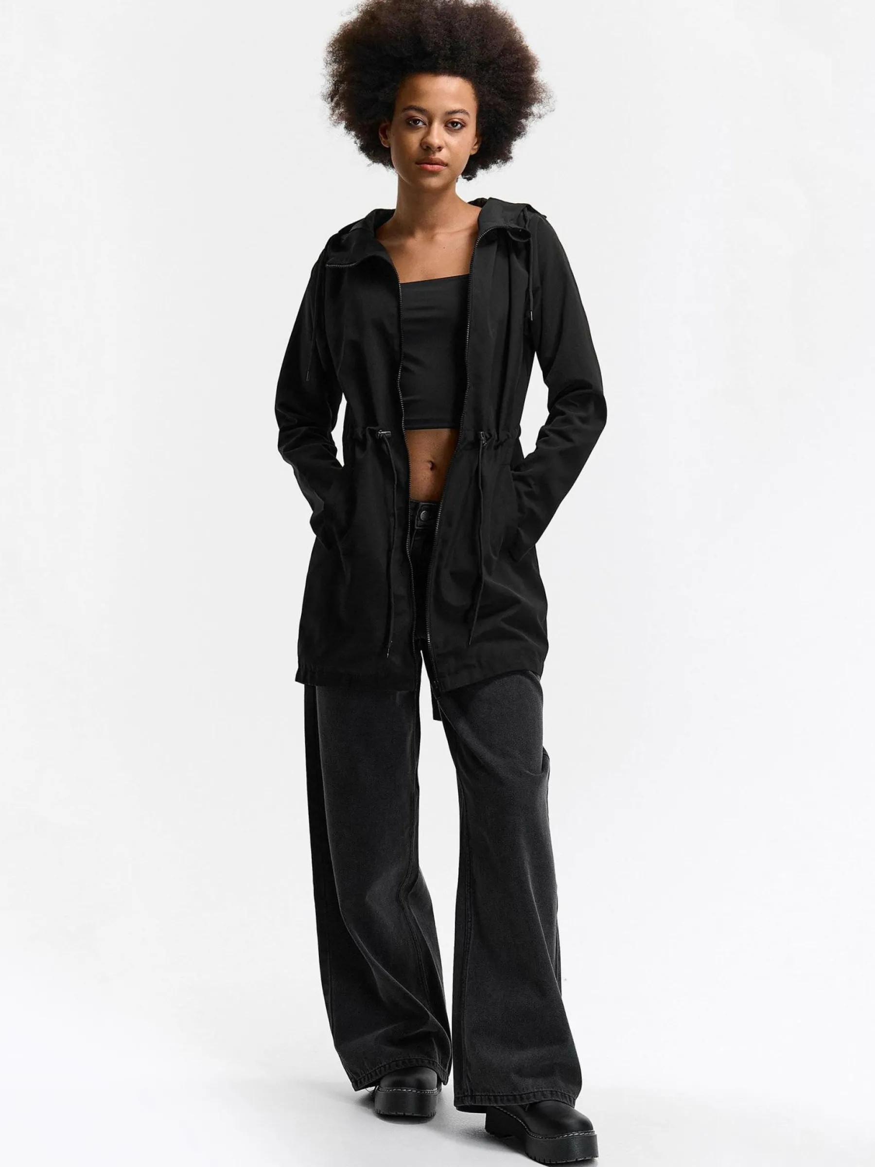 Kolor: czarnyKrój: kurtka parkaTyp: kurtka przejściowaRekaw: długi rękawDługość: dlugiePattern style: pojedynczy …