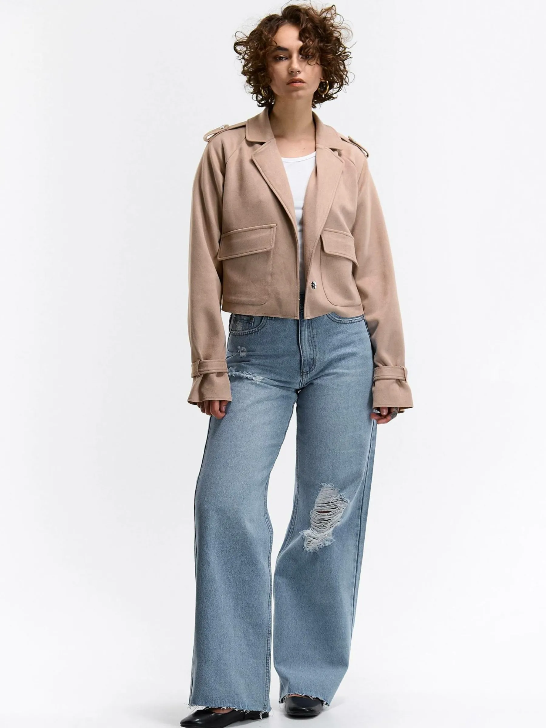 Kolor: beżowyKrój: regularTyp: kurtka przejściowaRekaw: długi rękawDługość: krótkiPattern style: pojedynczy kol…
