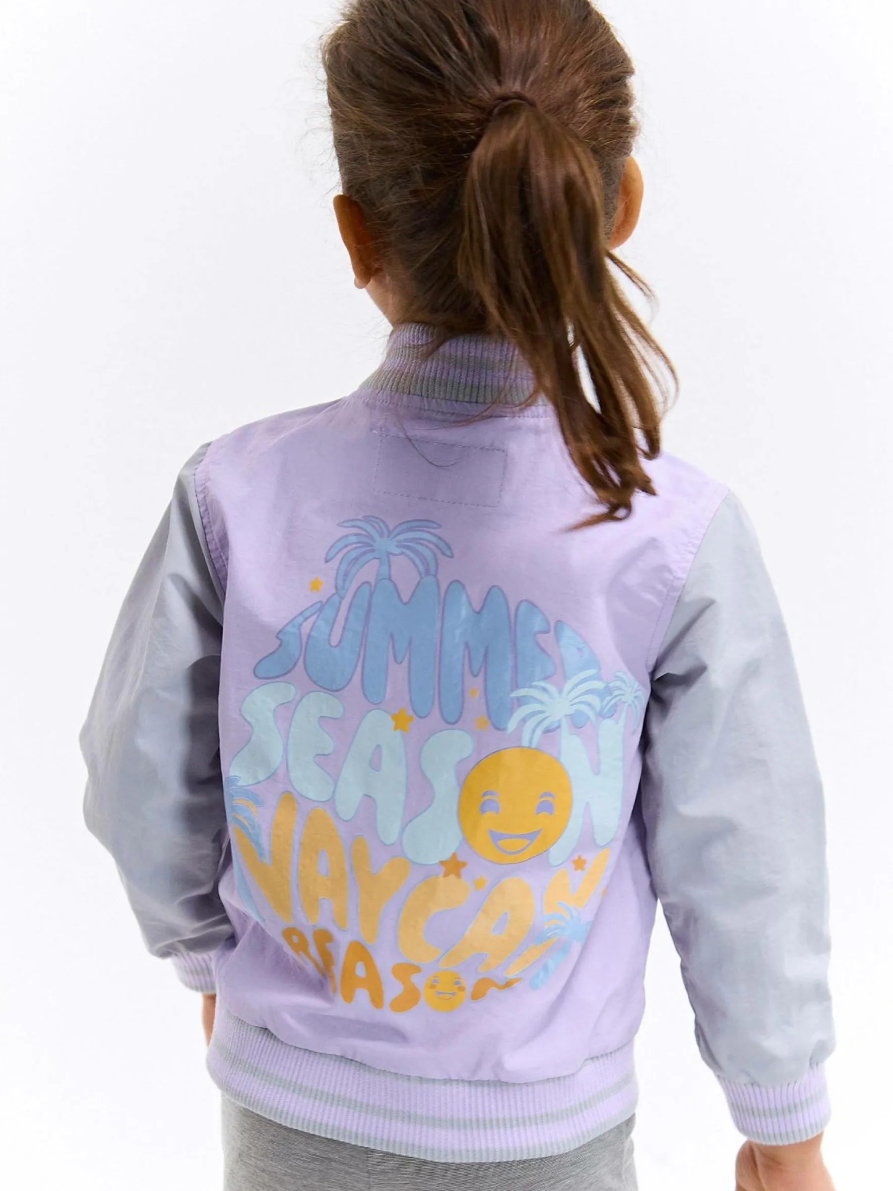 Kolor: purpurowyKrój: bomberTyp: kurtka przejściowaRekaw: długi rękawDługość: krótkiPattern style: z nadrukiem, …