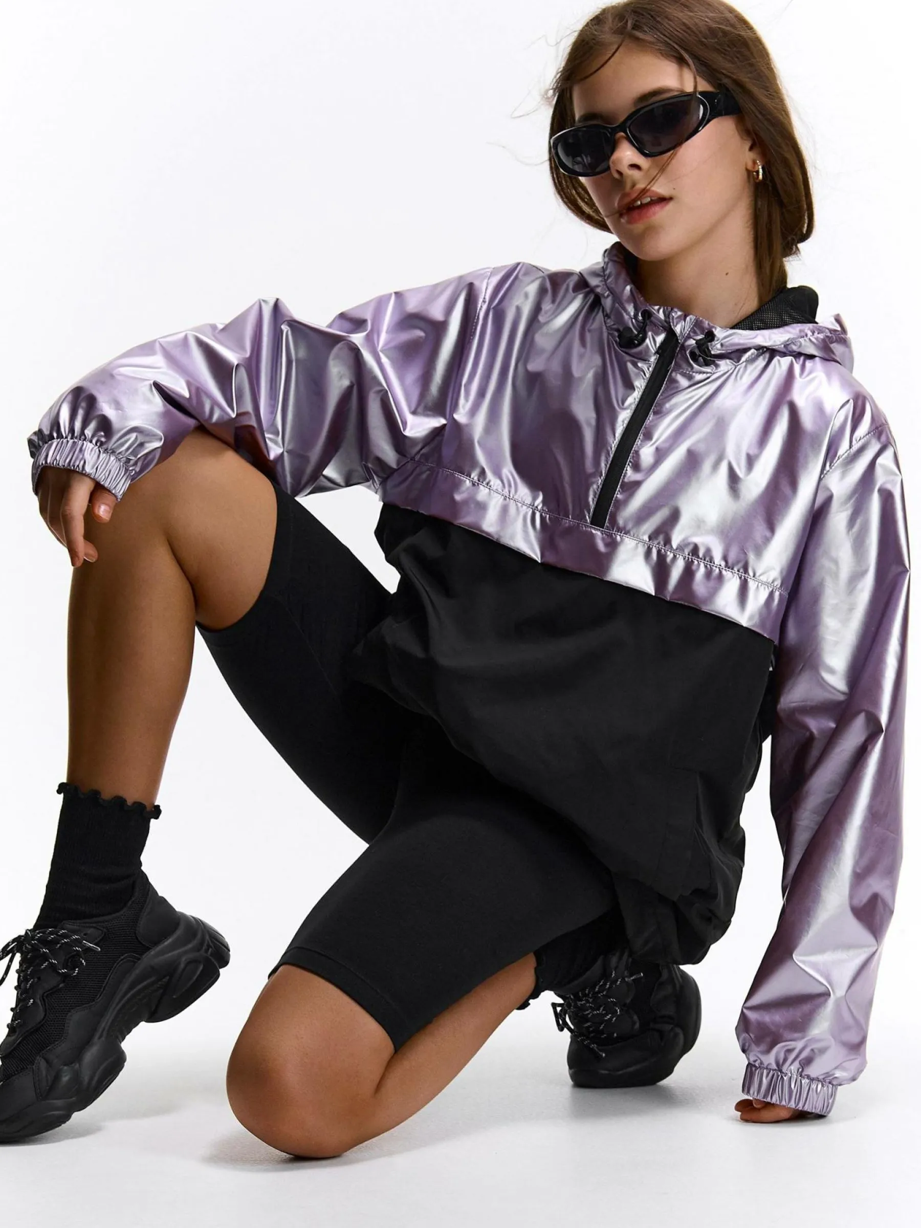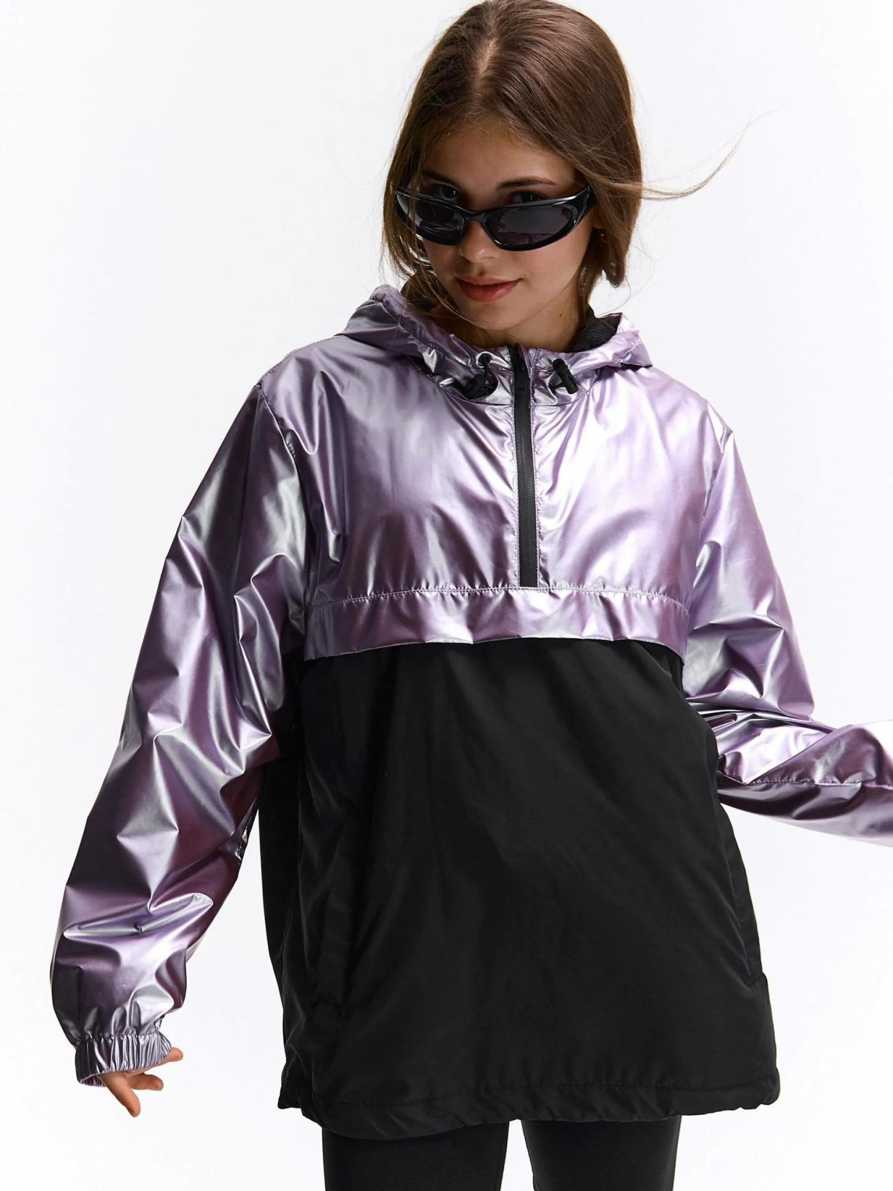 Kolor: purpurowyKrój: regularTyp: kurtka przejściowaRekaw: długi rękawDługość: krótkiPattern style: colour block…