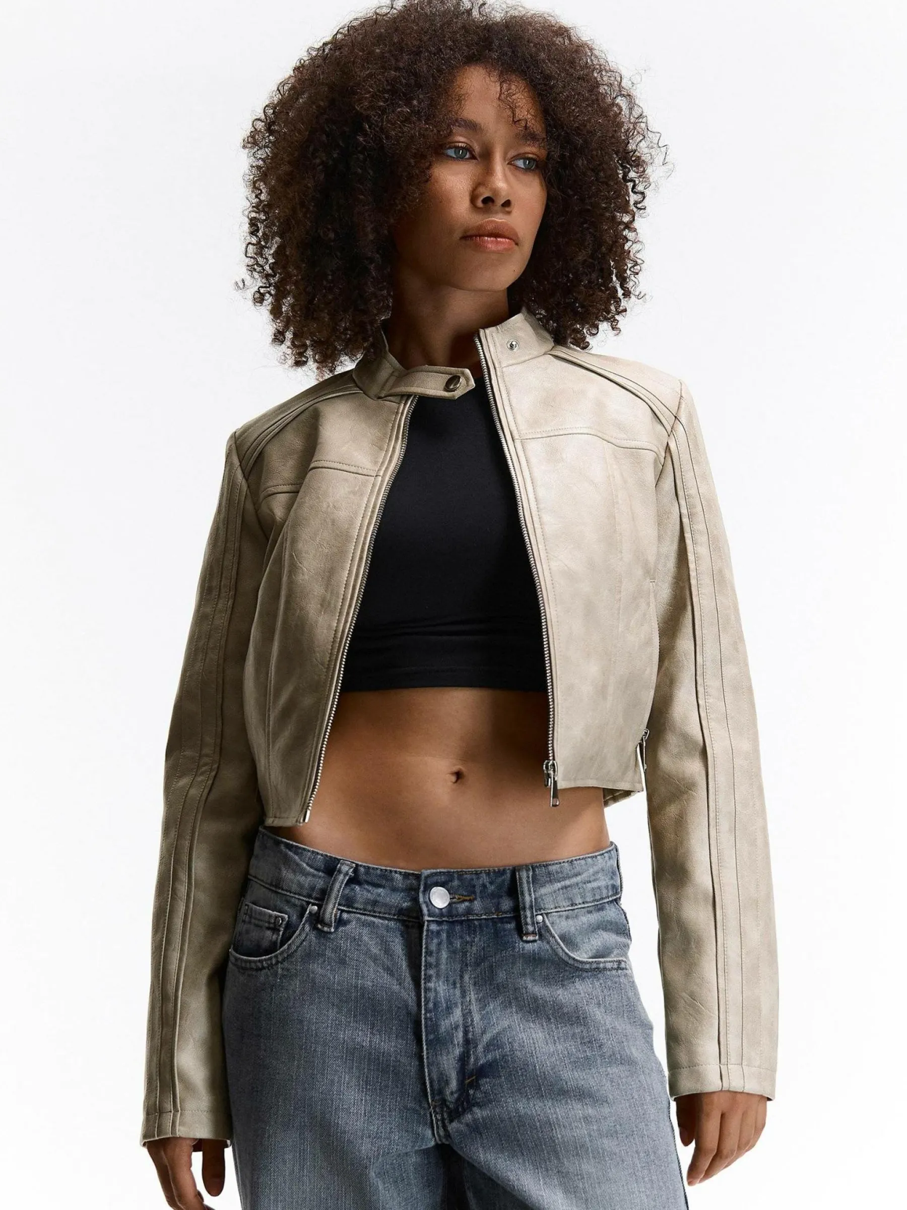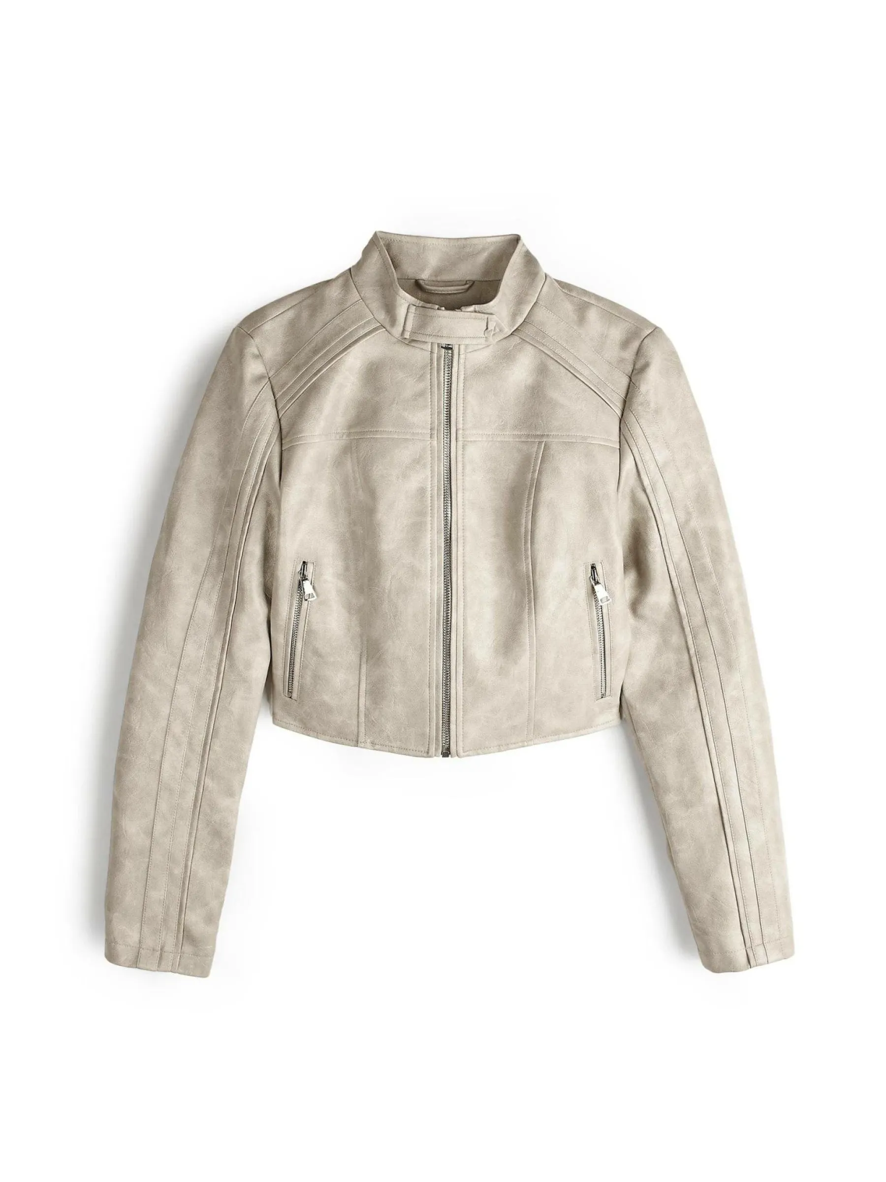 Kolor: beżowyKrój: motocykloweTyp: kurtka przejściowaRekaw: długi rękawDługość: krótki topPattern style: pojedy…