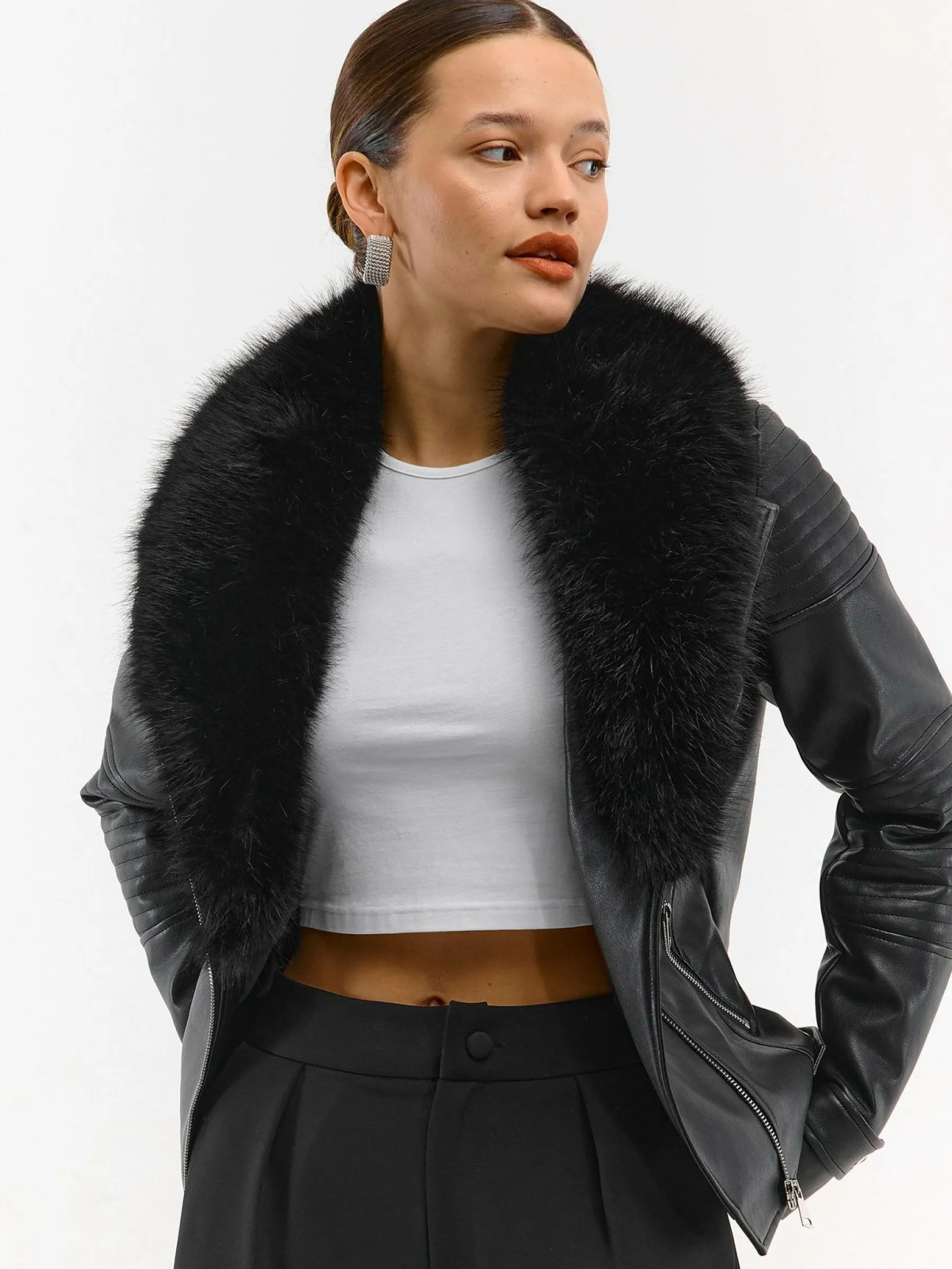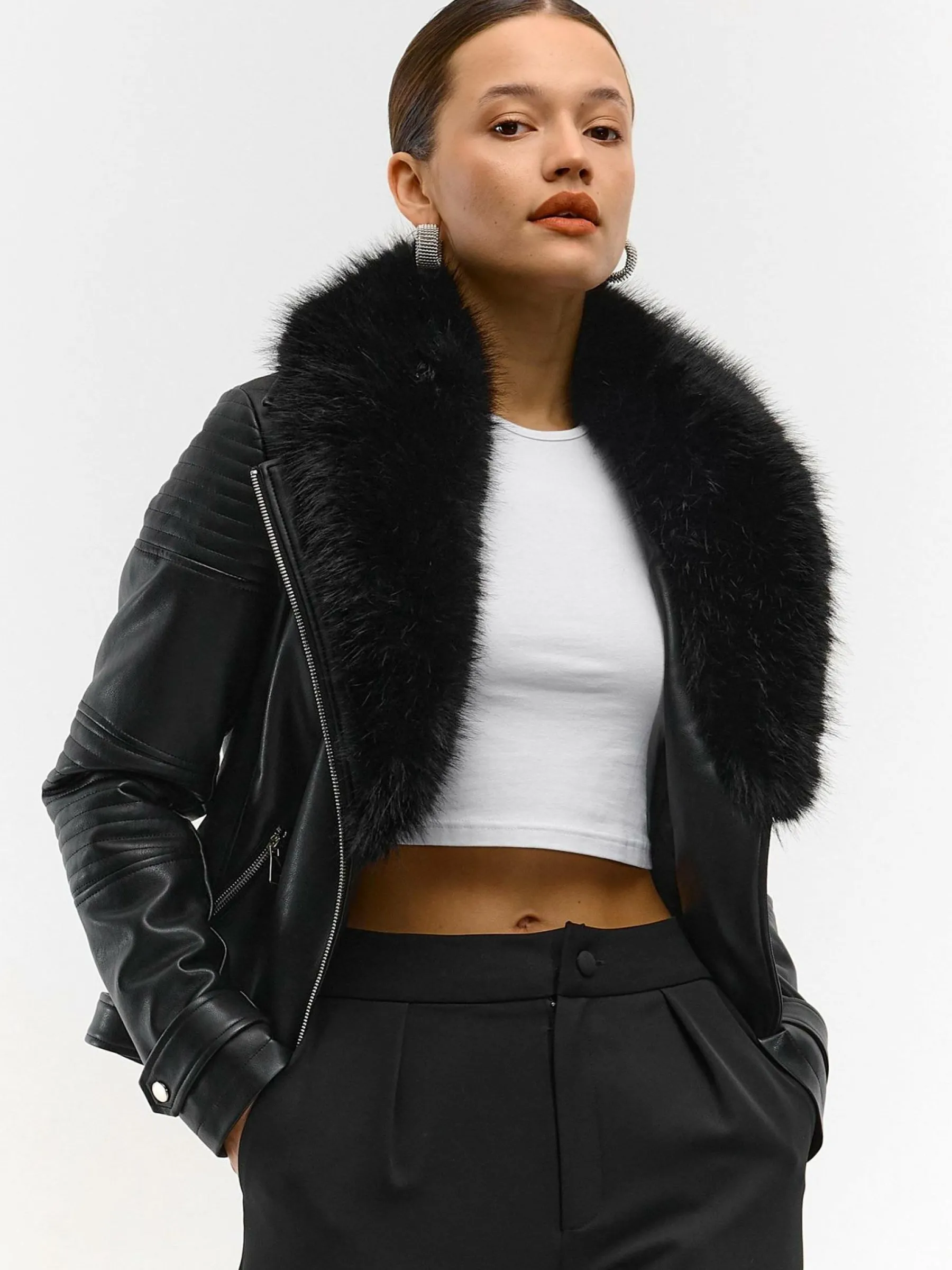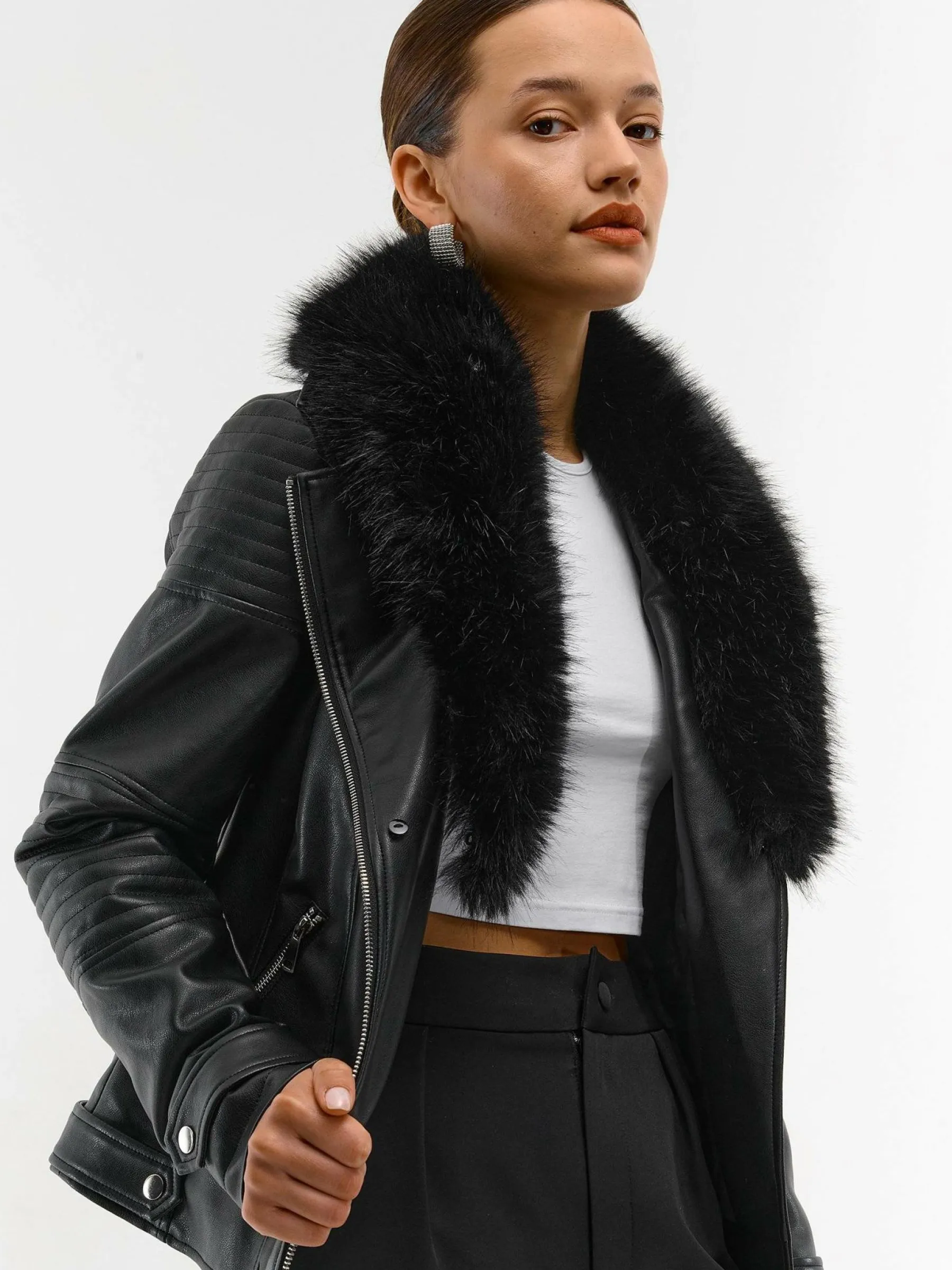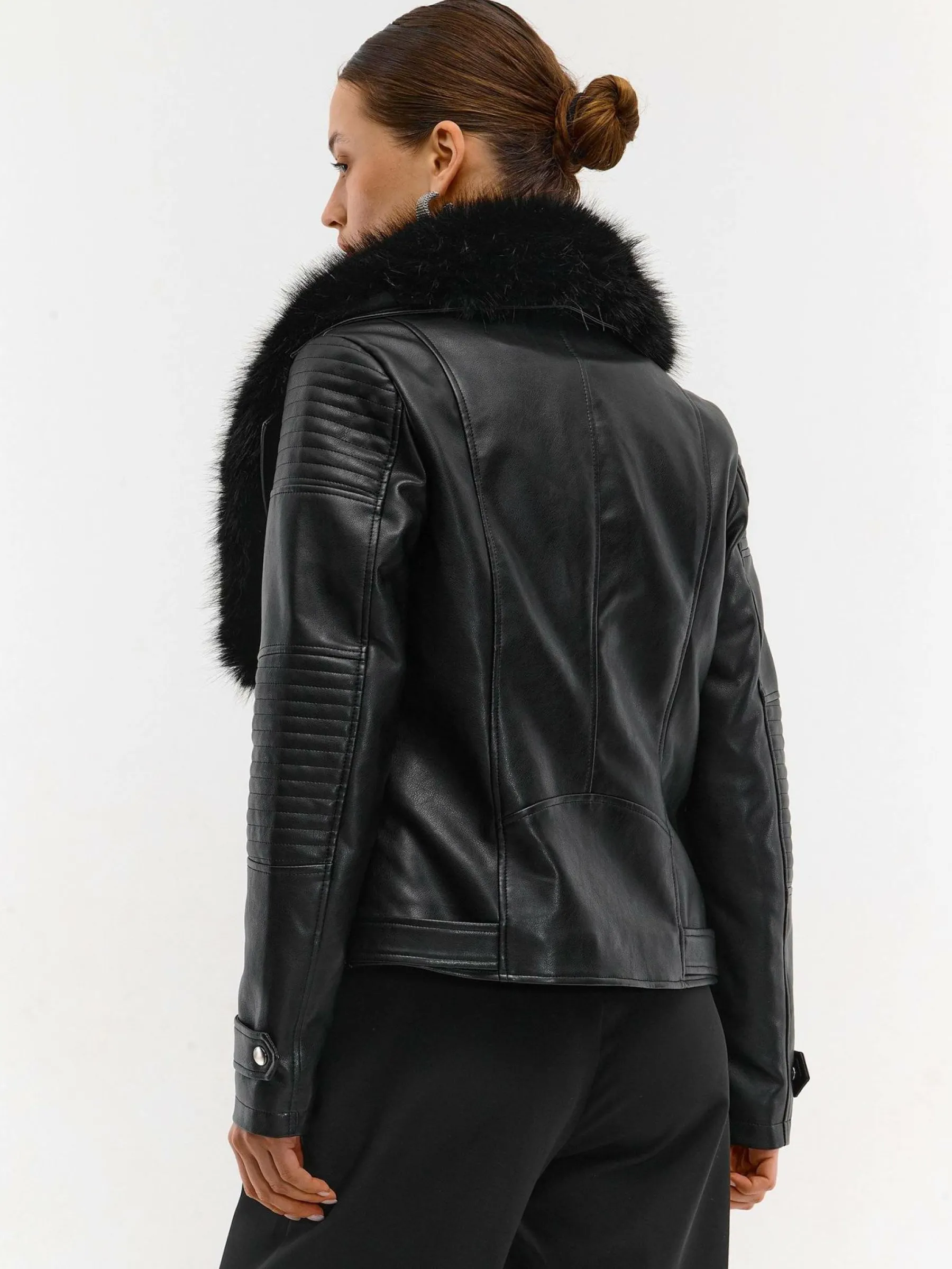Kolor: czarnyKrój: motocykloweTyp: kurtka przejściowaRekaw: długi rękawDługość: krótkiPattern style: pojedynczy …