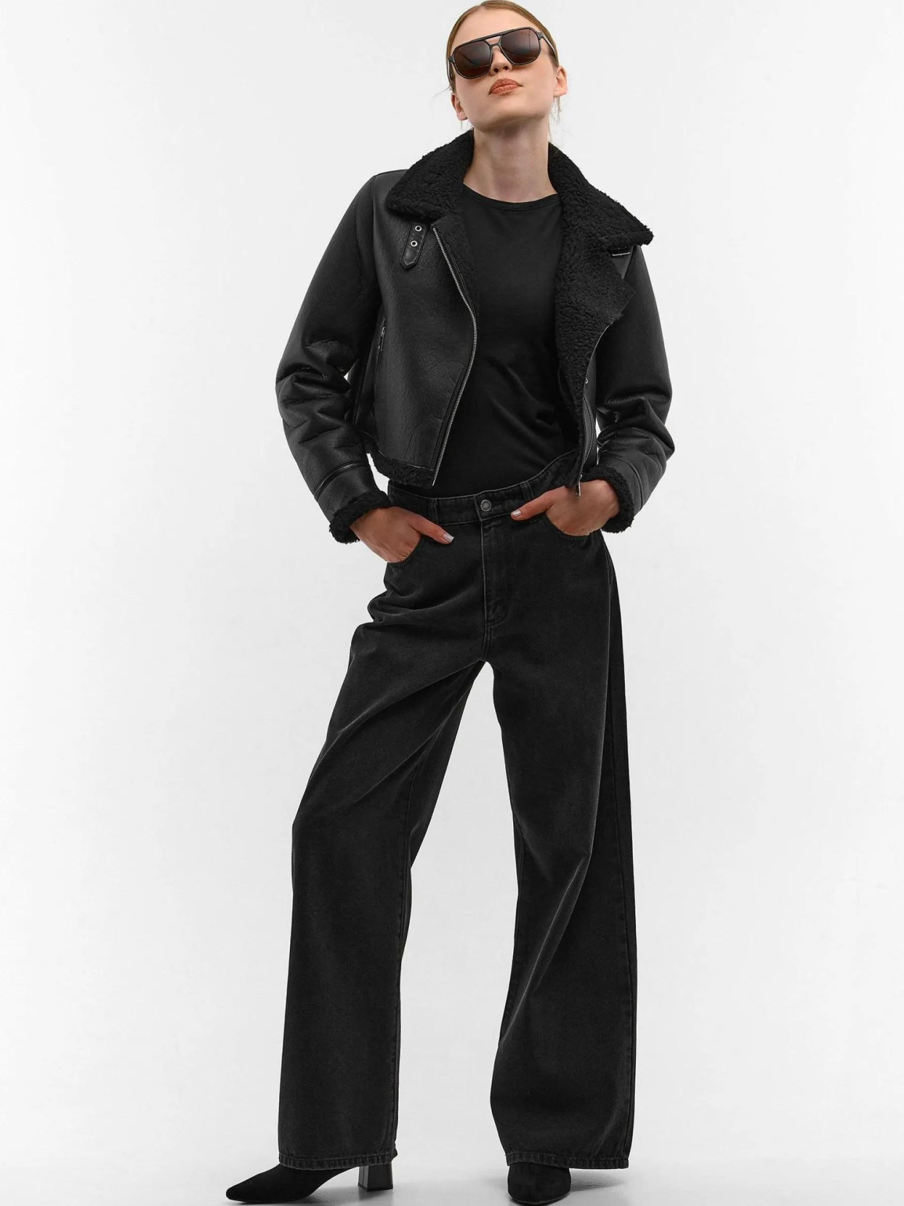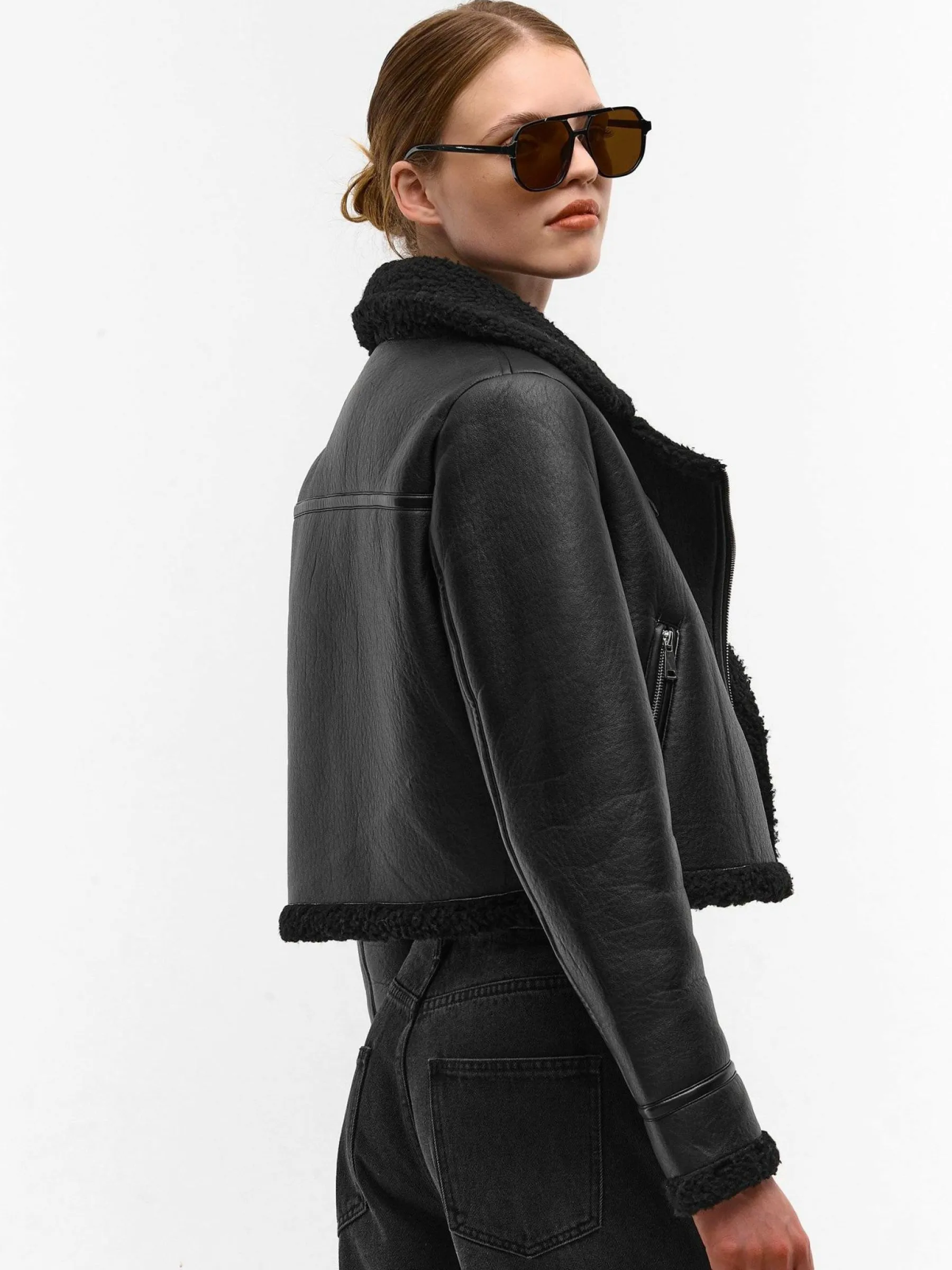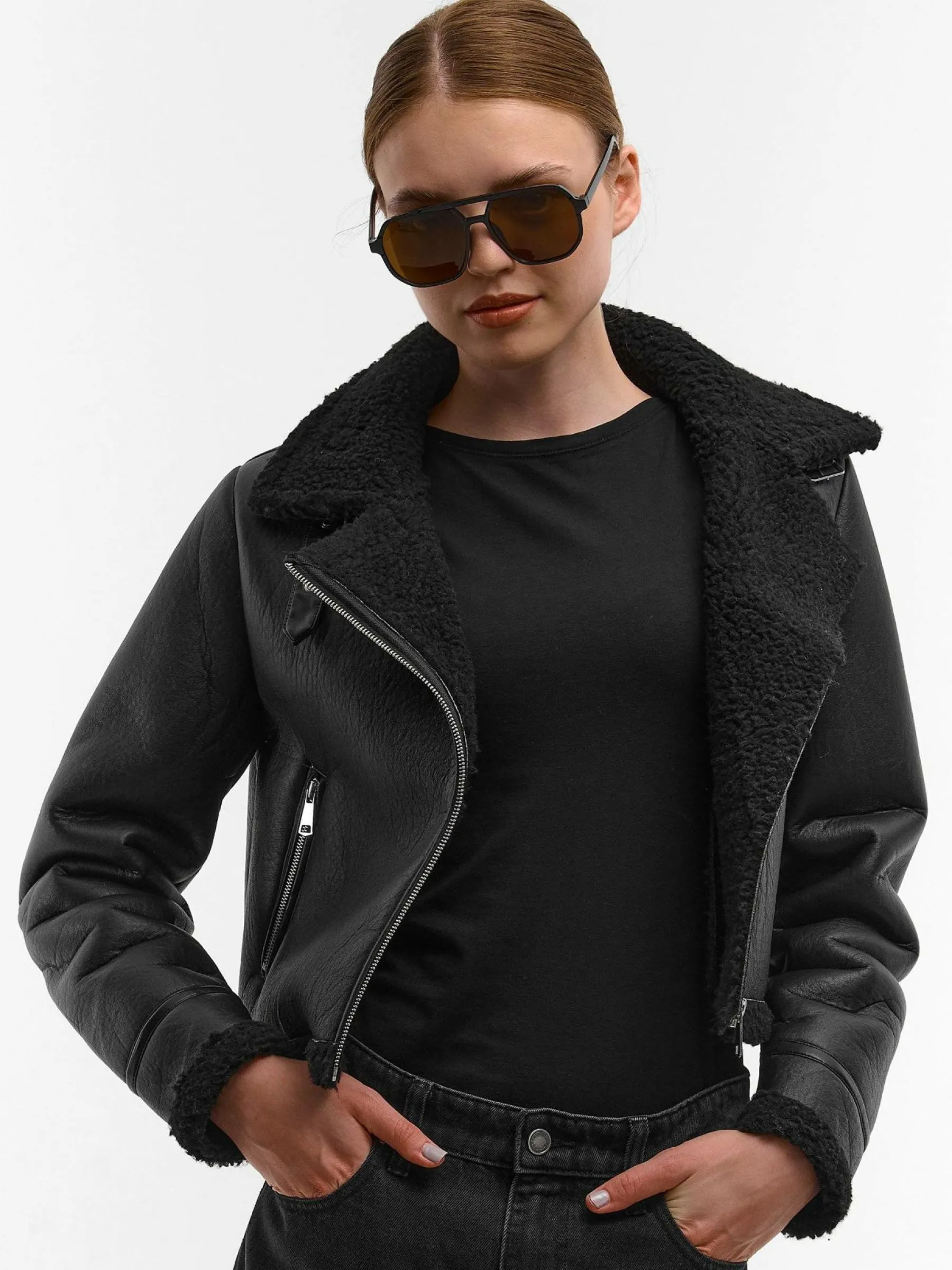 Kolor: czarnyKrój: motocykloweTyp: kurtka przejściowaRekaw: długi rękawDługość: krótkiPattern style: pojedynczy …