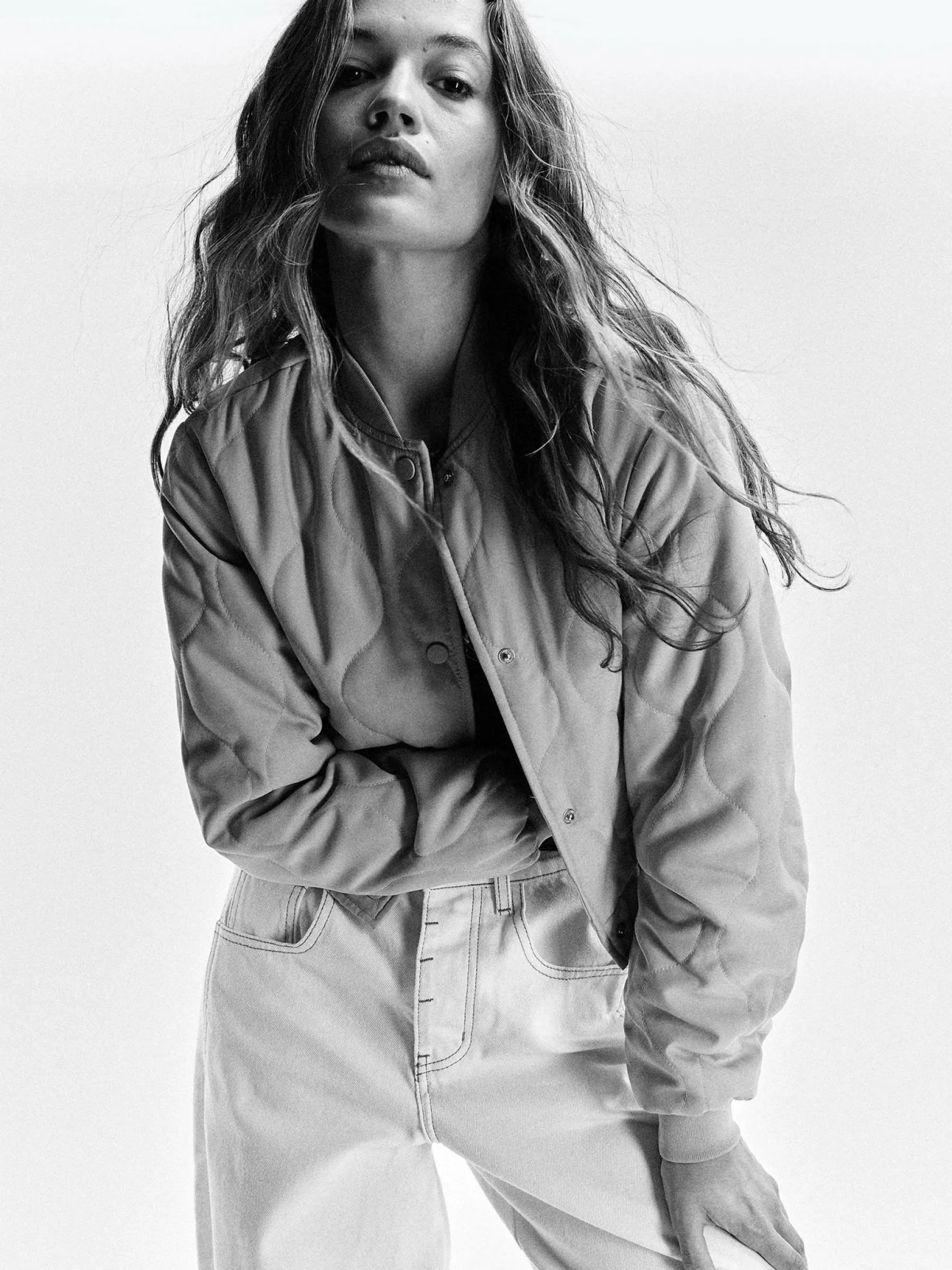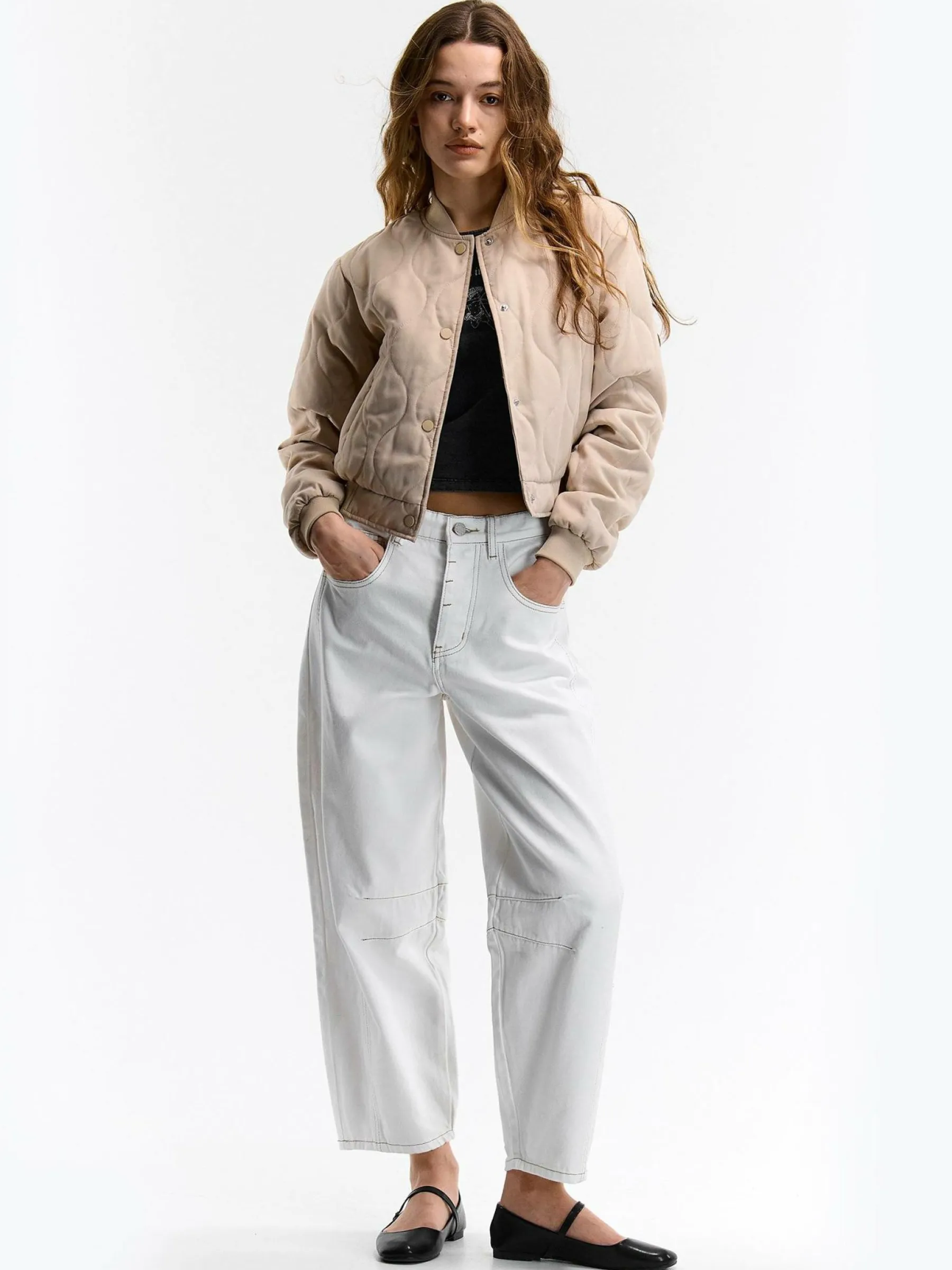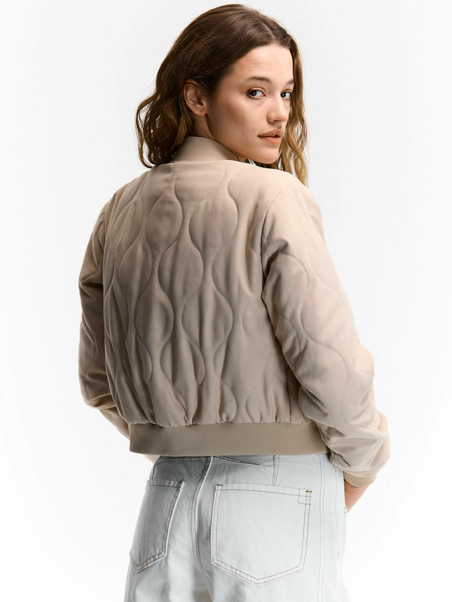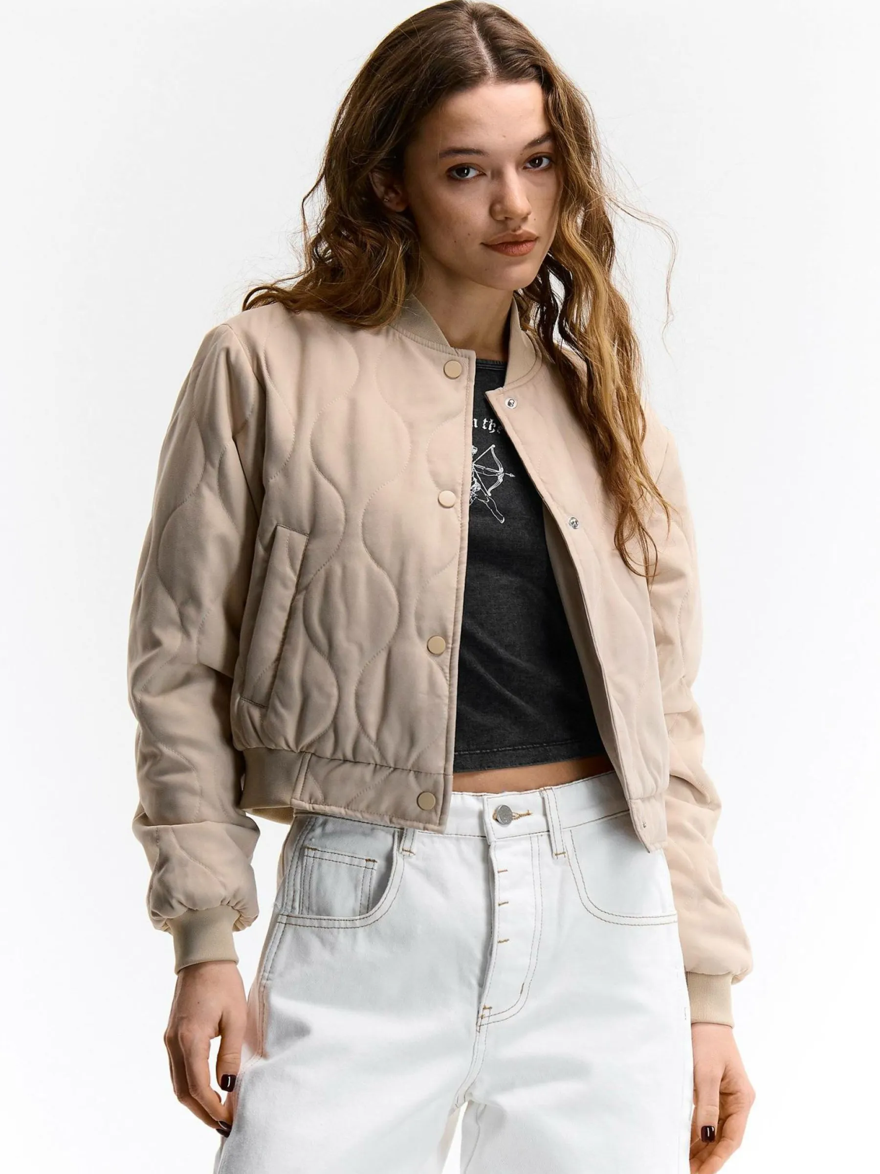 Kolor: beżowyKrój: pikowane, bomberTyp: kurtka przejściowaRekaw: długi rękawDługość: krótkiPattern style: pojed…