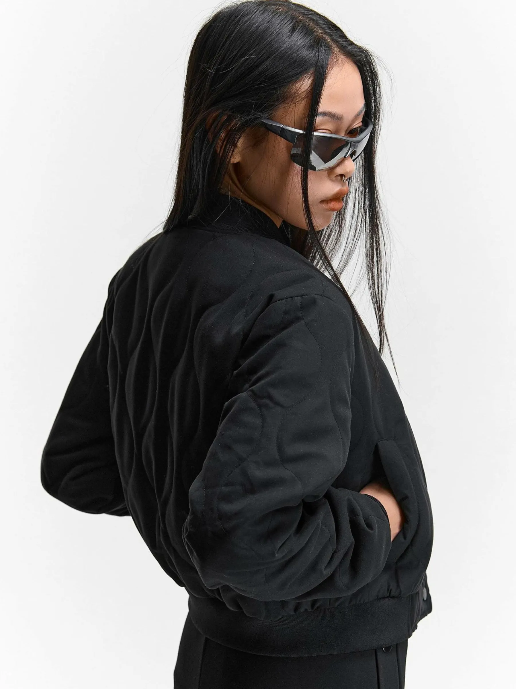 Kolor: czarnyKrój: pikowane, bomberTyp: kurtka przejściowaRekaw: długi rękawDługość: krótkiPattern style: pojedy…