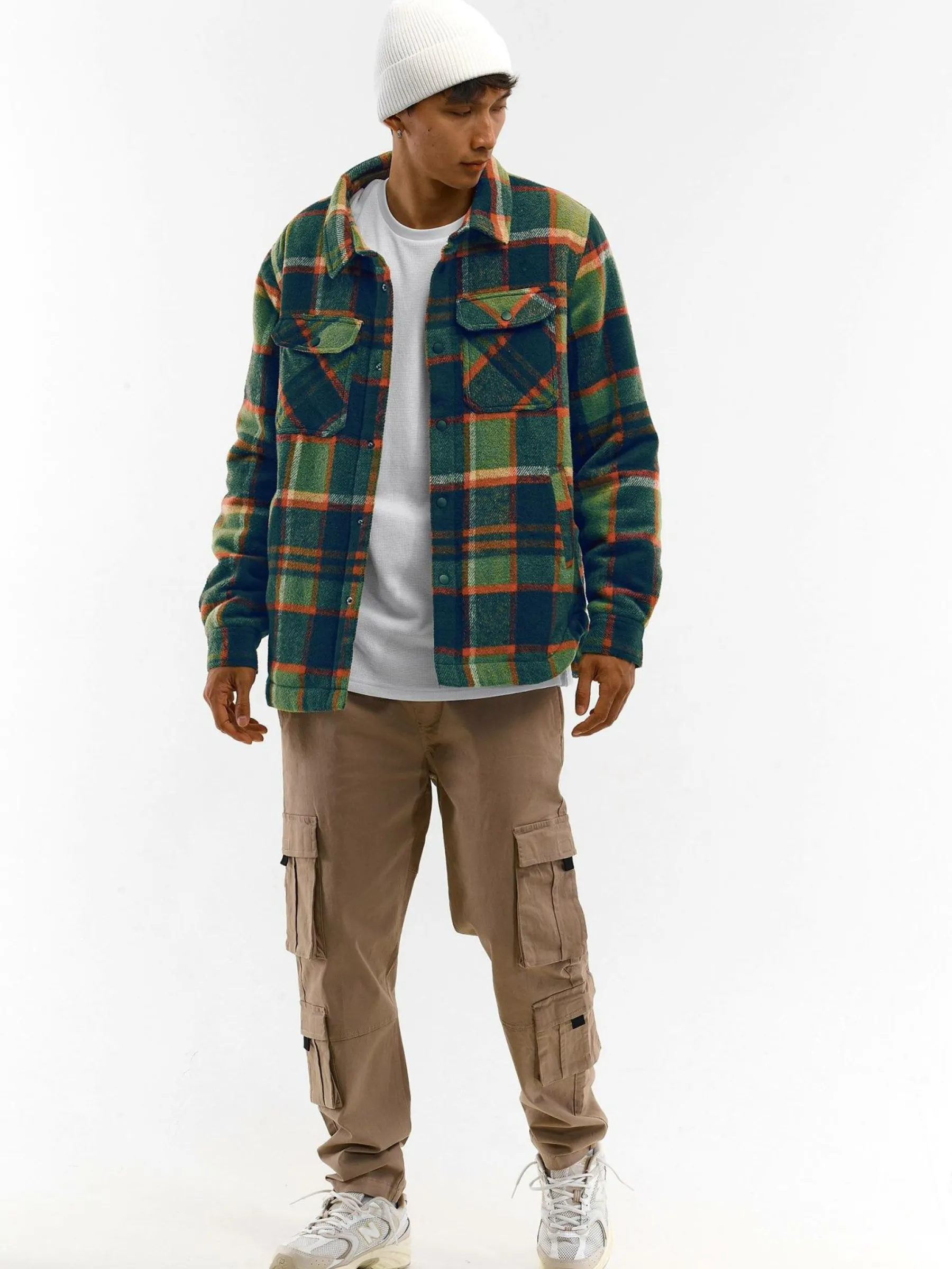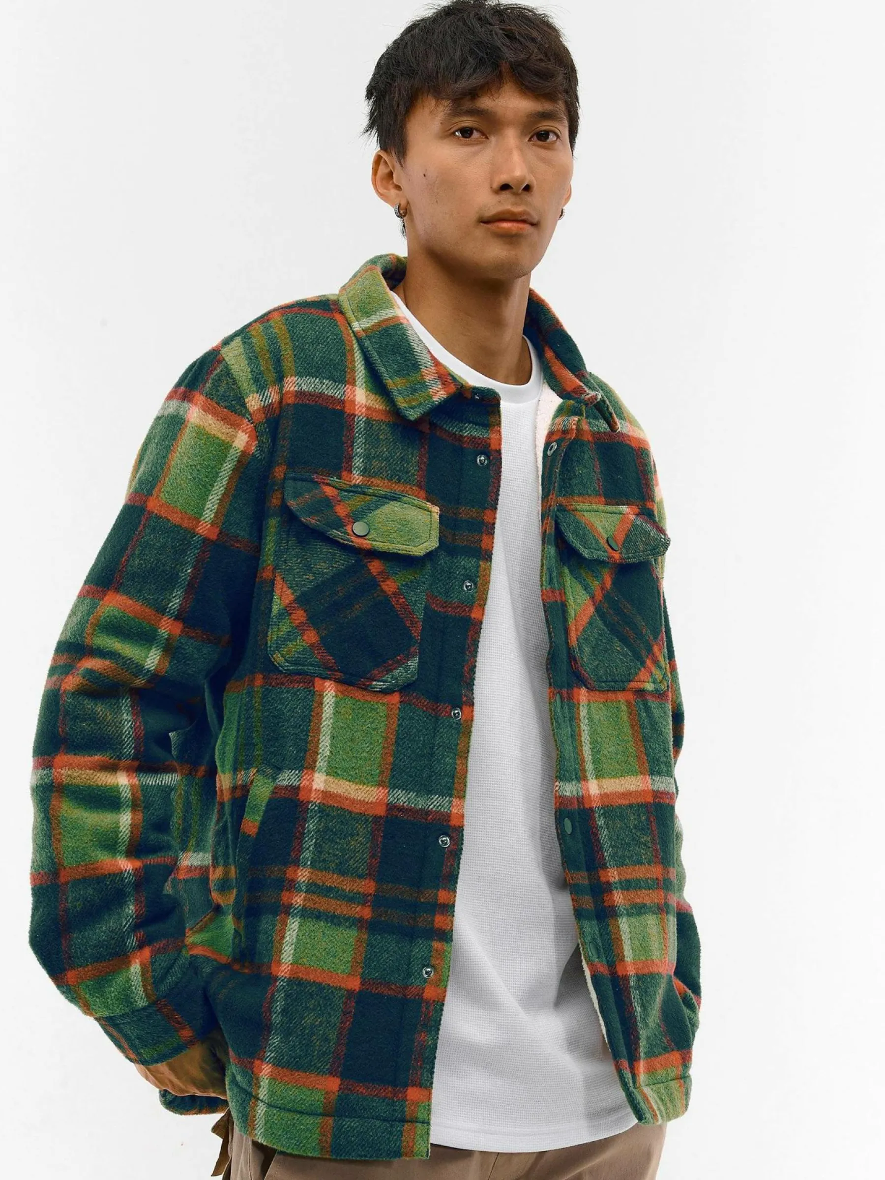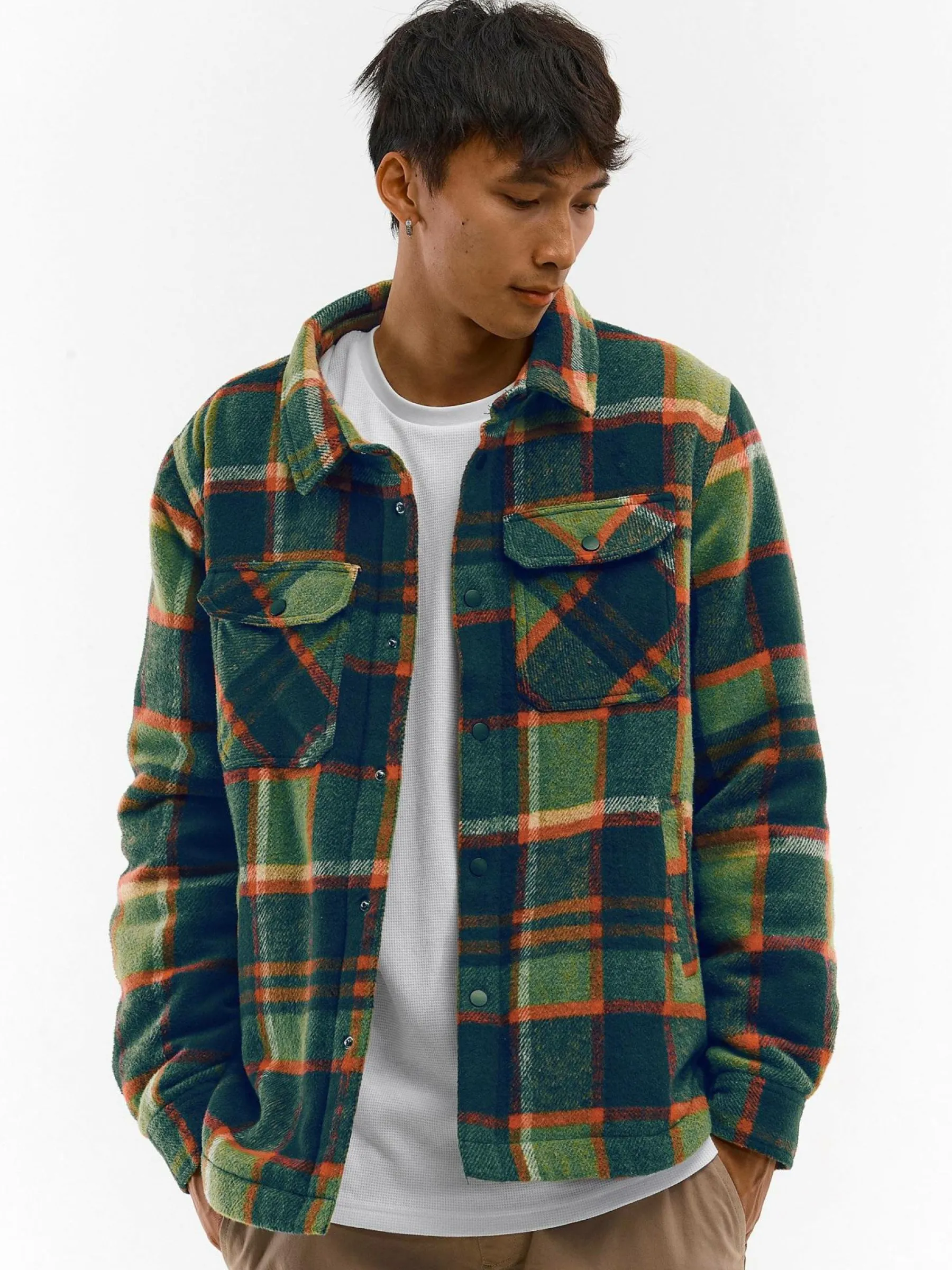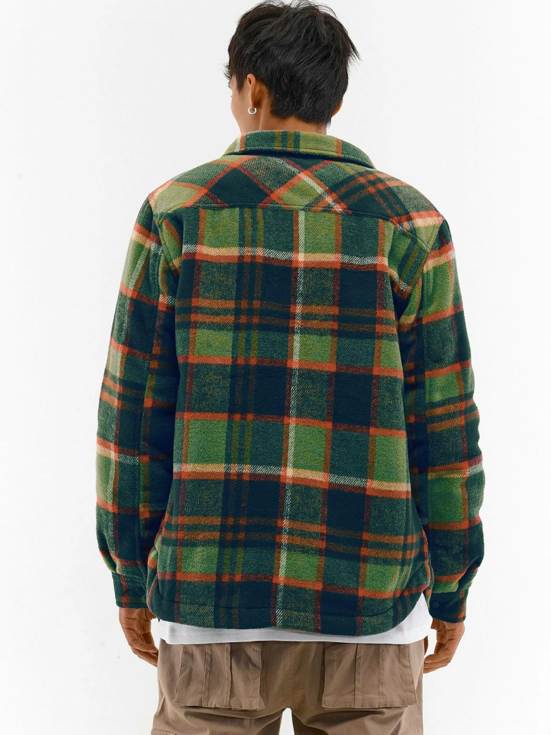 Kolor: zielonyKrój: podstawowyTyp: płaszczRekaw: długi rękawDługość: krótkiPattern style: w krateDetal: na snapy…