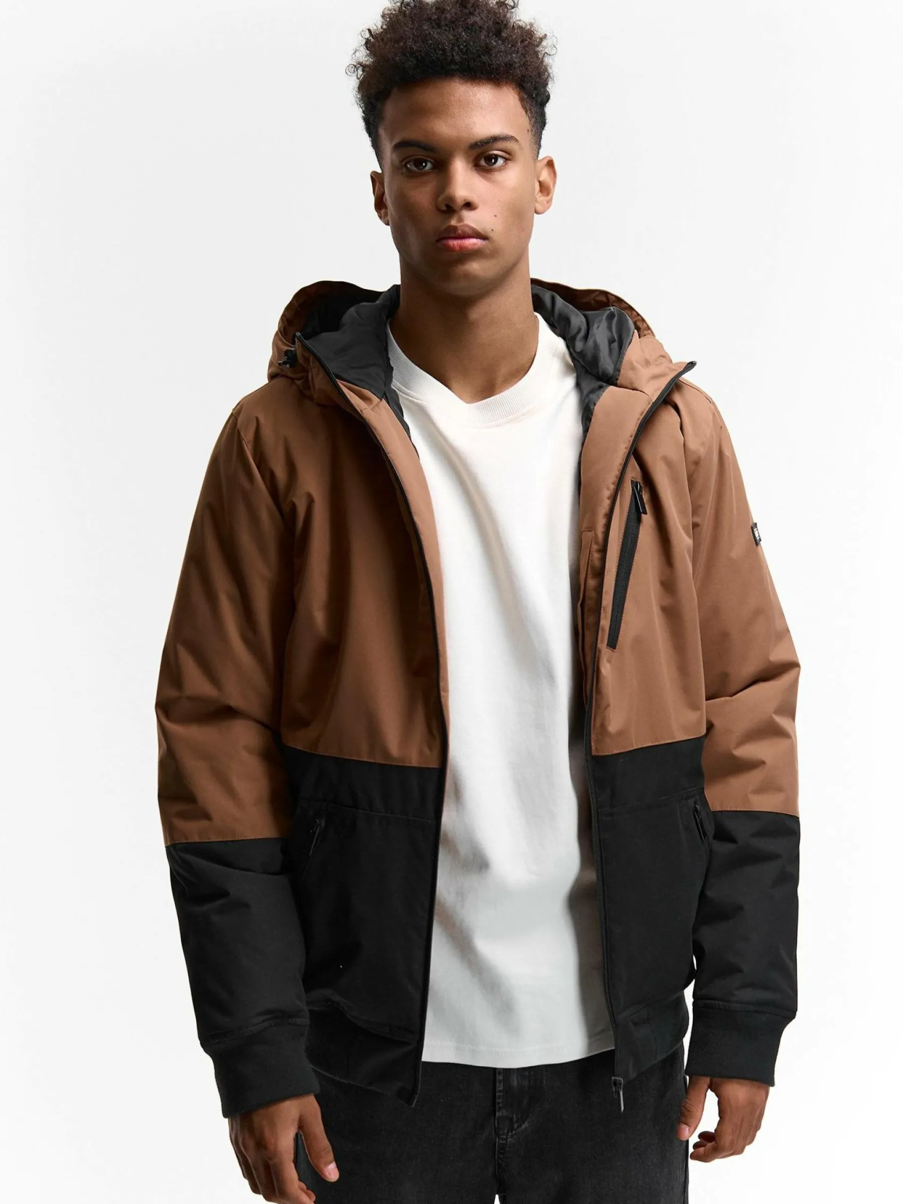 Kolor: brązowyKrój: podstawowyTyp: kurtka zimowaRekaw: długi rękawDługość: krótkiPattern style: colour blockDeta…