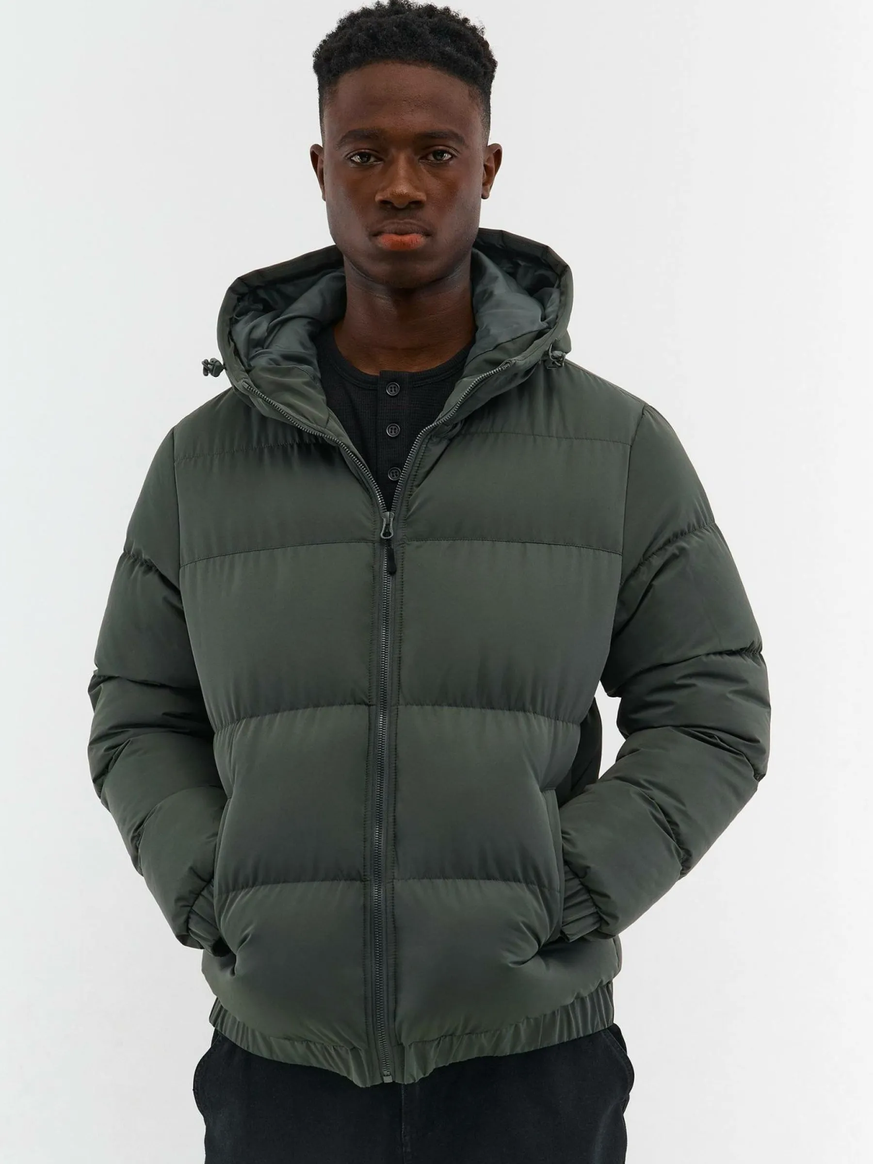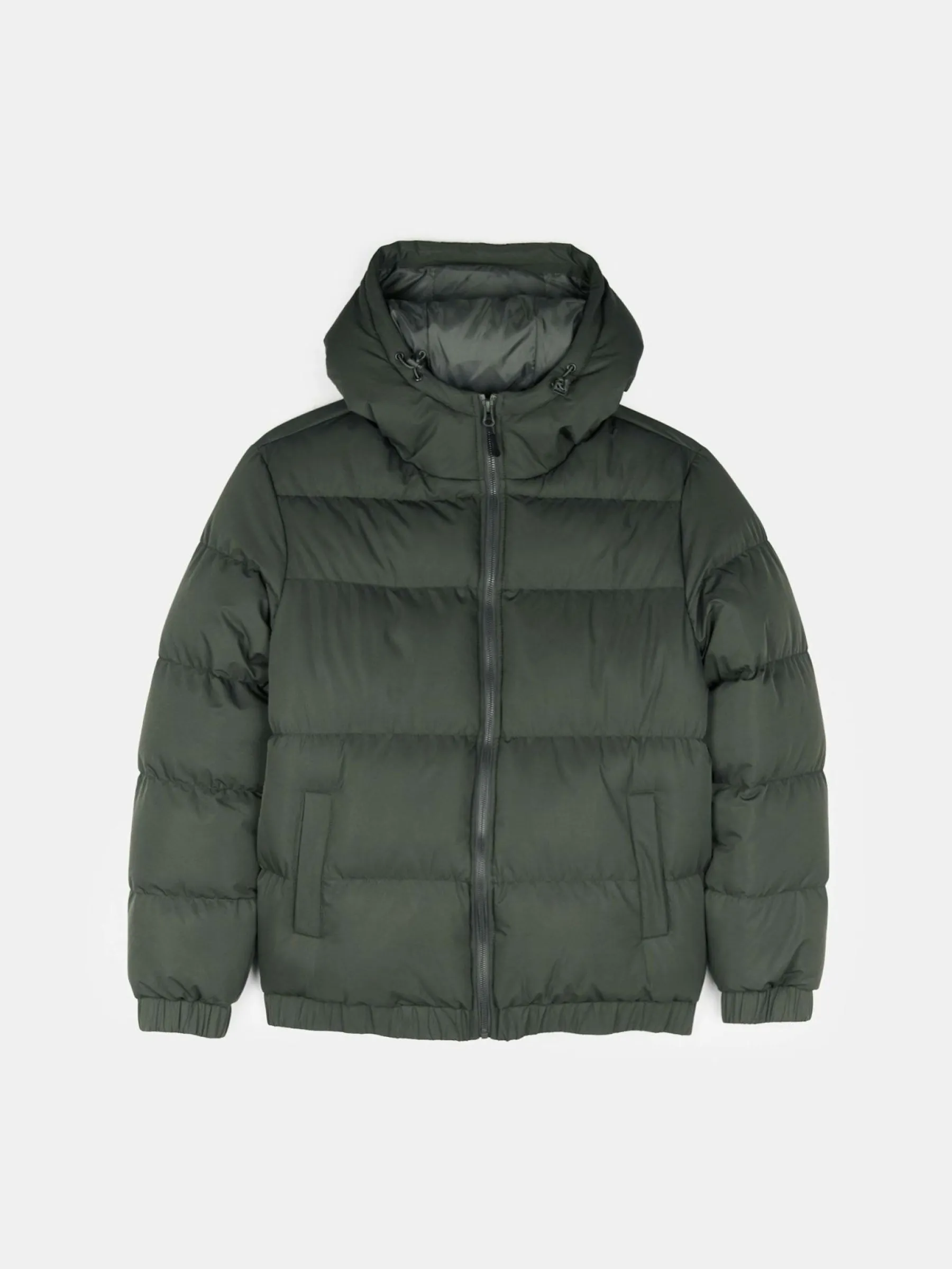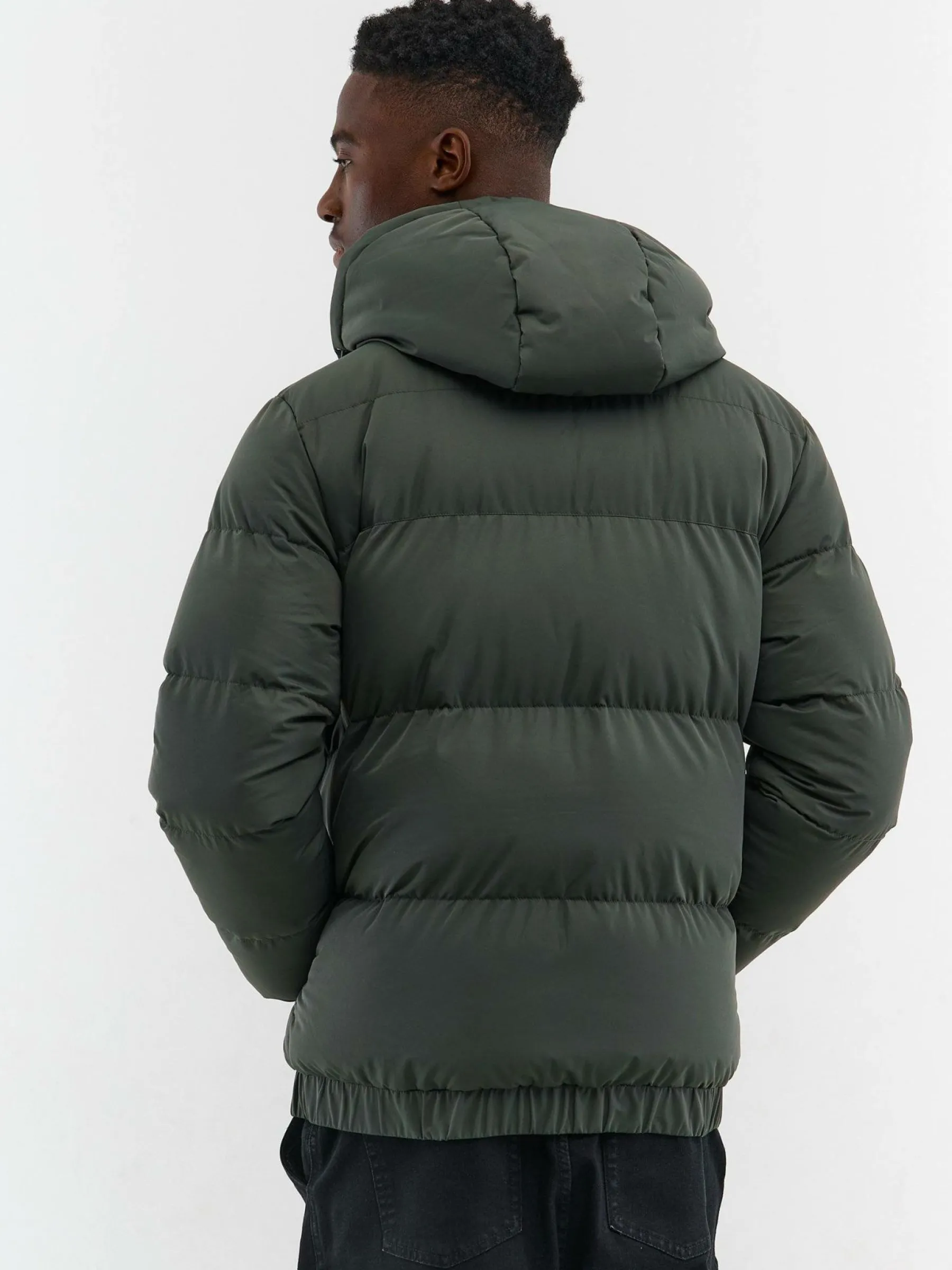 Kolor: khakiKrój: pikowaneTyp: kurtka zimowaRekaw: długi rękawDługość: krótkiPattern style: pojedynczy kolorDetal…