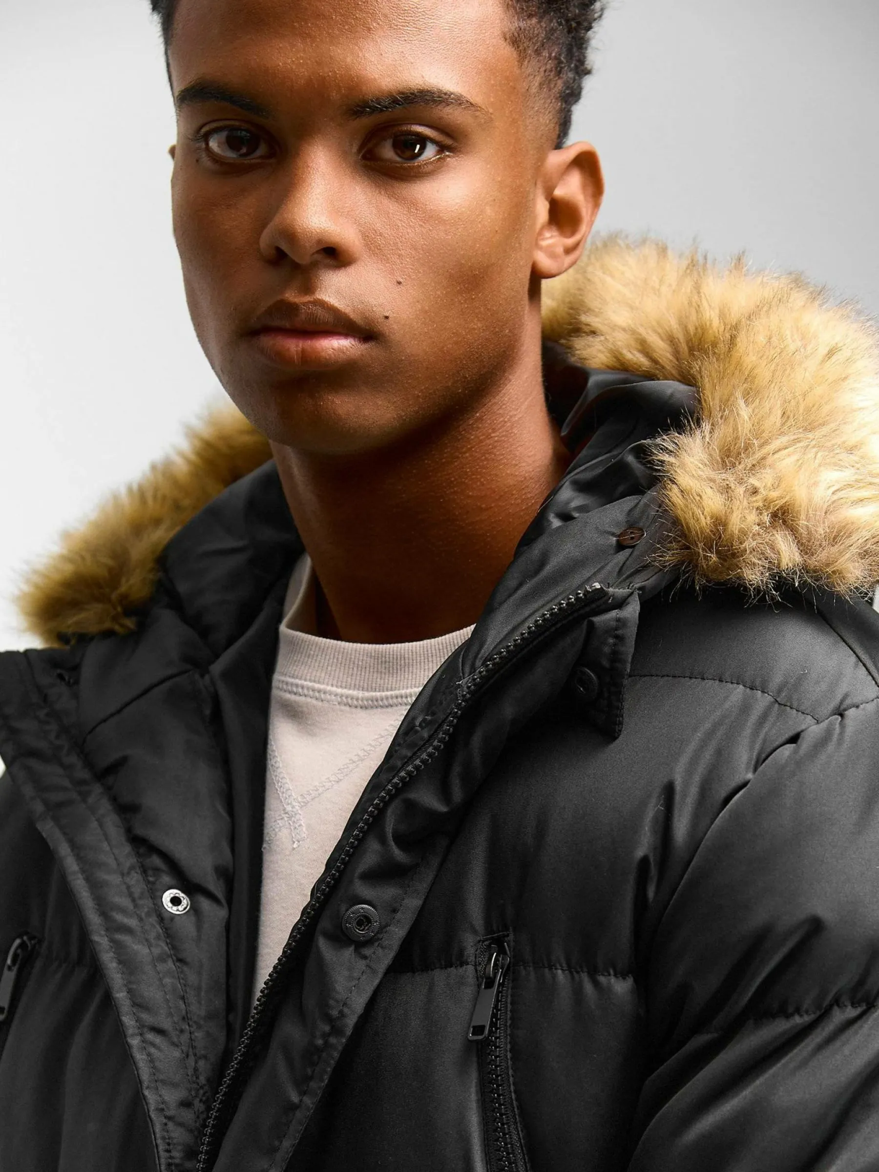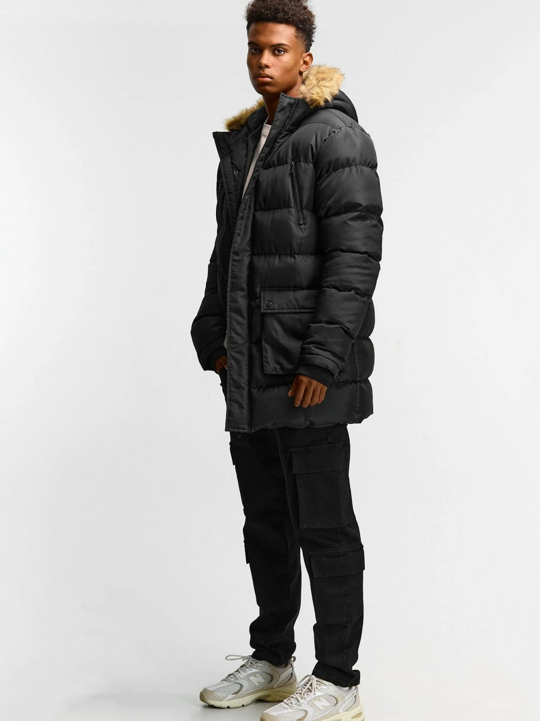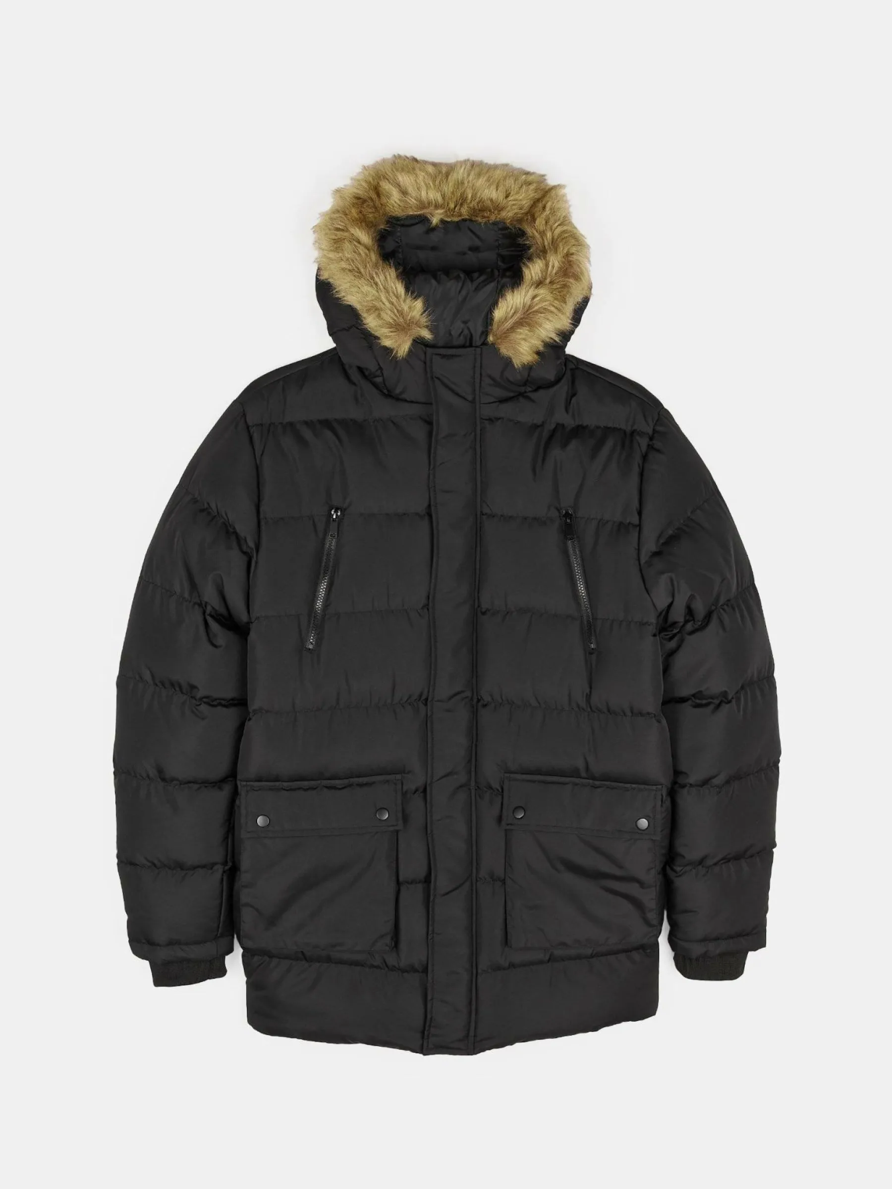 Kolor: czarnyKrój: pikowaneTyp: kurtka zimowaRekaw: długi rękawDługość: krótkiPattern style: pojedynczy kolorDeta…