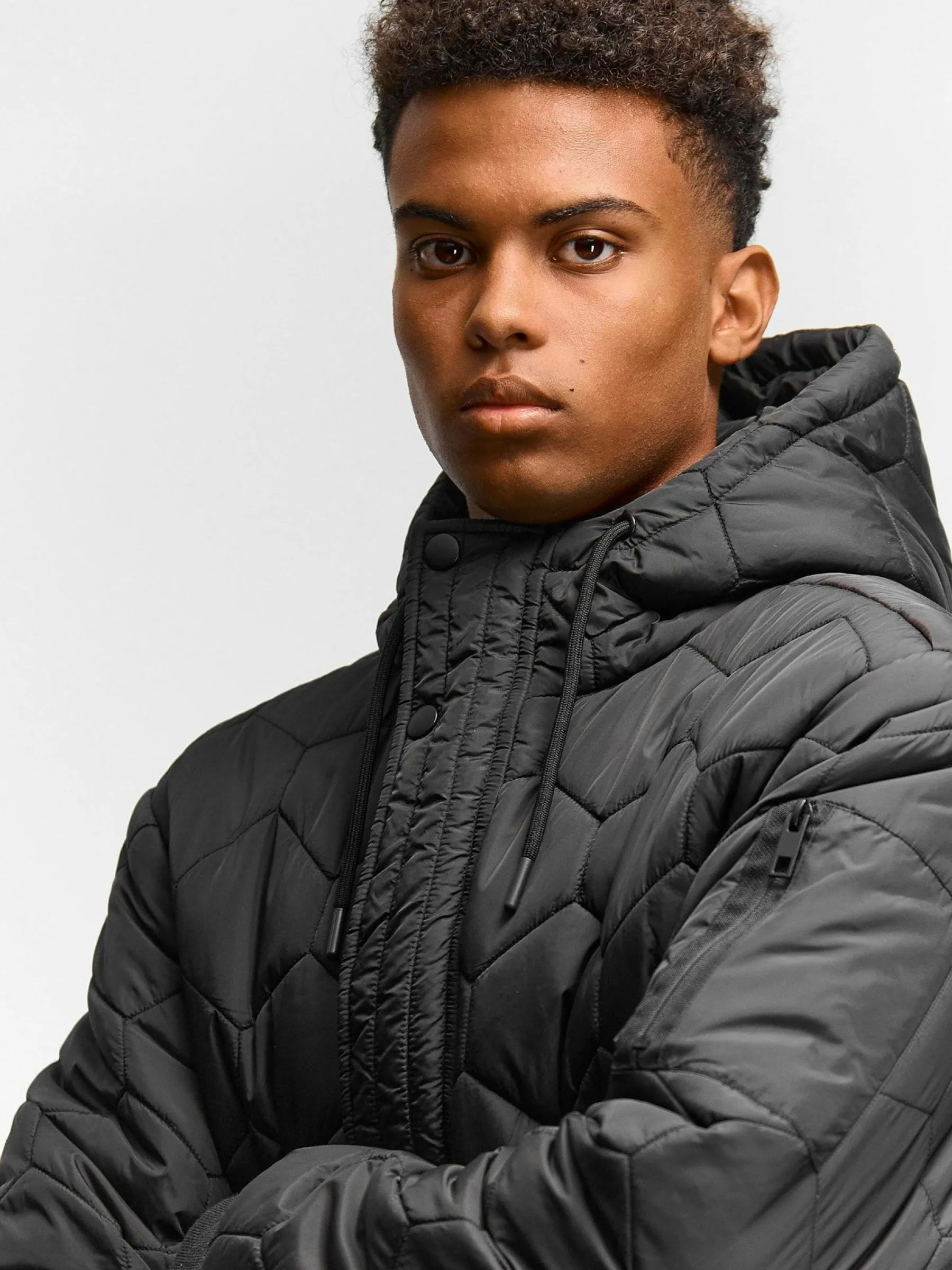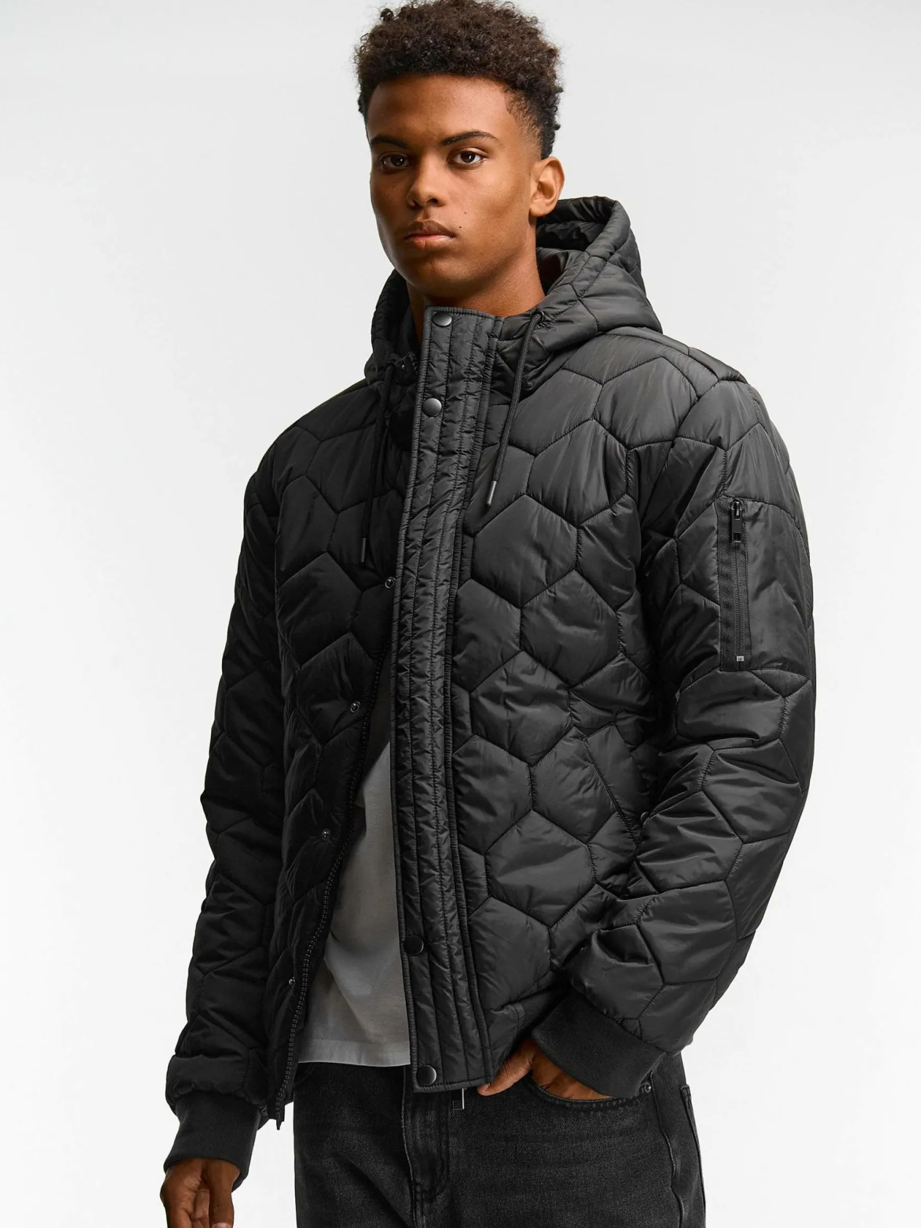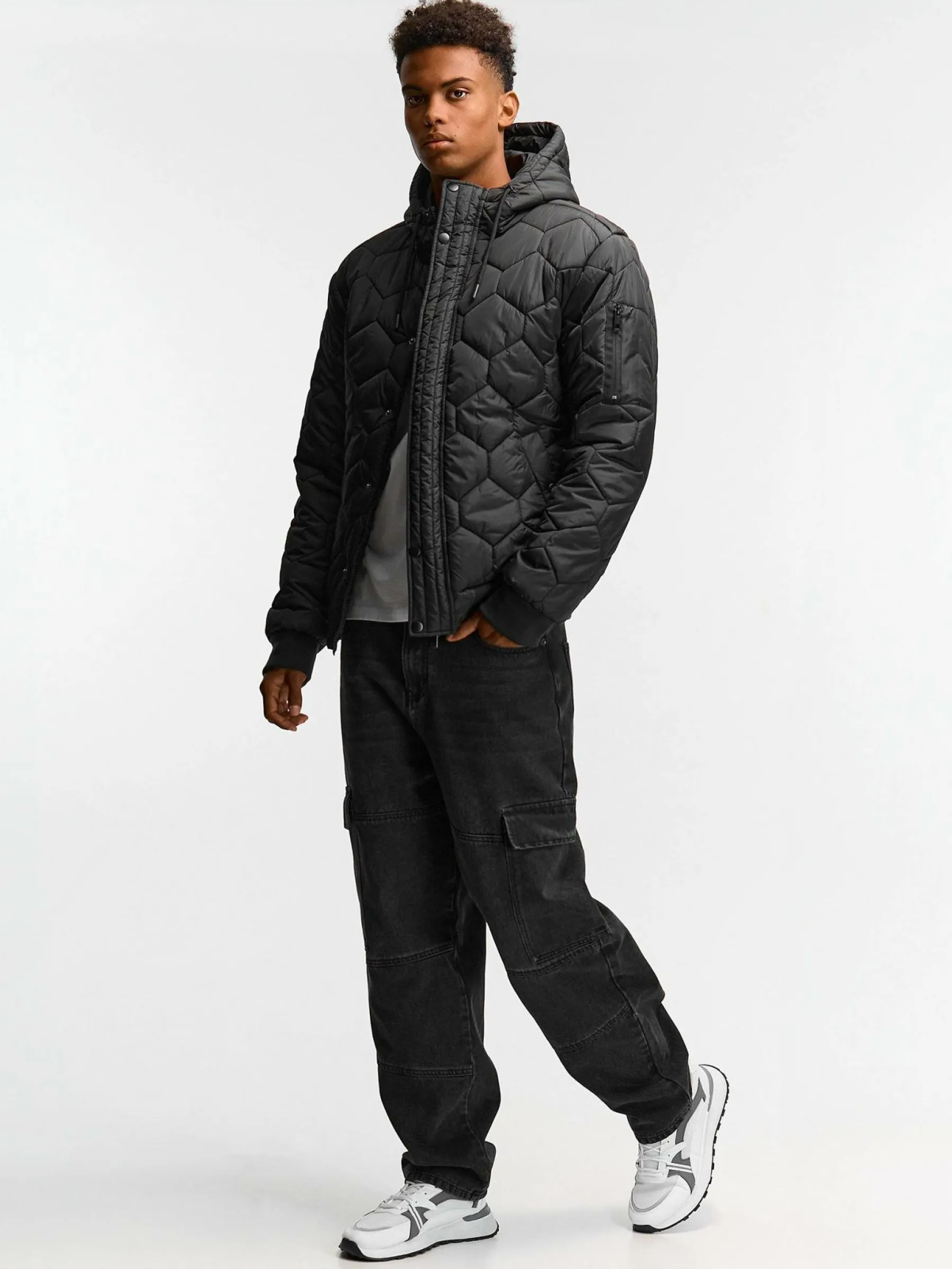 Kolor: czarnyKrój: pikowaneTyp: kurtka zimowaRekaw: długi rękawDługość: krótkiPattern style: pojedynczy kolorDeta…