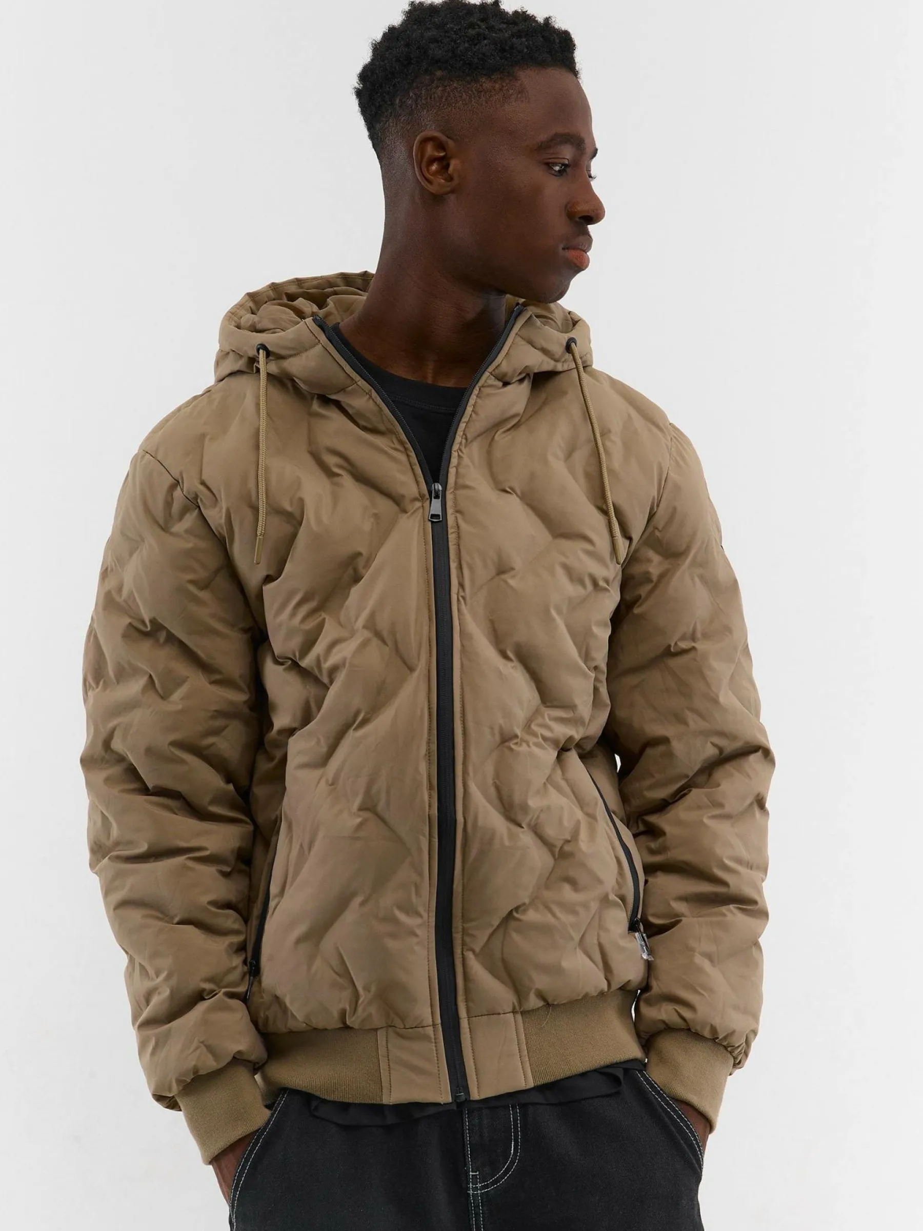 Kolor: beżowy, brązowyKrój: pikowaneTyp: kurtka zimowaRekaw: długi rękawDługość: krótkiPattern style: pojedyncz…